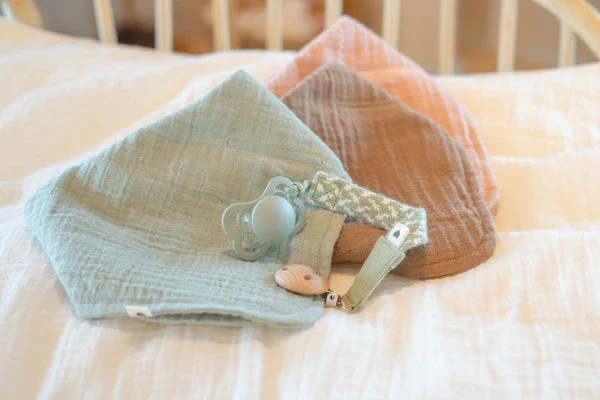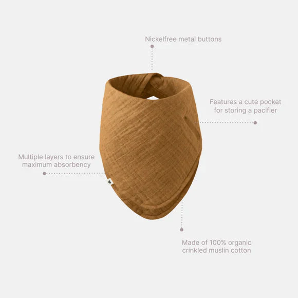 BIBS Bandana Bib is made of 100% organic crinkled muslin cotton. Our Bandana Bib is pre-washed which makes it ultra-soft, true to size and highly absorbent. The multiple layers also ensure maximum coverage when catching drool or messes after feeding.