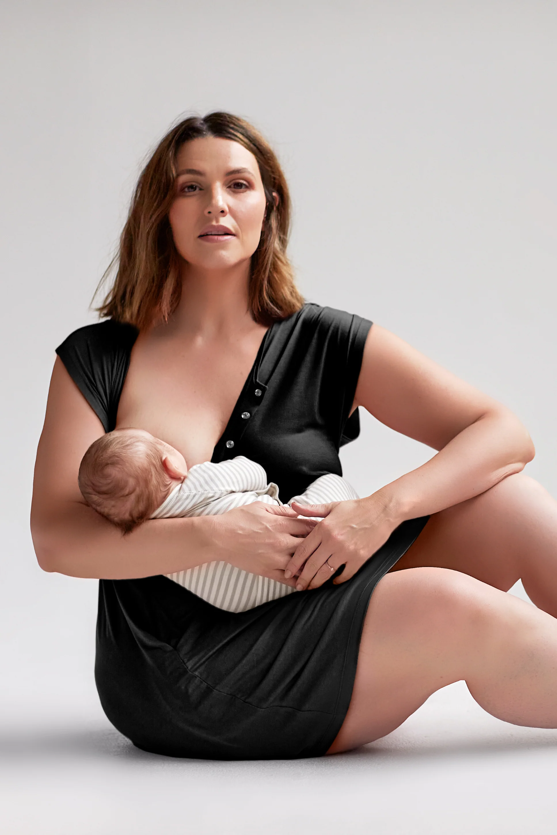 Our must have for all hospital bags, the Clementine Nightie continually gets rave reviews from our customers. Designed with feeding in mind, this cozy nightie has an easy snap-front and a built-in elastic layer that serves double duty: keeping breast pads in place during those leaky moments and offering modesty for when guests arrive. We added pockets and a pretty pleated back detail for the perfect maternity + nursing nightgown. Complete the look with our Second Skin Robe.