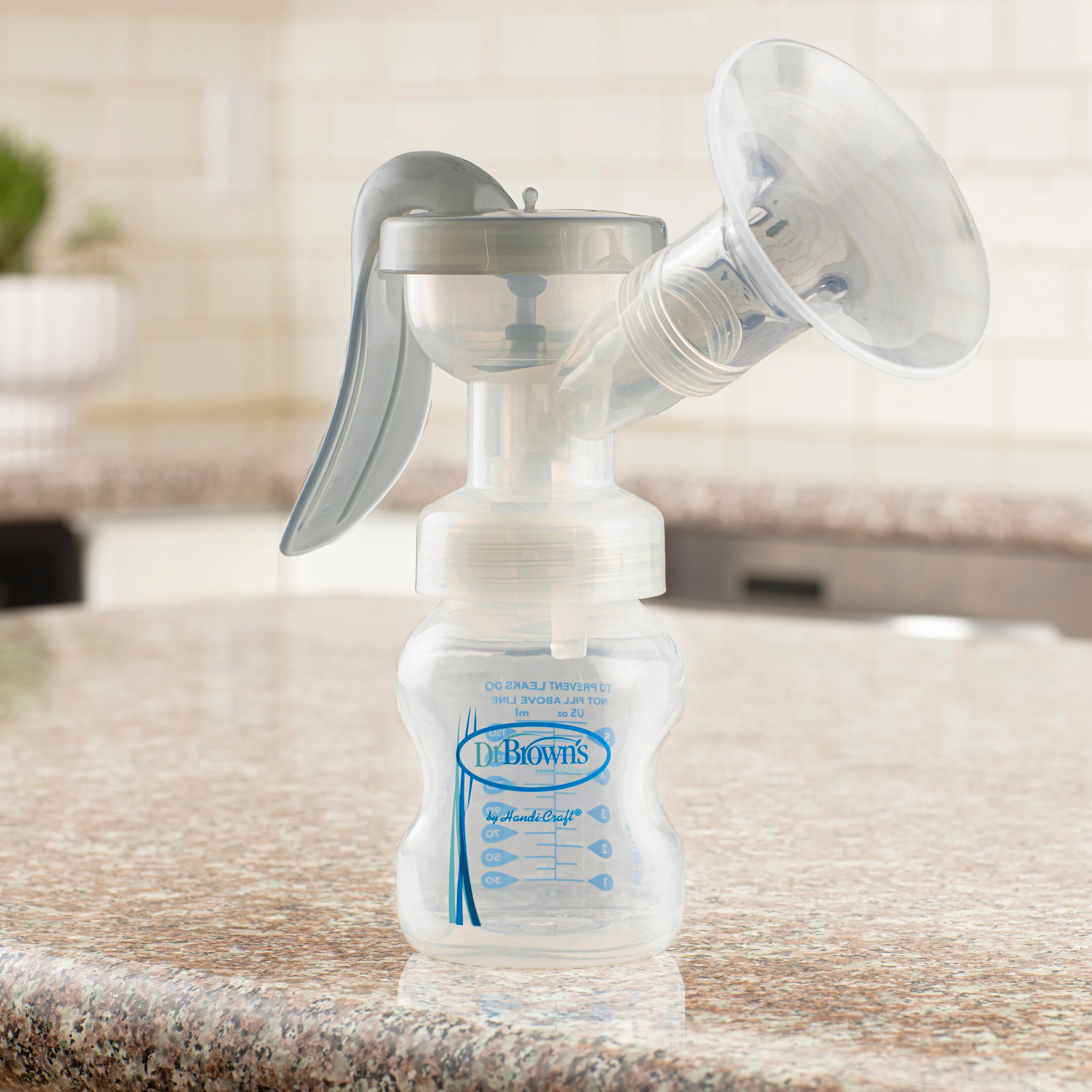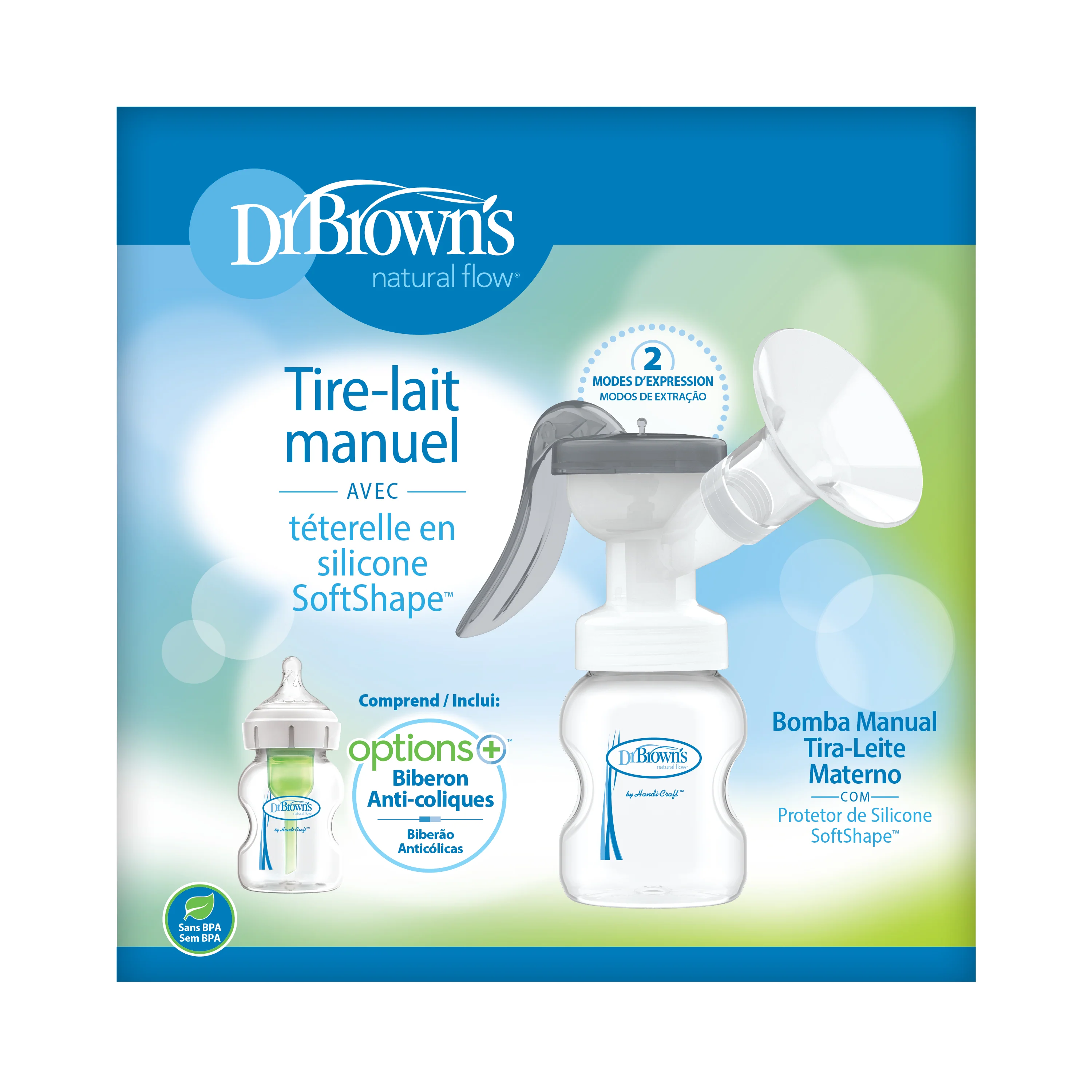 Dr. Brown's Manual Breast Pump is a quiet yet powerful pumping companion. The pump's soft, 100% silicone SoftShape Shield conforms to different breast shapes, offering flexible, more comfortable pumping for more moms.
