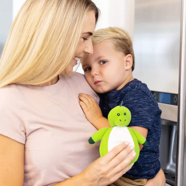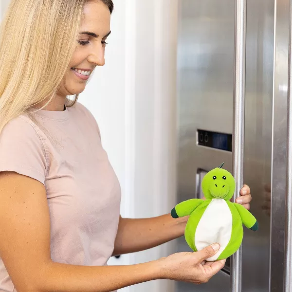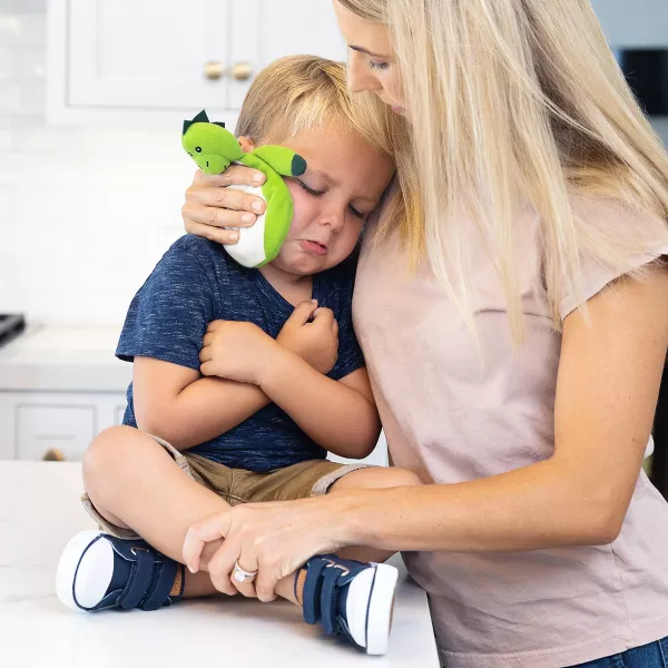 - Plush animal friend with removable, flexible ice pack to quickly treat minor bumps and bruises.