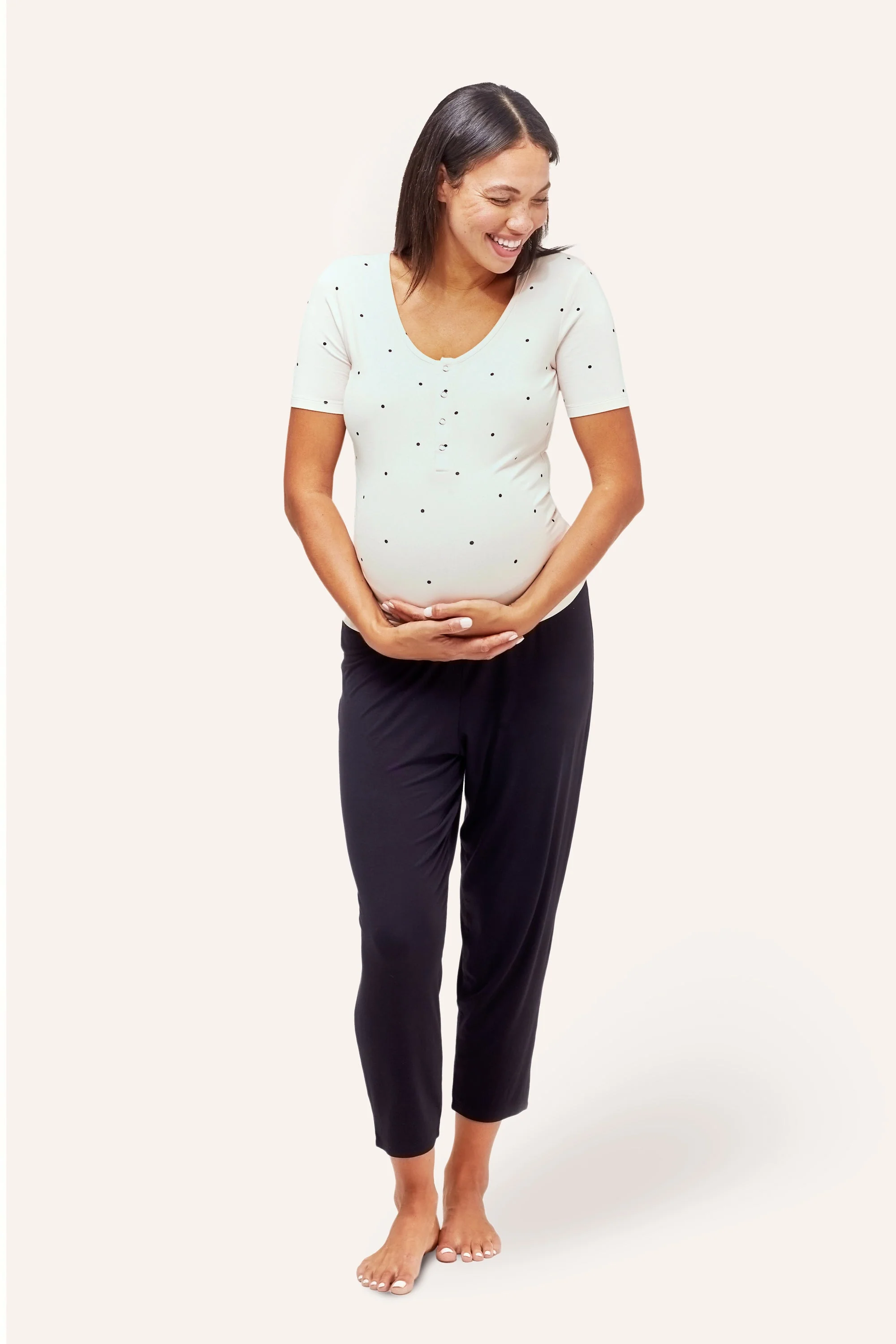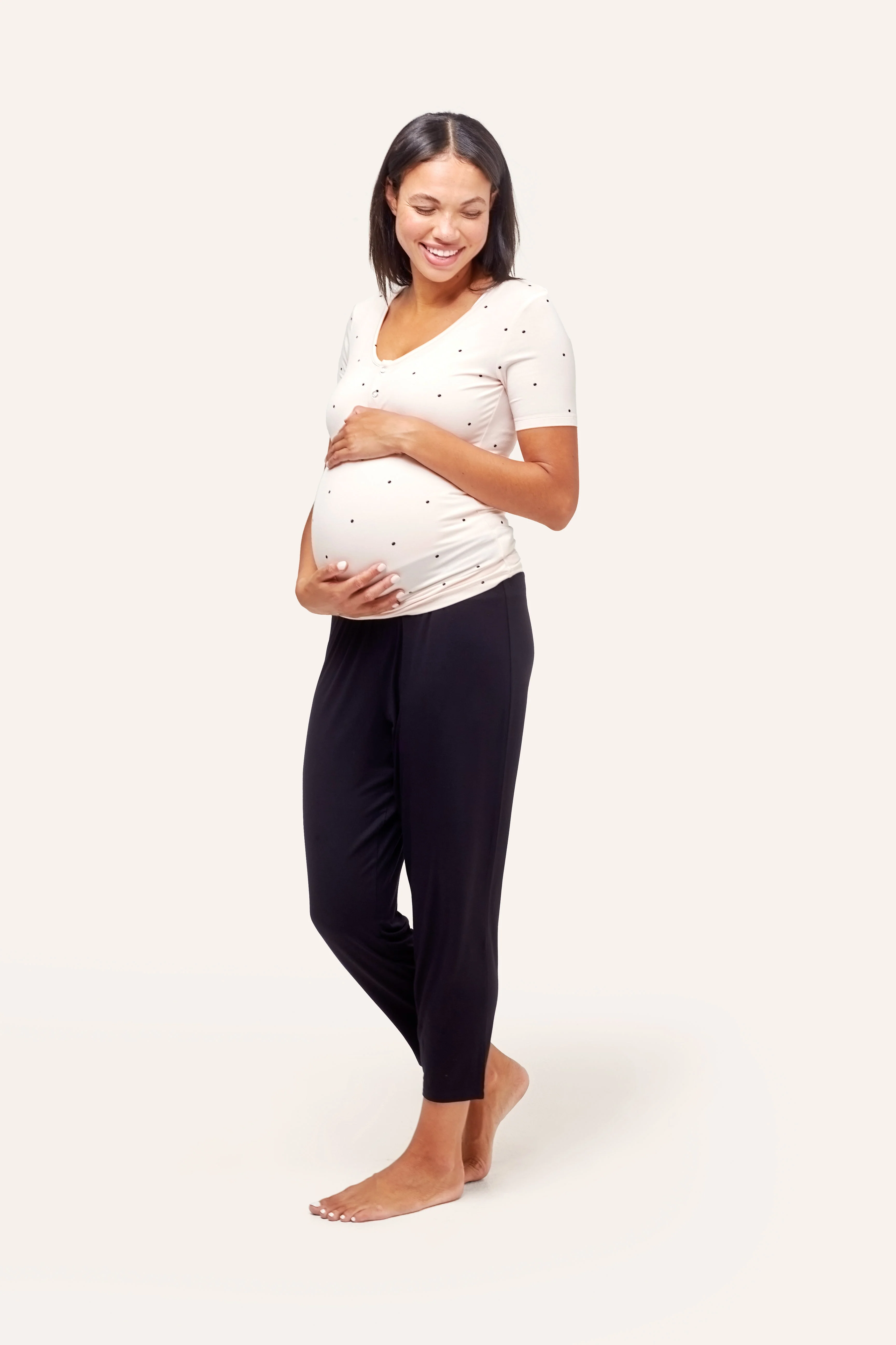 Designed with feeding in mind, this easy, snap front shirt is a perfect all day and all night top. A nursing-friendly (and ultra cozy) postpartum wardrobe staple, the Rhys features a functional snap placket and scoop neck.