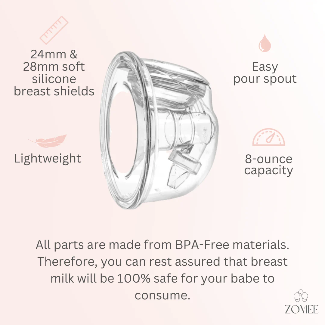 Experience the ultimate in convenience and comfort with the Zomee Silicone Hands-Free Collection Cups, loved and endorsed by , a Certified Lactation Counselor and a trusted influencer in the breastfeeding community. Designed for busy moms, these innovative collection cups allow you to express milk hands-free with your Zomee Z2 or Zomee Z1 Breast Pump, making your pumping sessions more efficient and less time-consuming.