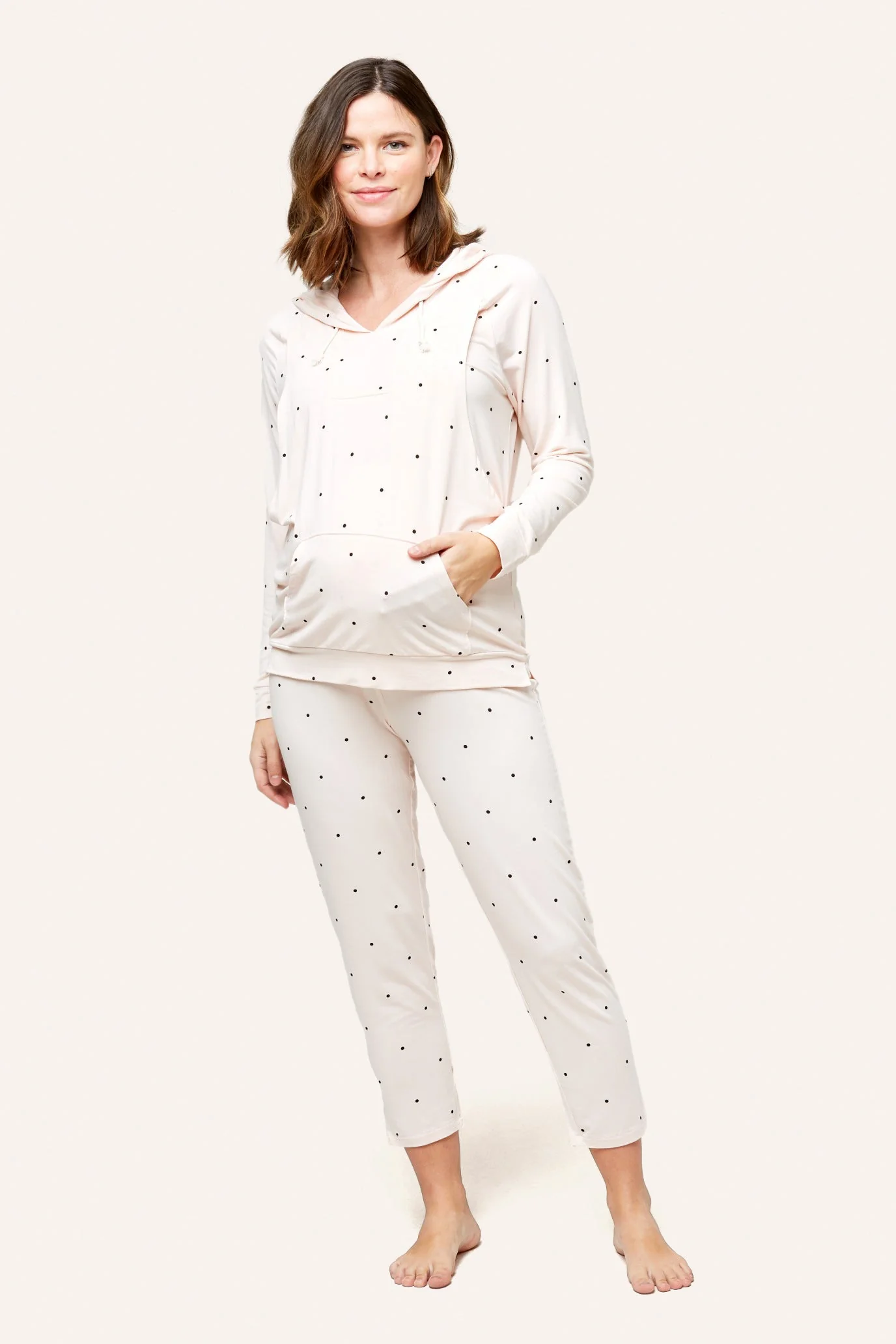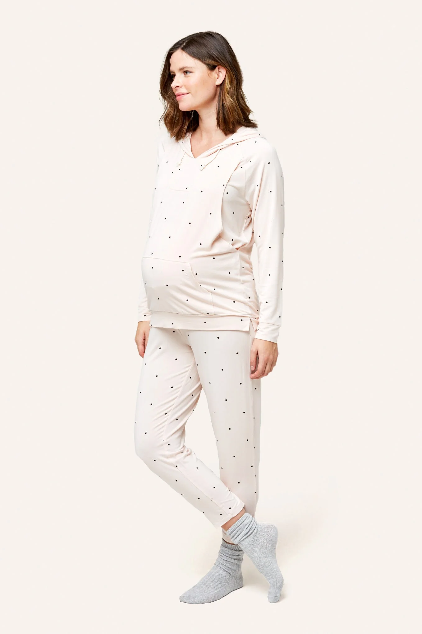 Designed with feeding in mind, this cozy bamboo hoodie has hidden openings to allow for discreet nursing. Pairs perfectly with the Max Lounge Pant.