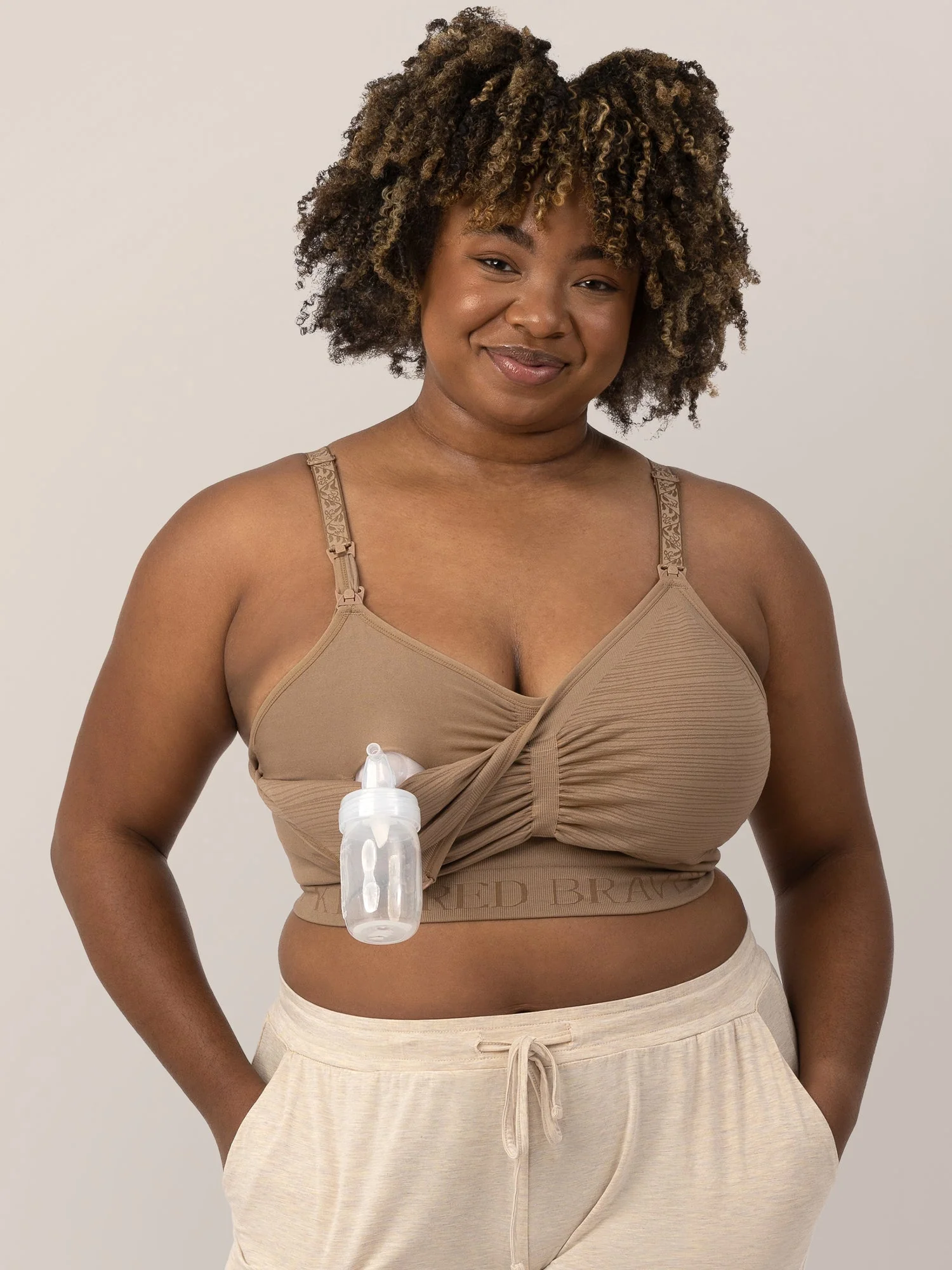 The game-changer for postpartum moms. Our award-winning bra brings together the best of both worlds to support all your daily nursing & hands-free pumping needs. The unique, patented double-layer system allows you to choose whether you want to pump, nurse, or do both at the same time - giving you the feeding flexibility you won't find anywhere else. Just unclip our innovative EasyClip™ and breastfeed your way! The supportive wireless construction securely holds those liquid gold bottles in place while the four-way stretch comfortably accommodates changing breast size between feedings. A must-have for all breastfeeding moms (trust us - there’s a reason it’s a best seller).