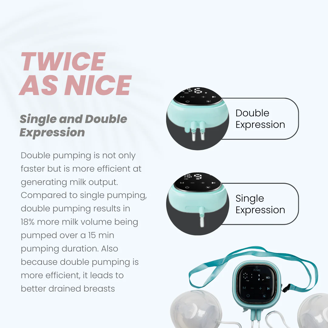 - 3 different pumping styles that you can further tailor for comfort: Massage, Expression, and 2-Phase mode (expression and massage)