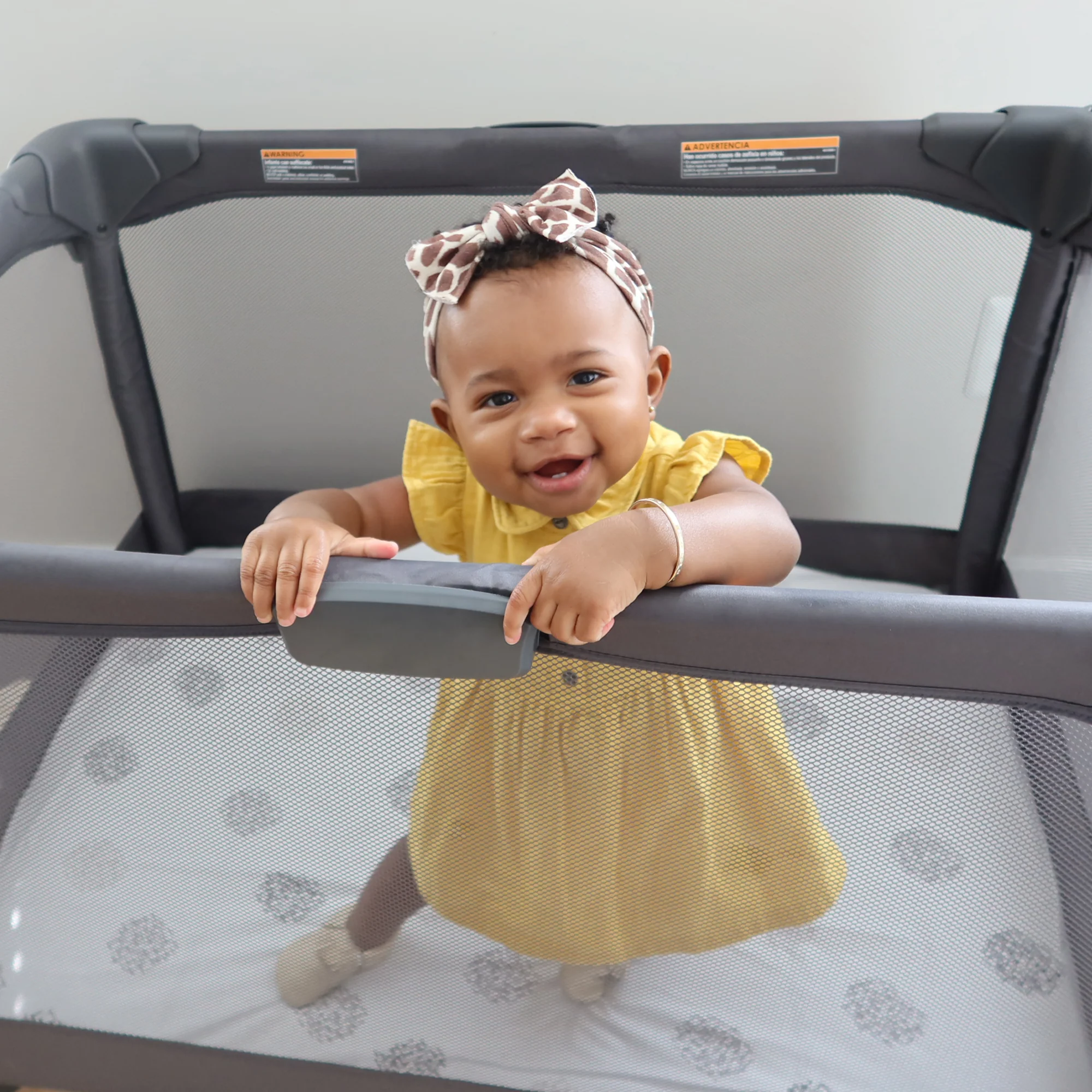 - As your baby grows, the spacious playard provides more space to sleep or play