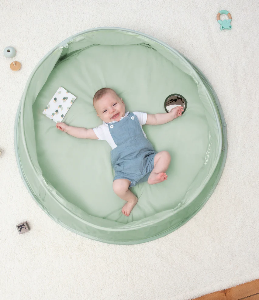 To transform into a paddling pool for your baby from 6 months old, simply remove the comfort mattress and add water to turn it into a paddling pool (up to 75 litres). Your baby can splash around in complete safety with you there alongside.