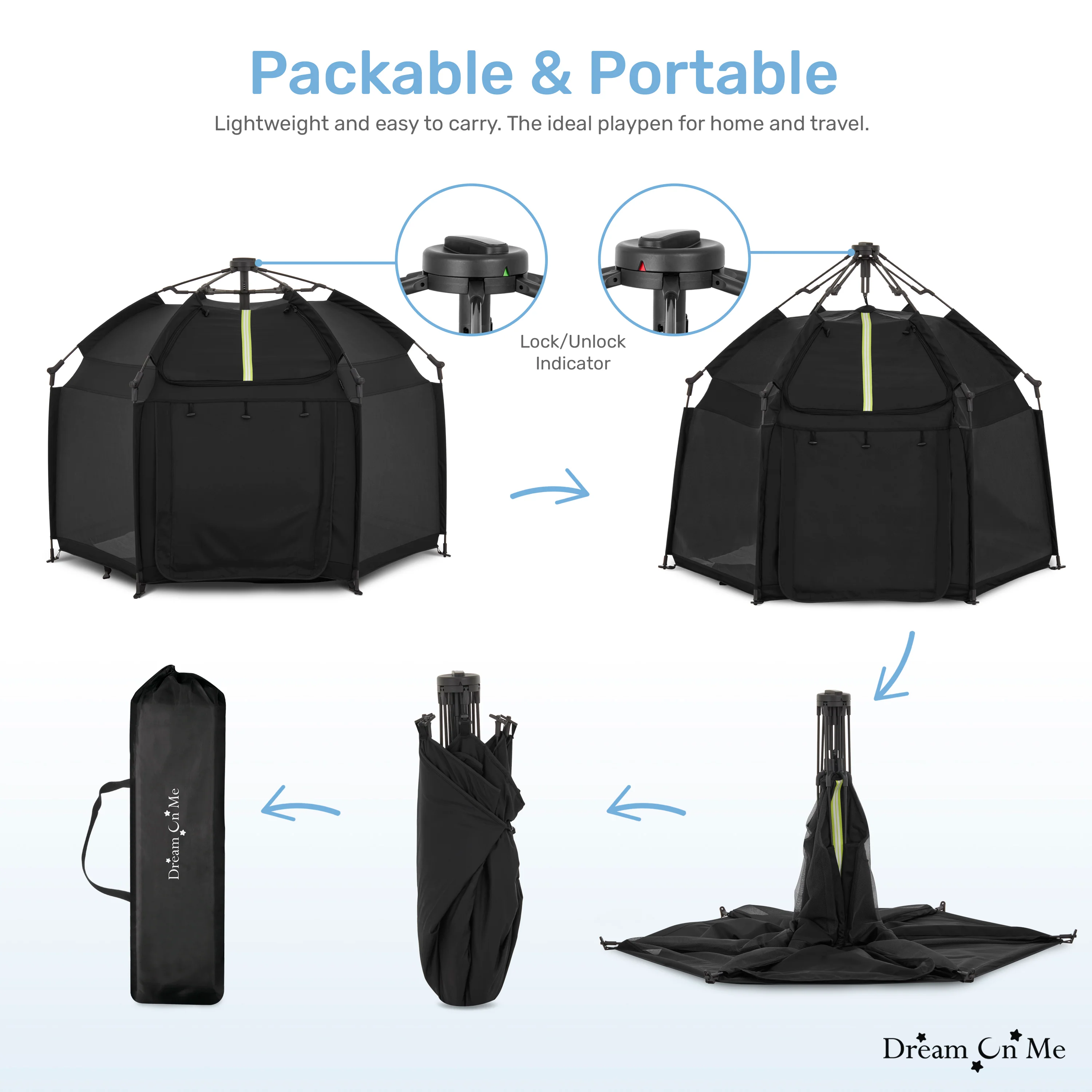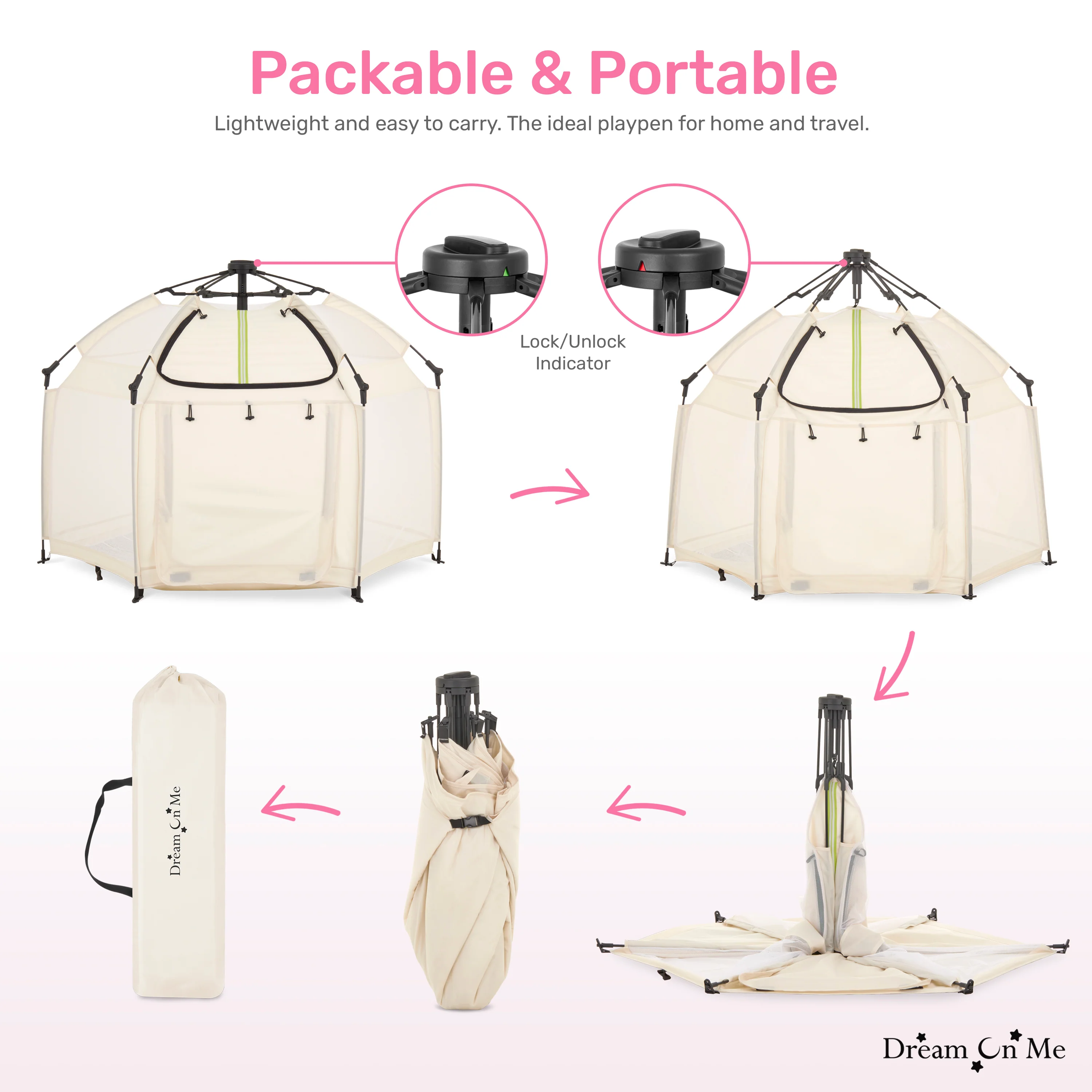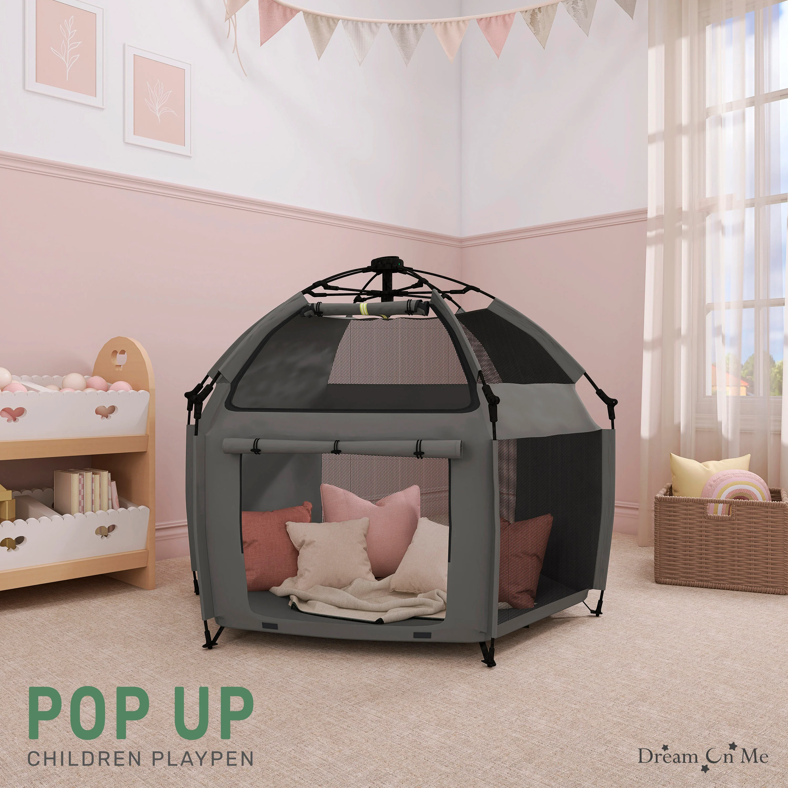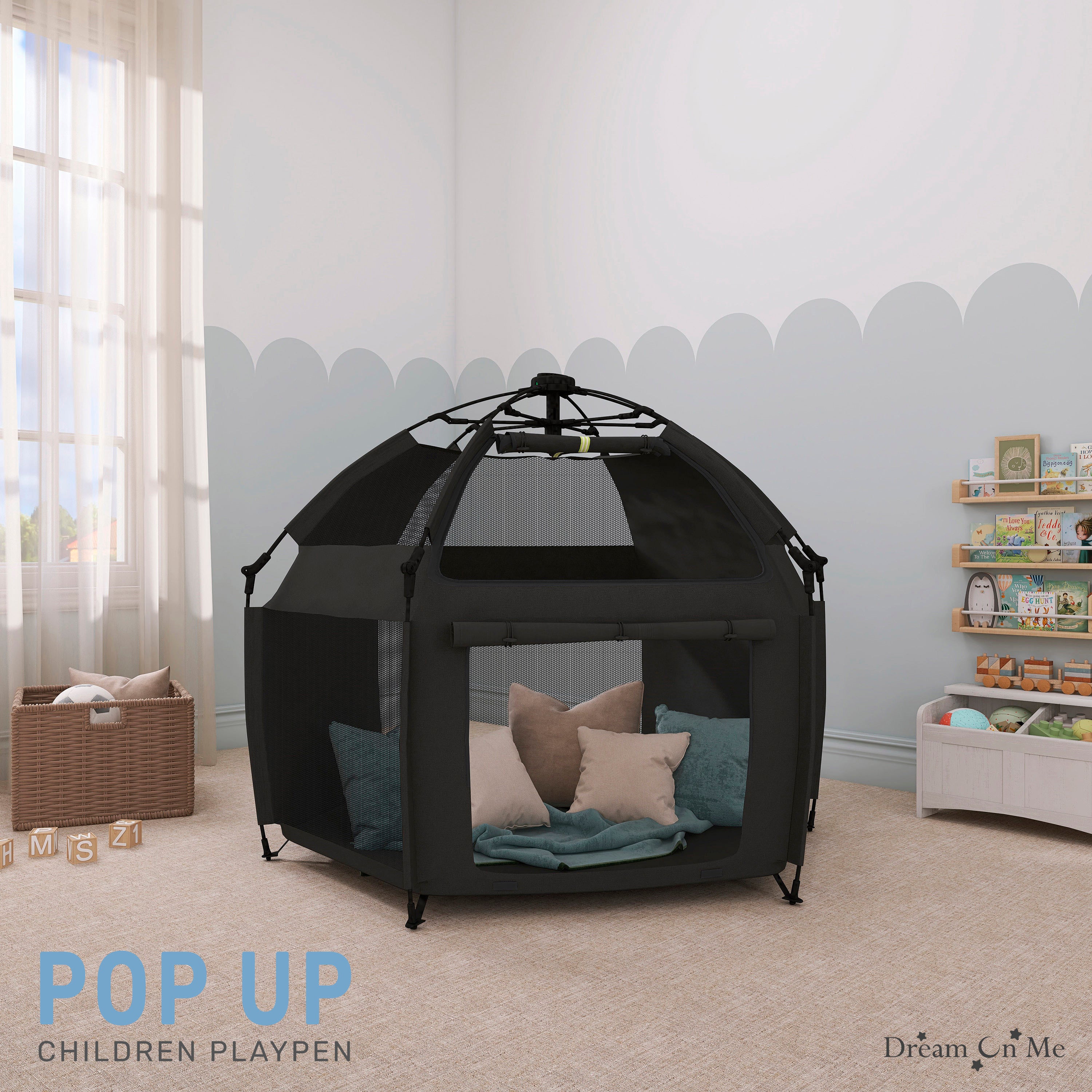 - COMPLETE SAFETY: The Dream On Me Pop Up Children Playpen meets/exceeds ASTM safety standards and boasts an automatic instant pop-up feature that makes setting up and folding down a breeze.