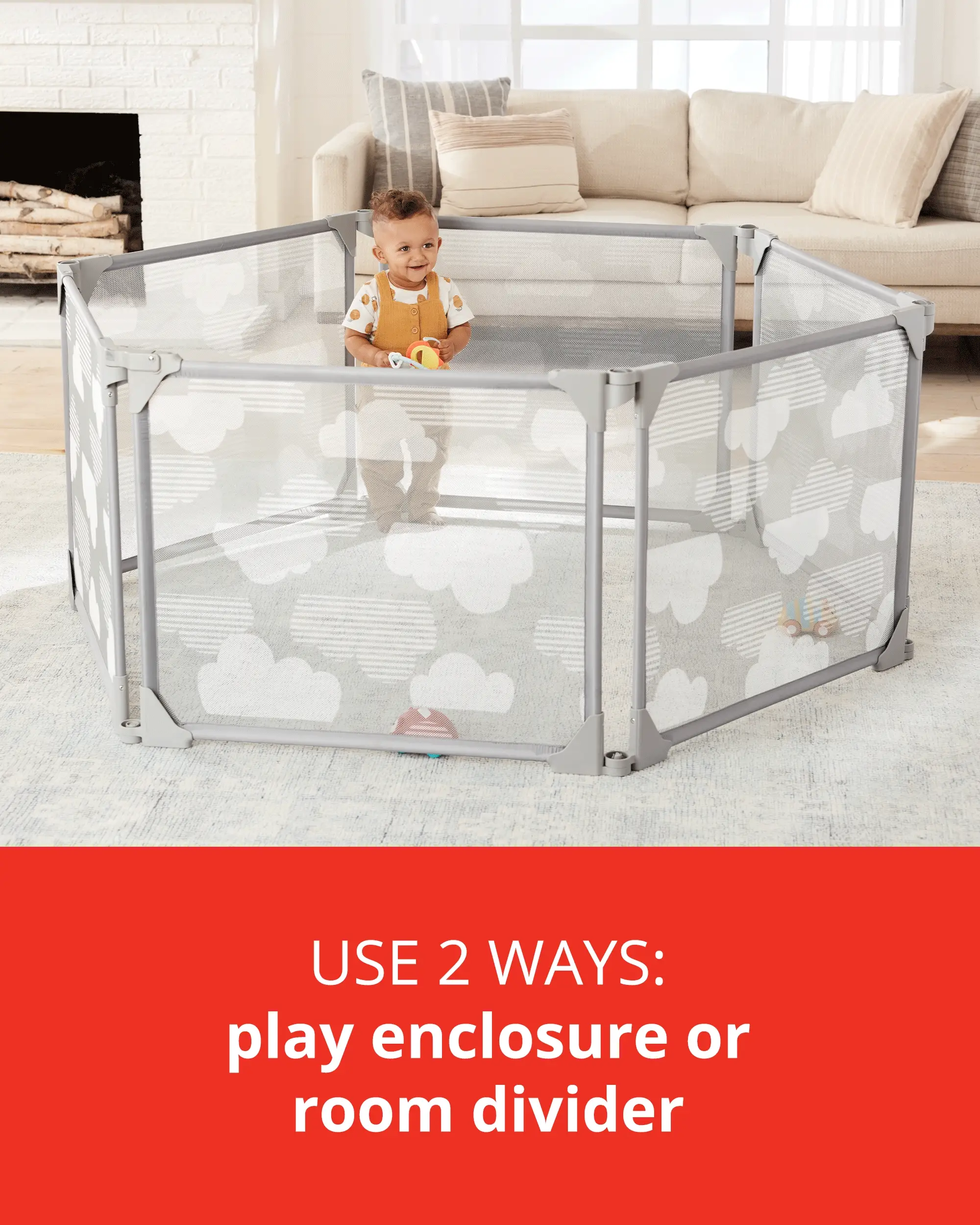 - Creates over 20 square feet of playspace in multiple configurations