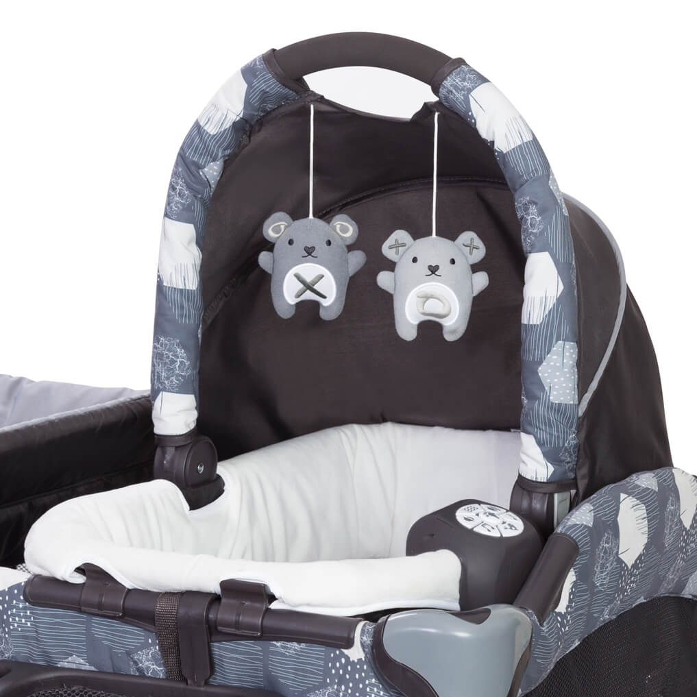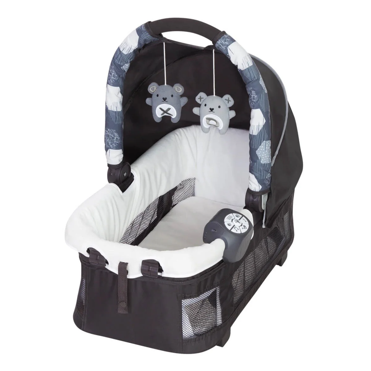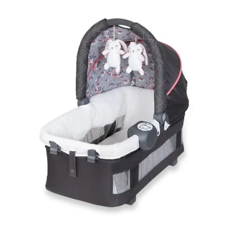 - Portable Rock-a-Bye bassinet with adjustable canopy and 2 plush toys