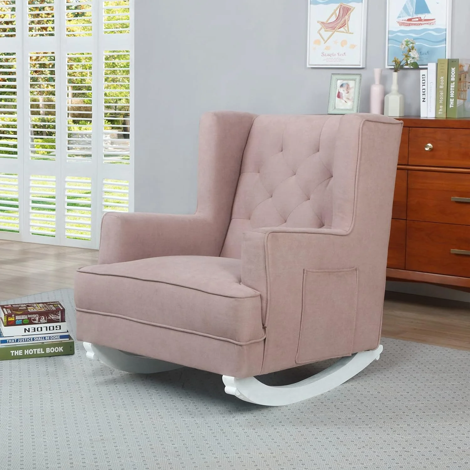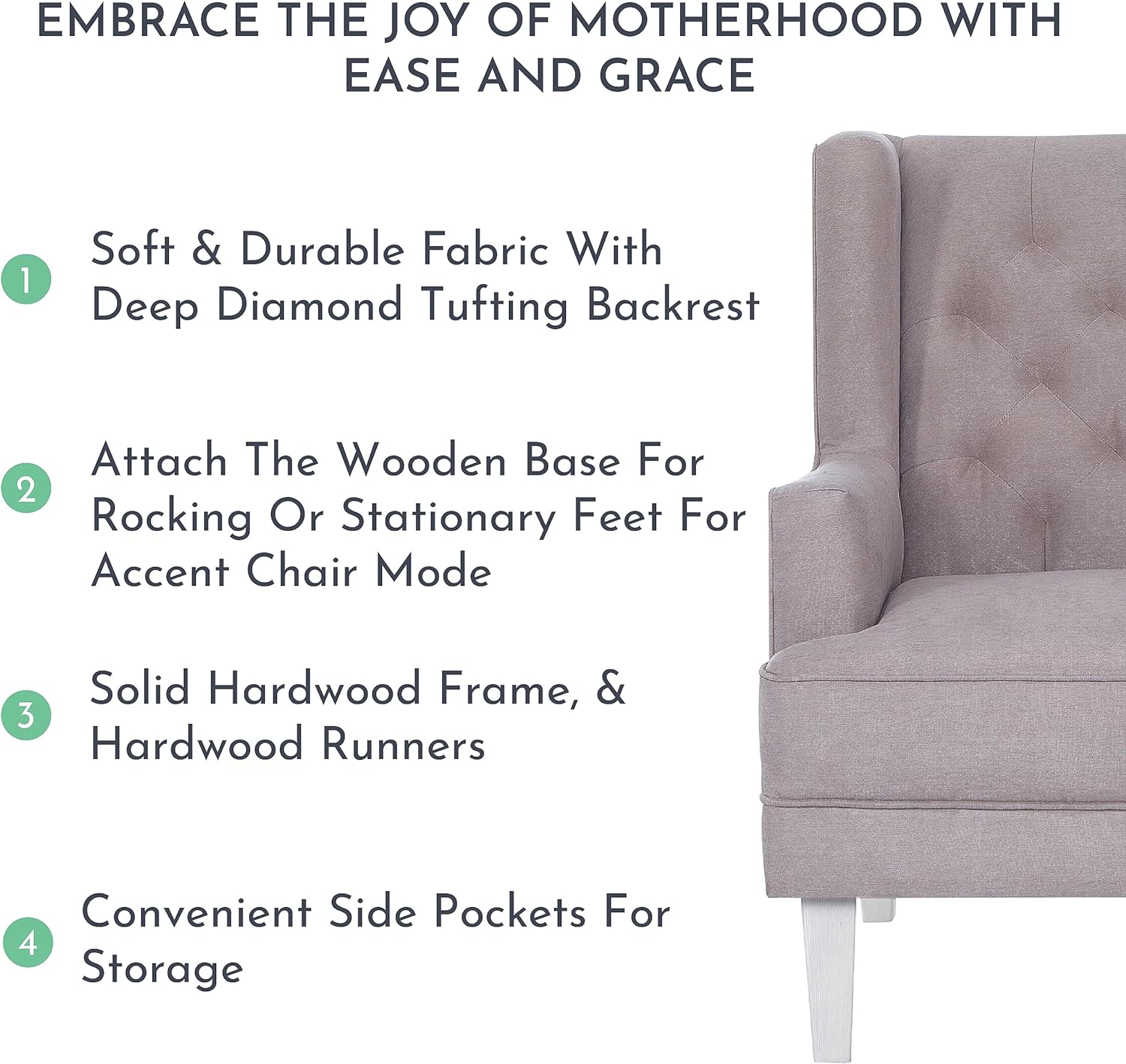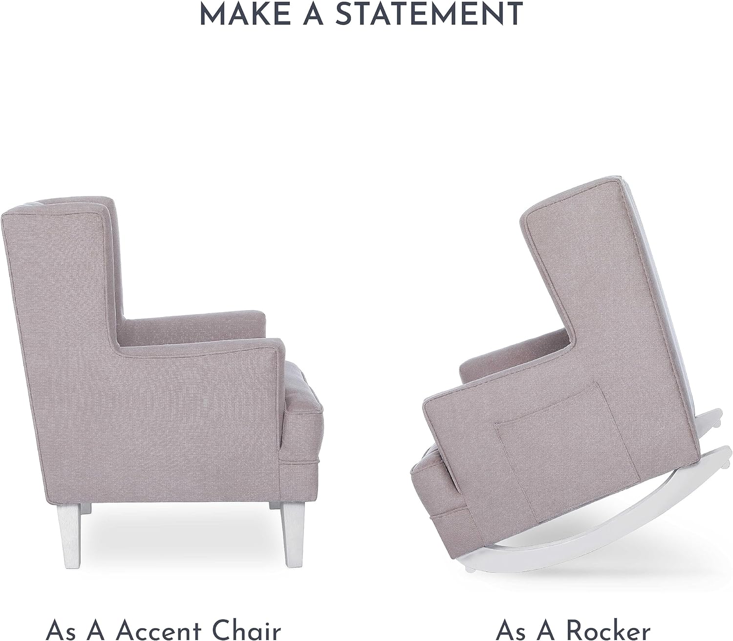 - FABULOUS CONVERTIBILITY - It's a rocking chair! It's an accent chair! Well, it's both Sit back and enjoy its relaxing rocking motions or convert it into an accent chair - a beautiful addition to your nursery, bedroom or living room
