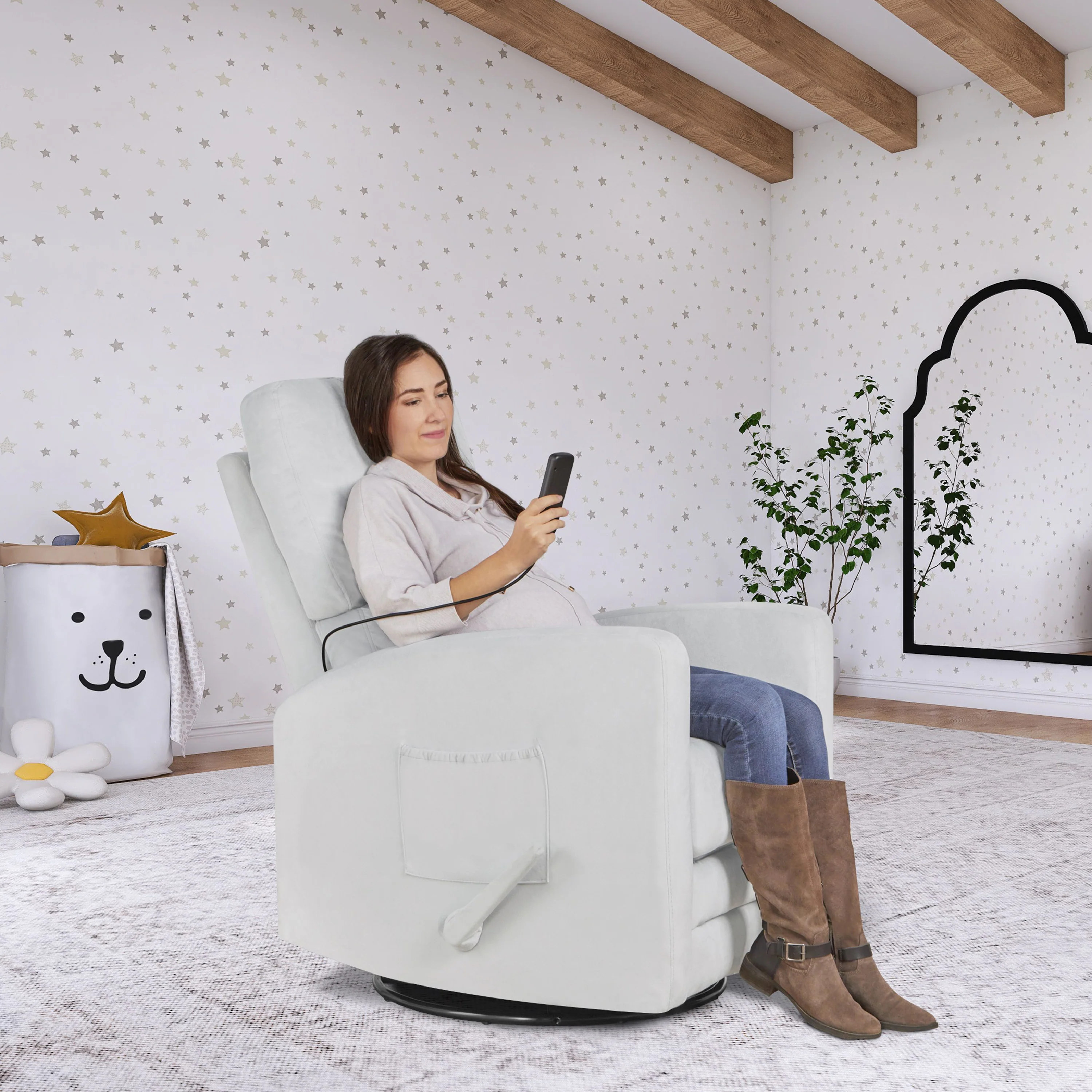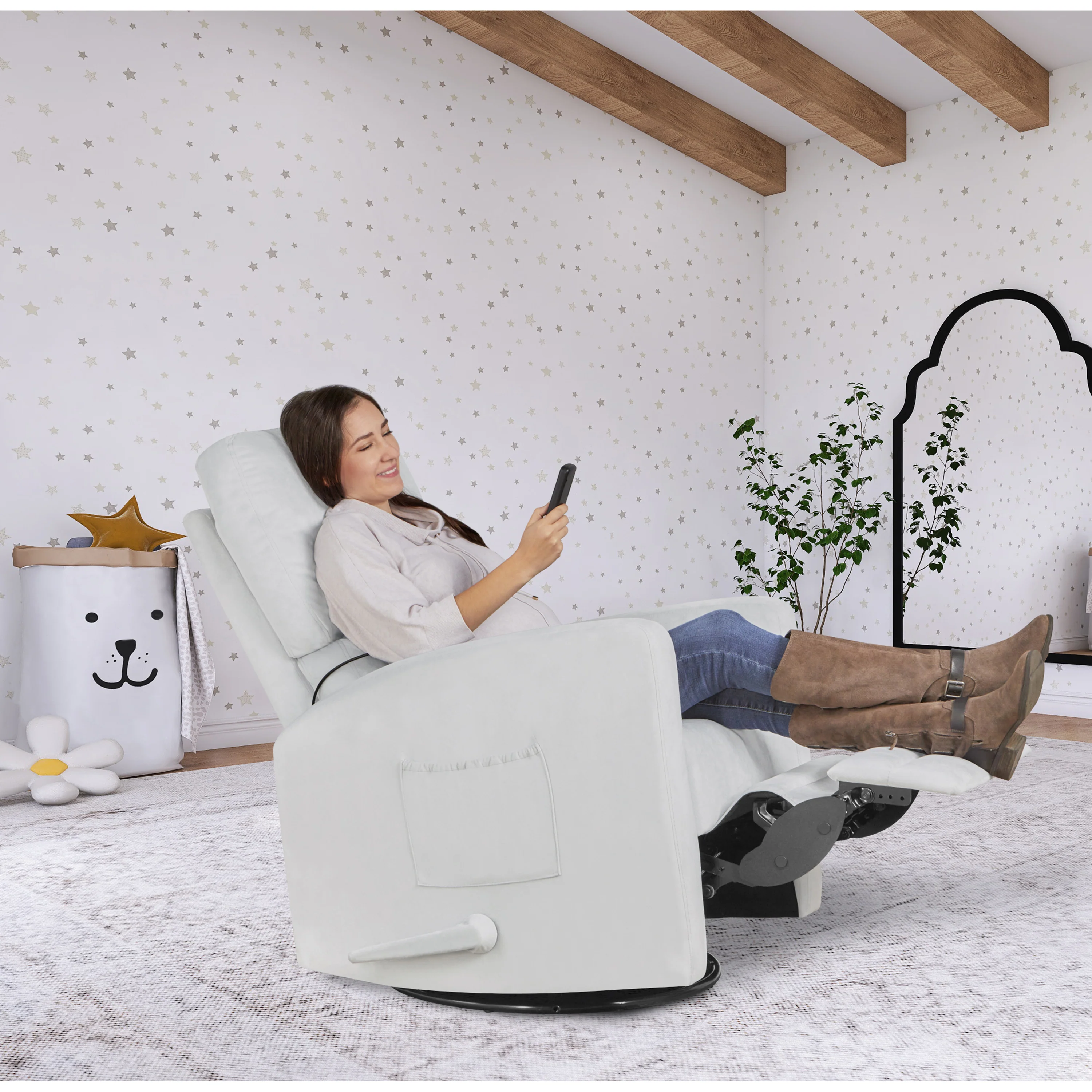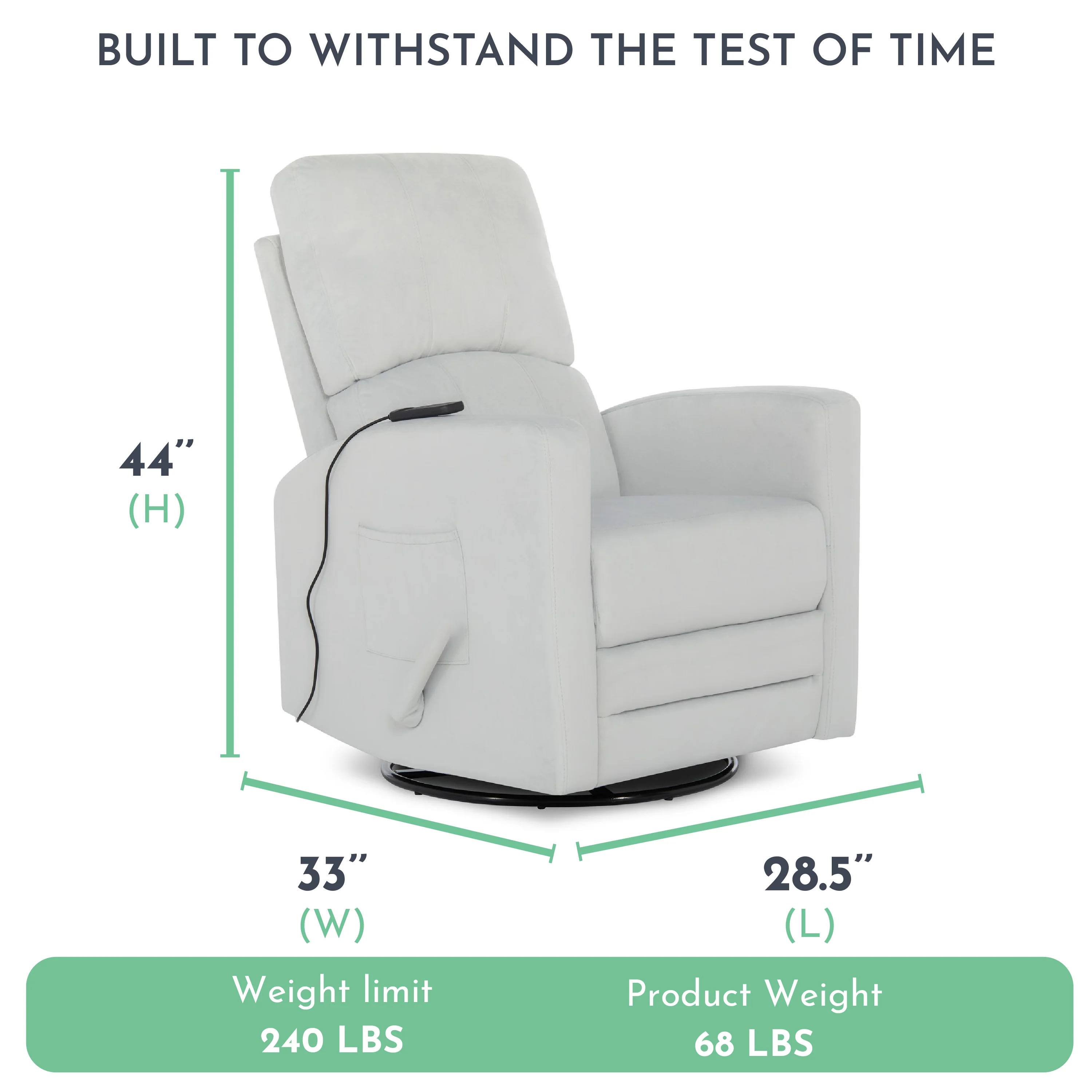 - This glider chair comes in classy Grey making it ideal for any space within your home.