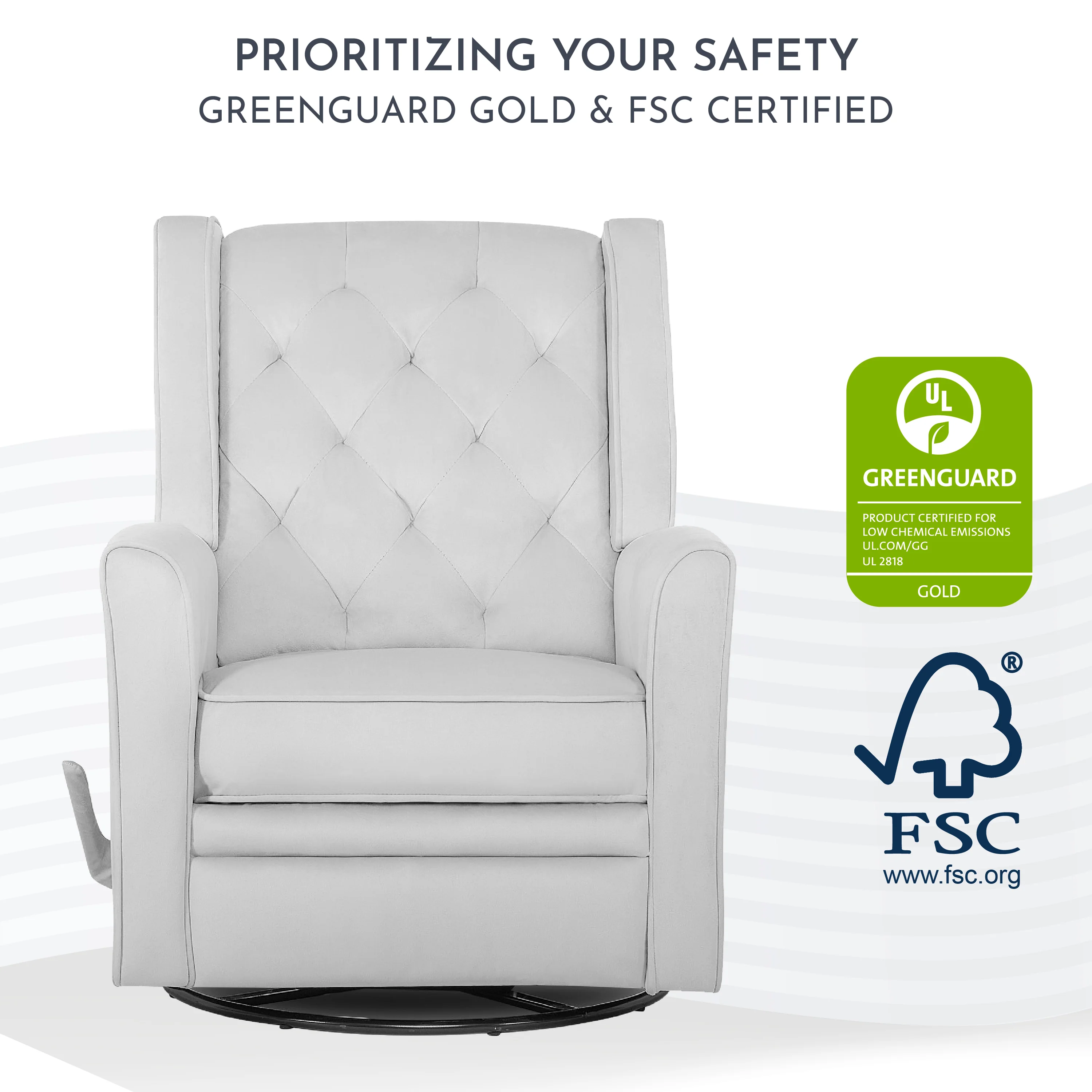 - STYLED FOR ANY NURSERY: The Linda Swivel Recliner Glider is elegantly designed in 2 modern & minimalistic finishes – Grey and Shell.
