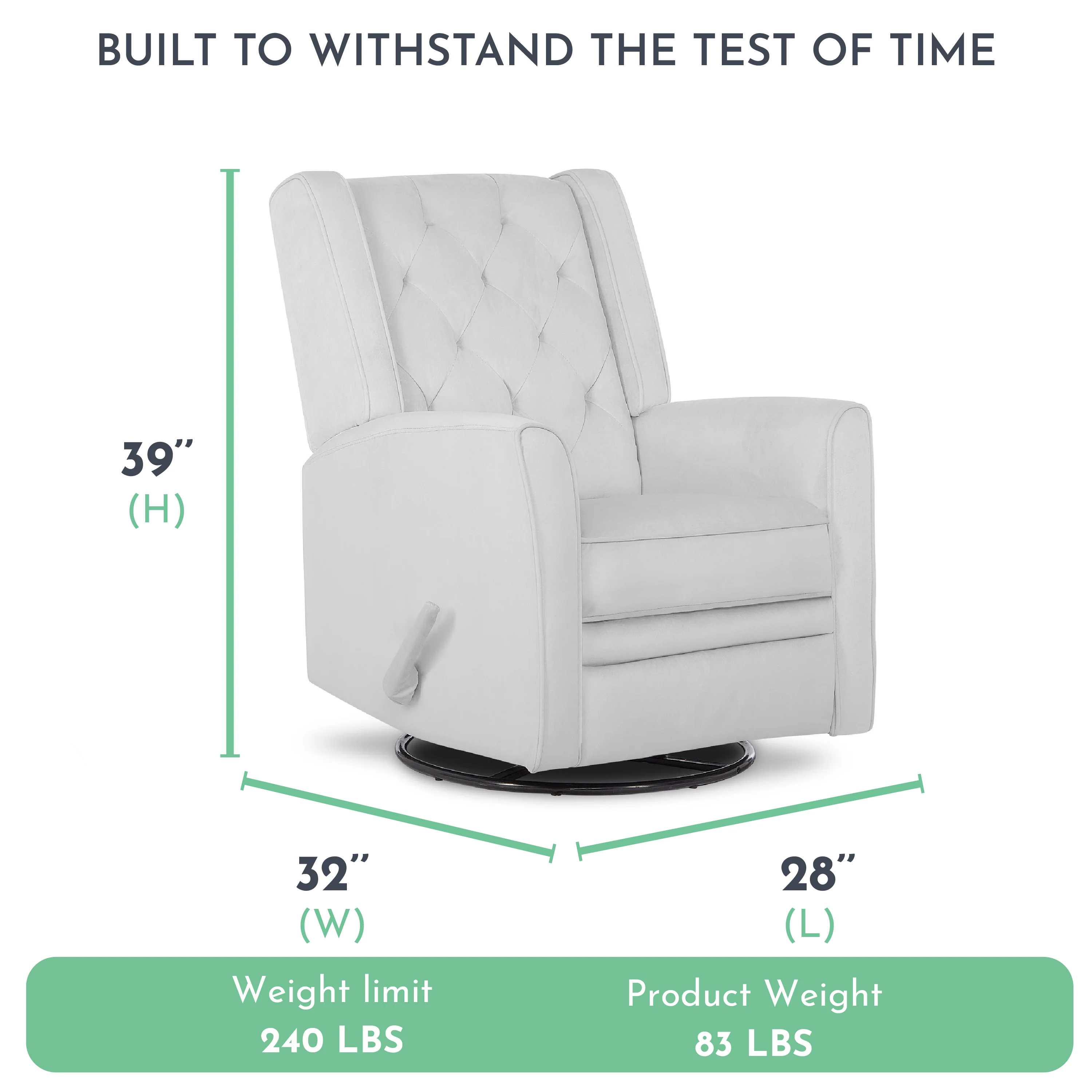 - PRODUCT SPECS.: The Linda Swivel Recliner Glider weighs 81 lbs. with dimensions of 36” L x 28.5” W x 39” H. Weight capacity: approx. 240 lbs.