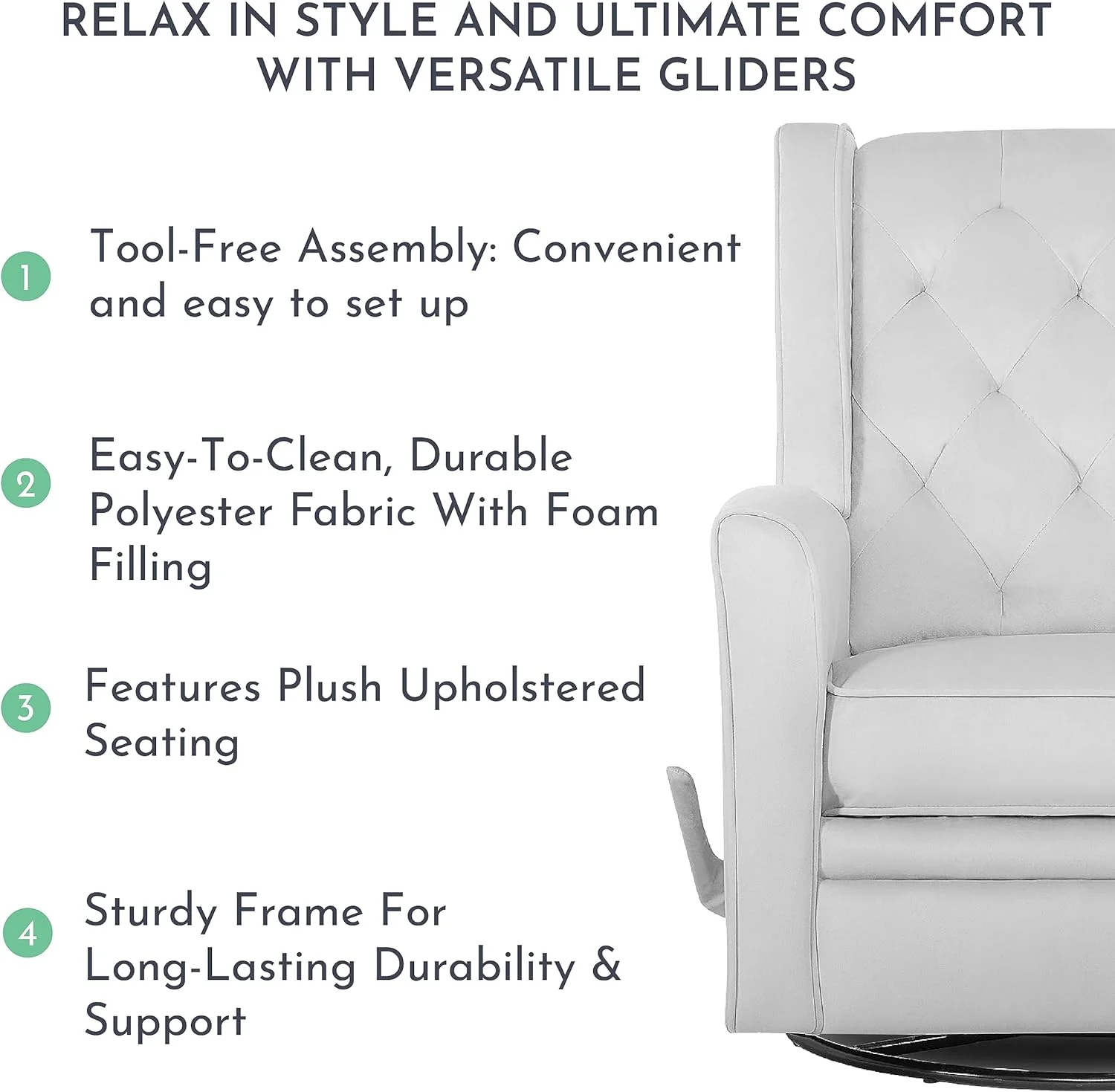 - STURDY AND BUILT TO LAST: This glider chair is designed with a solid frame and base with upholstered, plush seating.