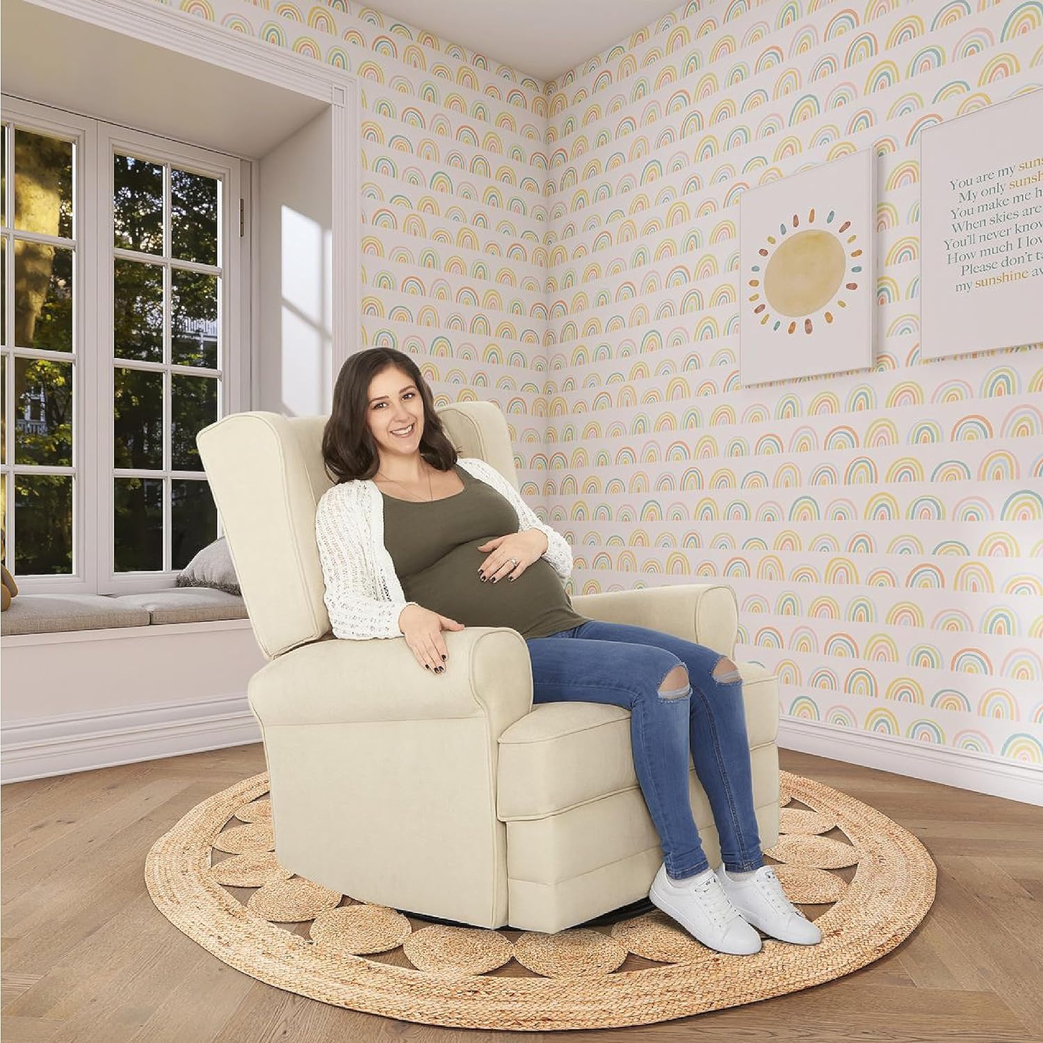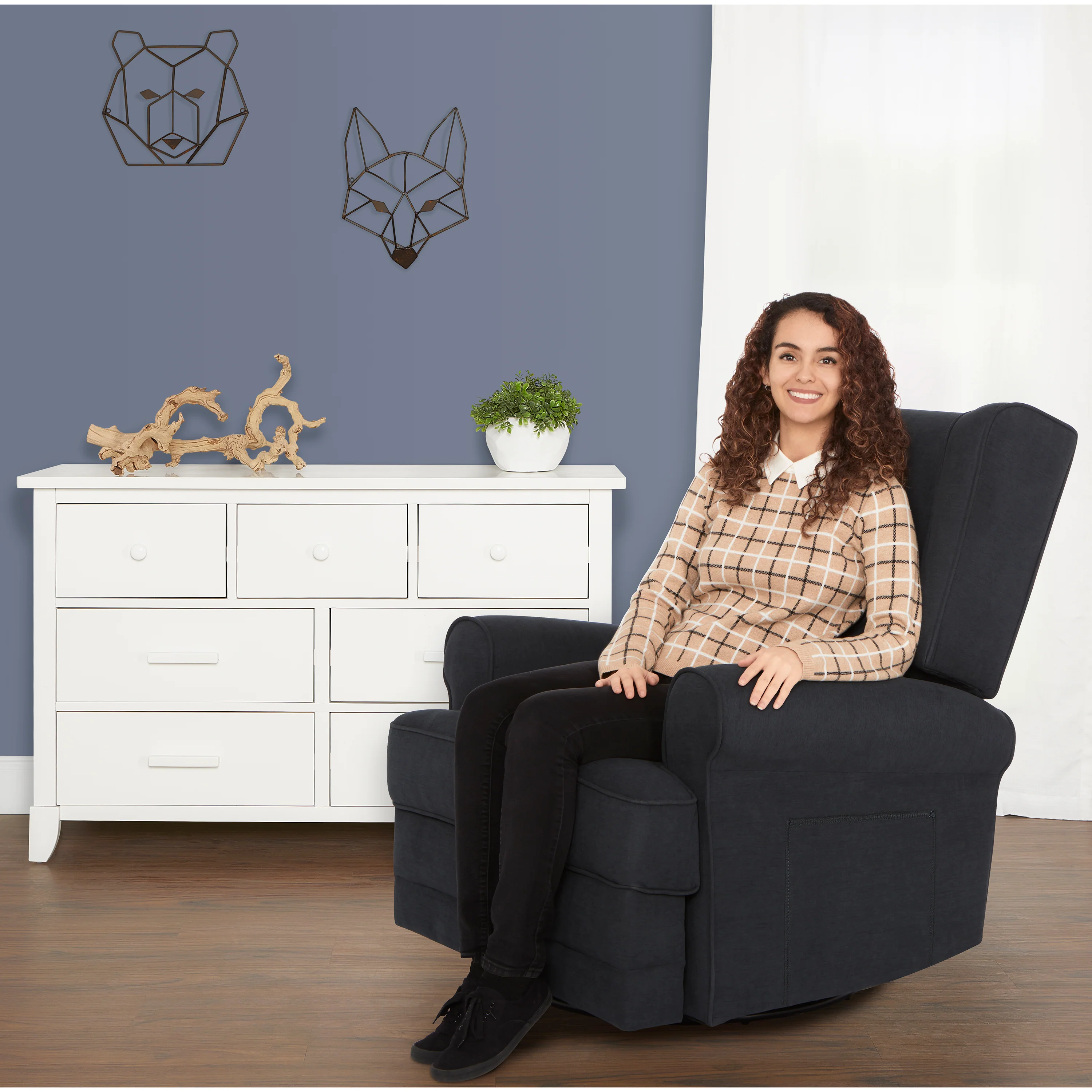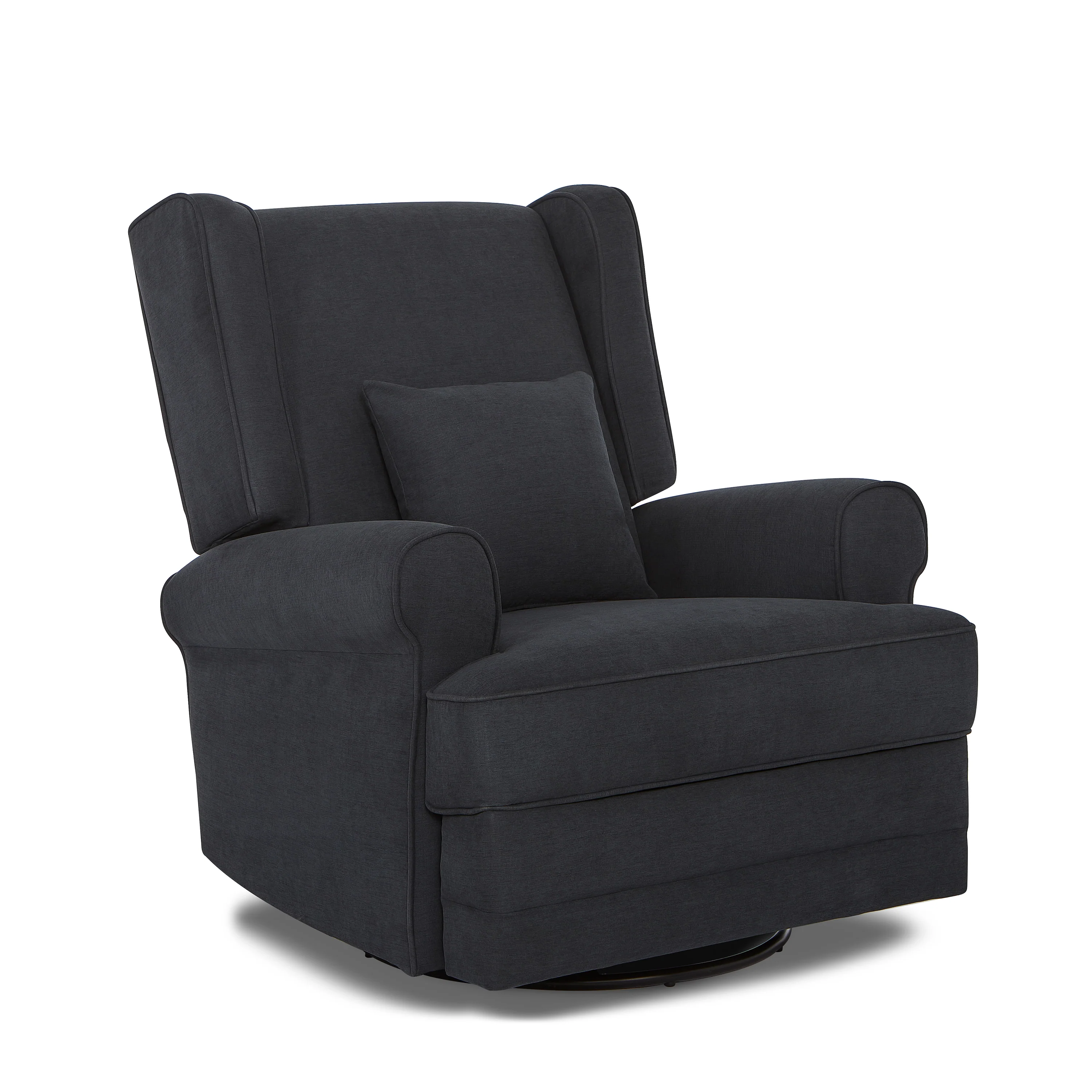 Pamper those aching muscles, nurse your baby or simply enjoy some downtime in the warm embrace of the Evolur Melbourne Wingback Swivel Glider | Nursery Glider. From an easy to operate reclining mechanism to plush seating, a bonus lumbar pillow and padded armrests, the Melbourne spells luxury and comfort like no other! The Melbourne features an ergonomic high backrest, smooth gliding movements and 360° swivel motions, designed to provide maximum comfort to your body. Enjoy the advantages of a stress-free assembly with the Melbourne! Its solid metal base supports 360-degree swivel rotation and gliding. The Melbourne is covered with an soft to touch yet durable and easy-to-clean fabric with foam filling, and features convenient side pockets. This wingback style recliner features an easy to use and reach recline mechanism. Available in a timeless Iron finish. It comes with a 1-Year Limited Manufacturer’s Warranty. This Melbourne Glider is sustainability-conscious and crafted with FSC Certified Wood. FSC (Forest Stewardship Council) Certifications recognize that the wood is ethically-sourced, ensuring the safety of our forests, environment, wildlife and human rights.