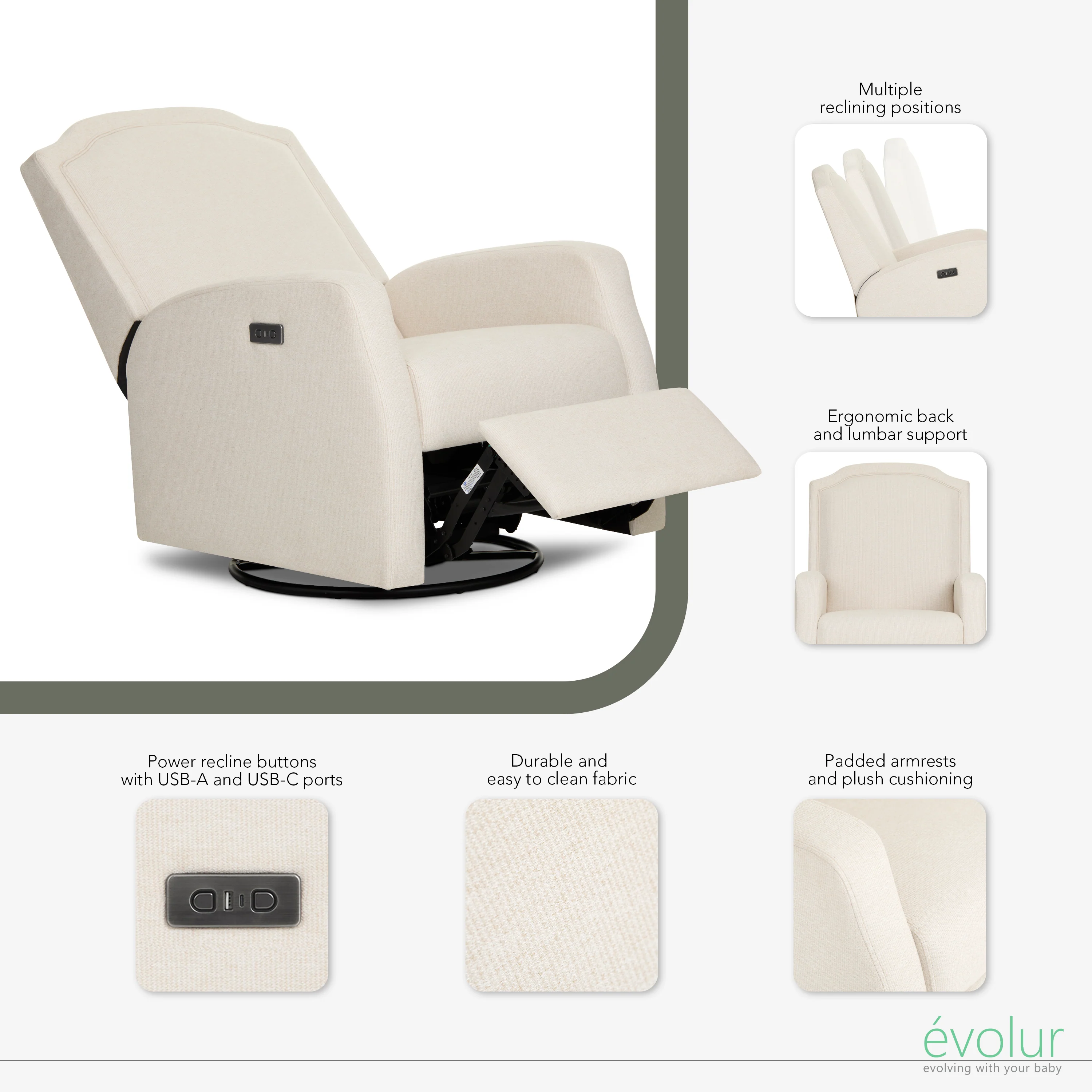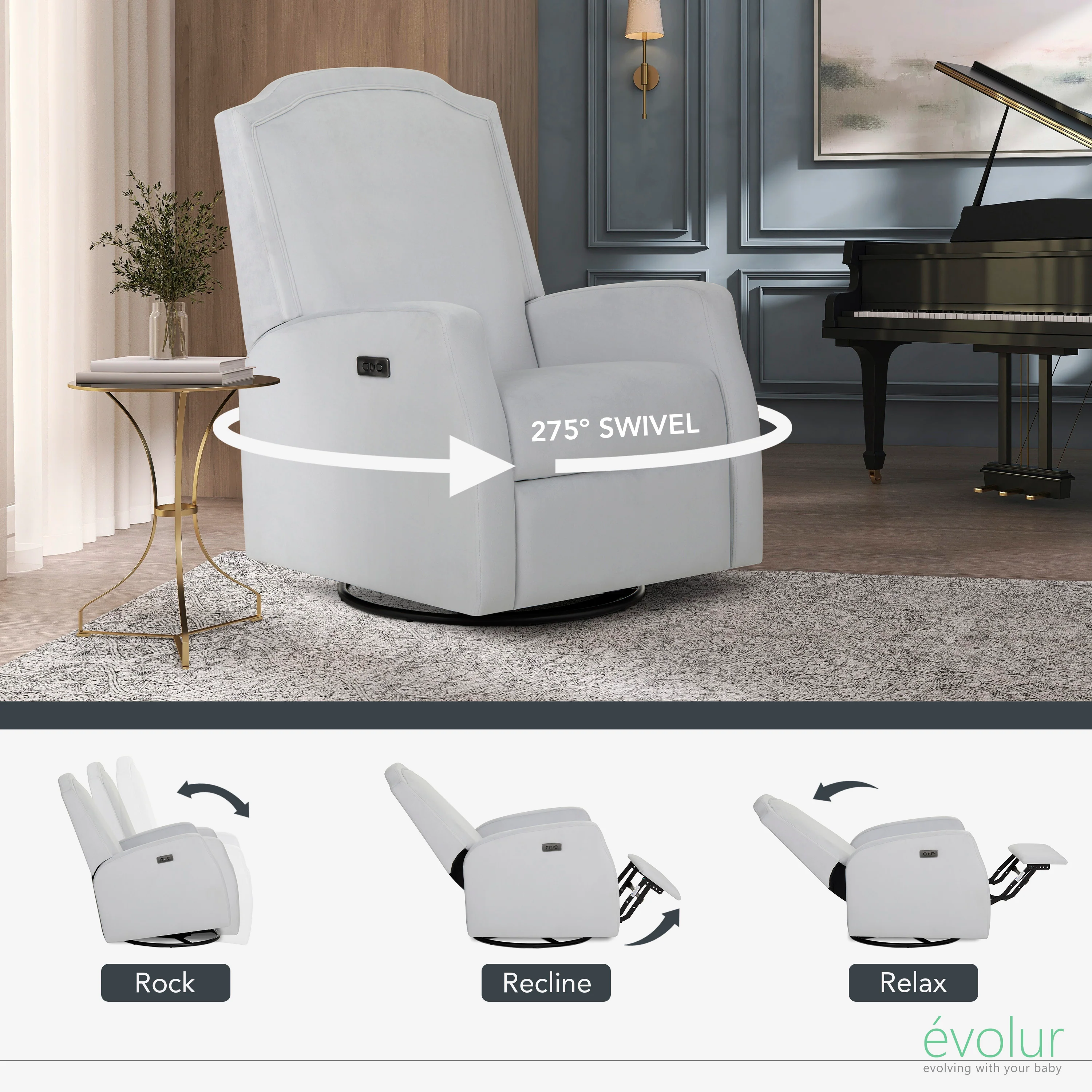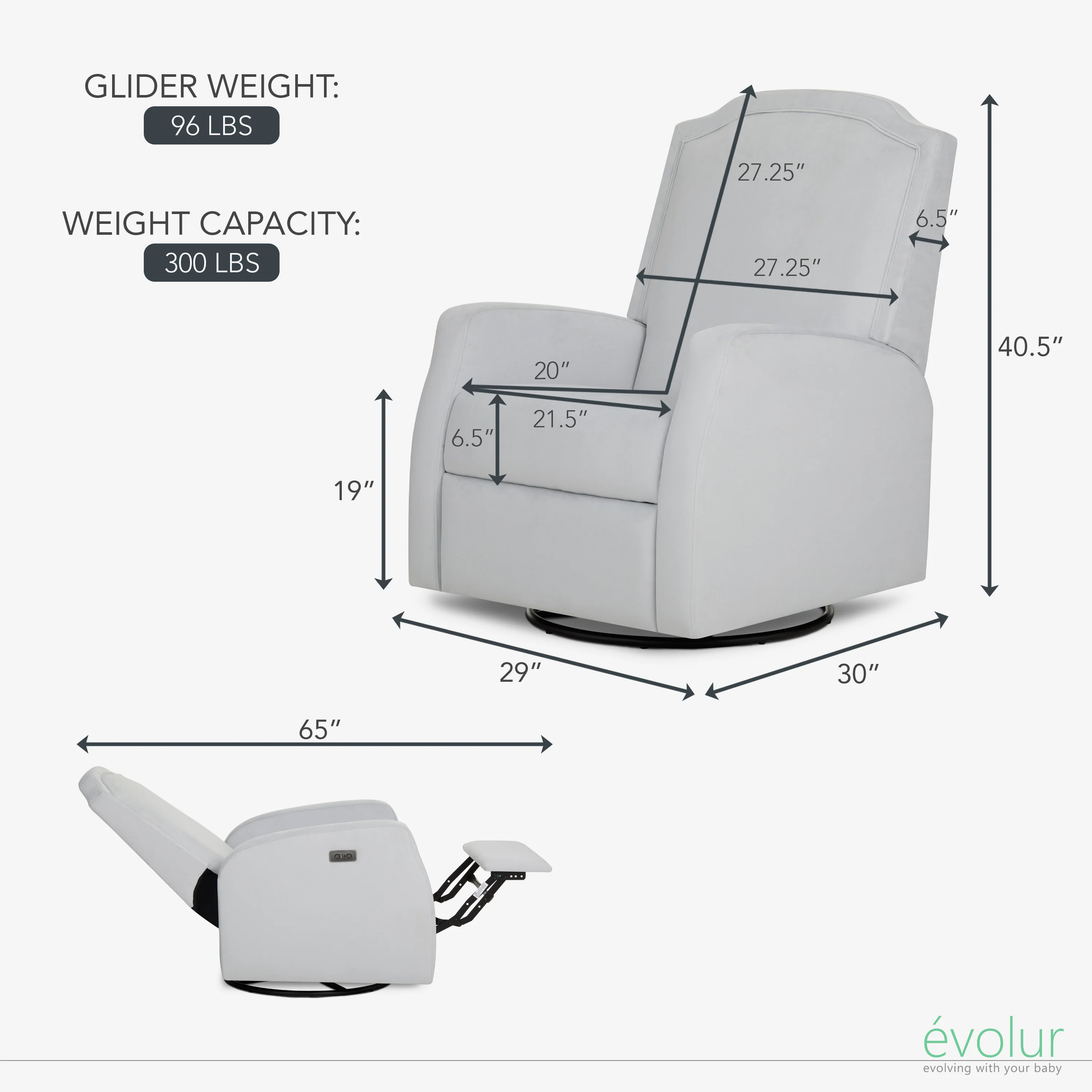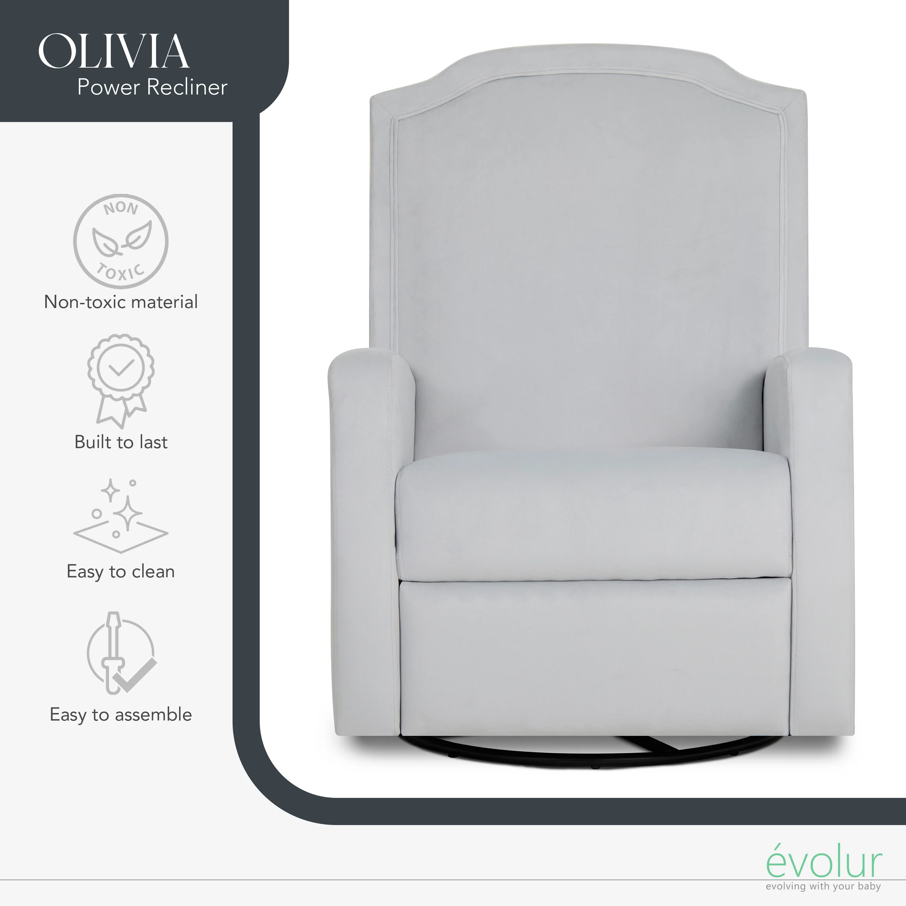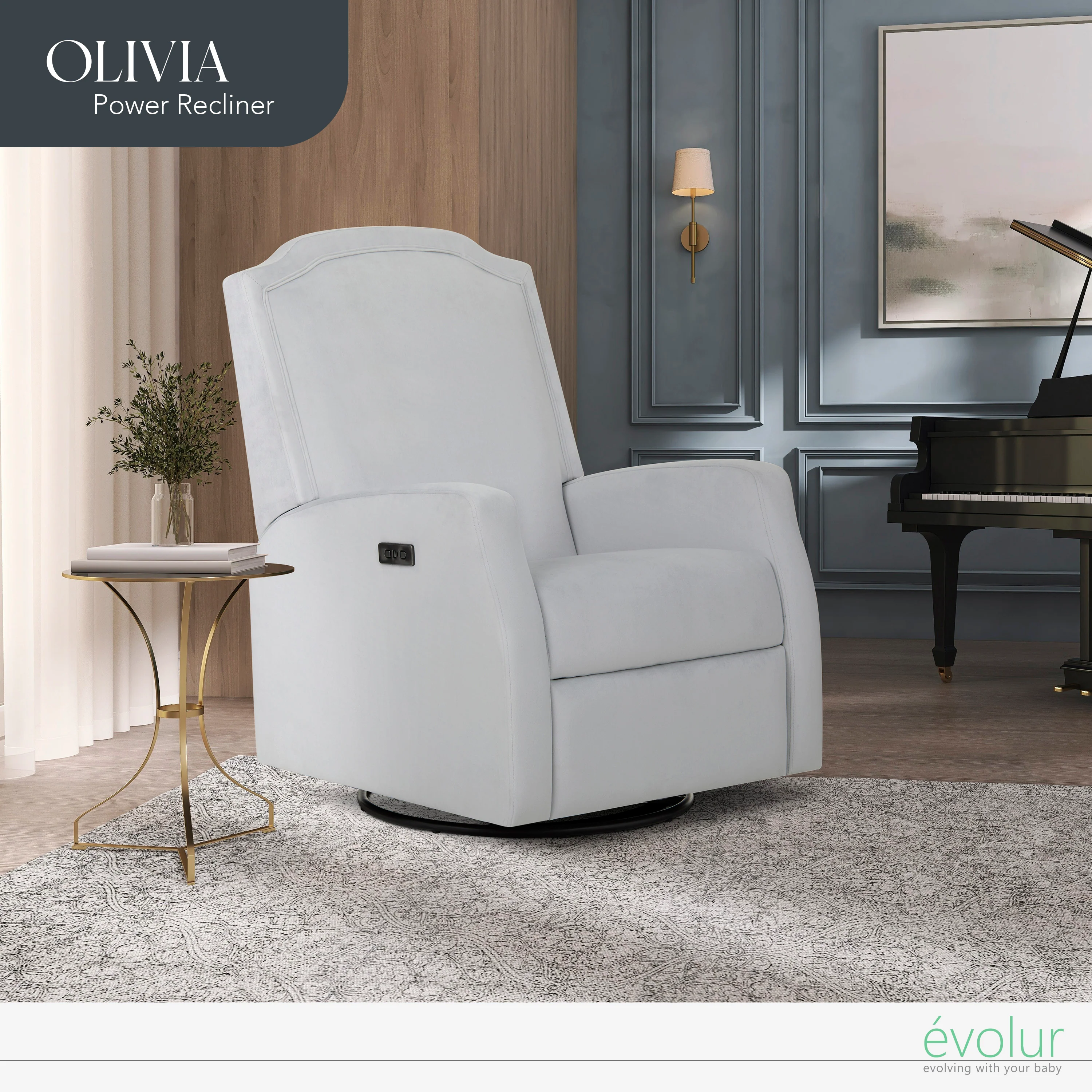 - STYLISH & FUNCTIONAL: Say hello to a cozy glider where elegance meets ease. The Evolur Olivia Power Recline Glider is both a stylish and functional must-have.