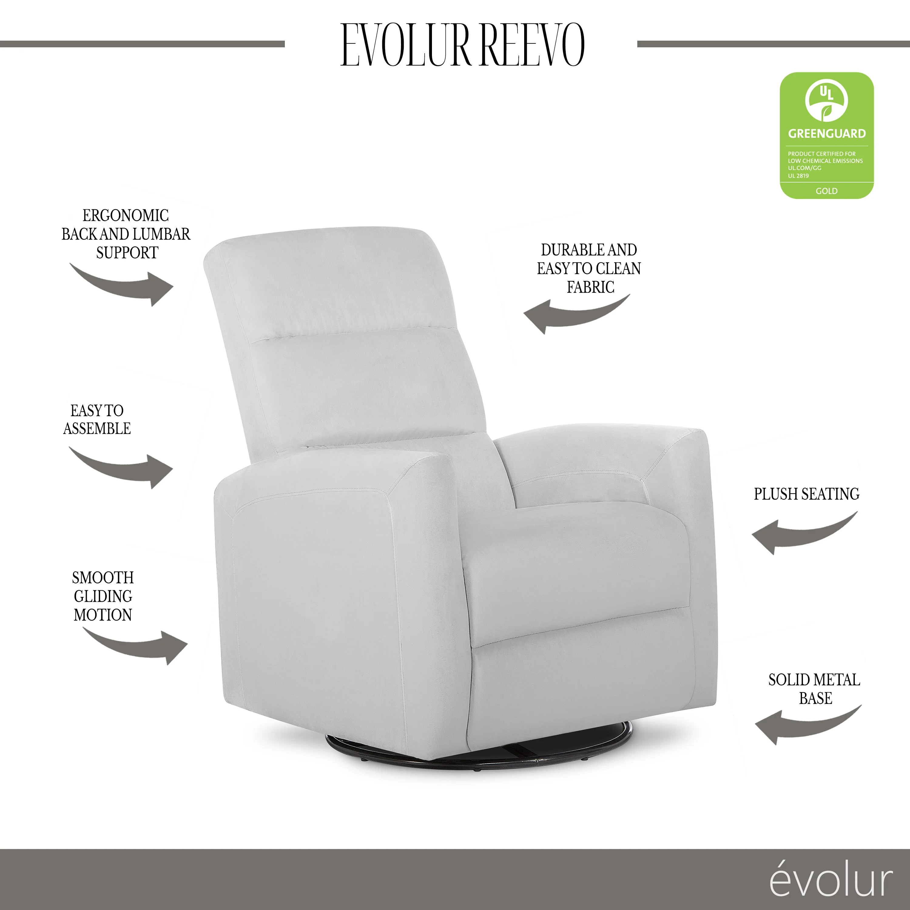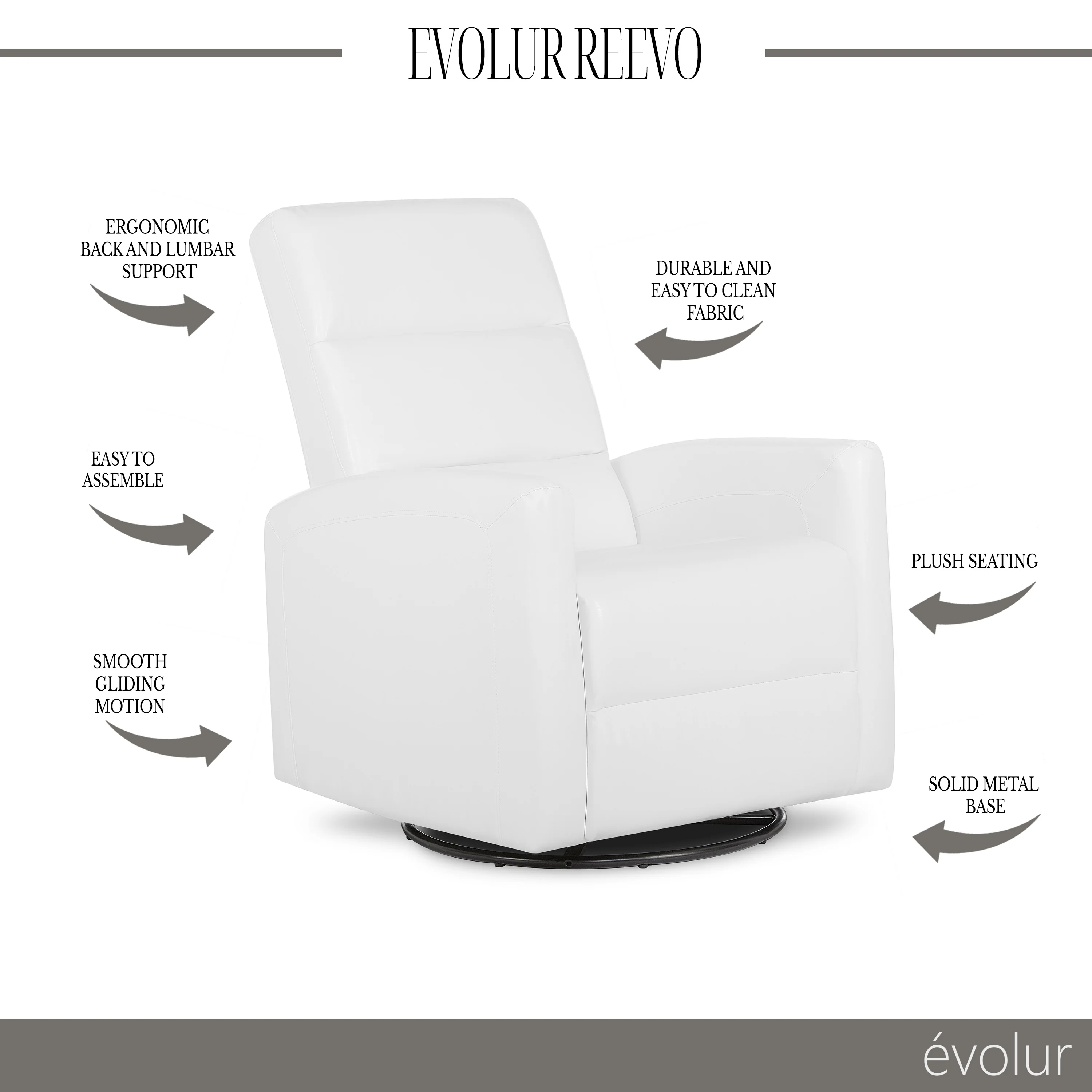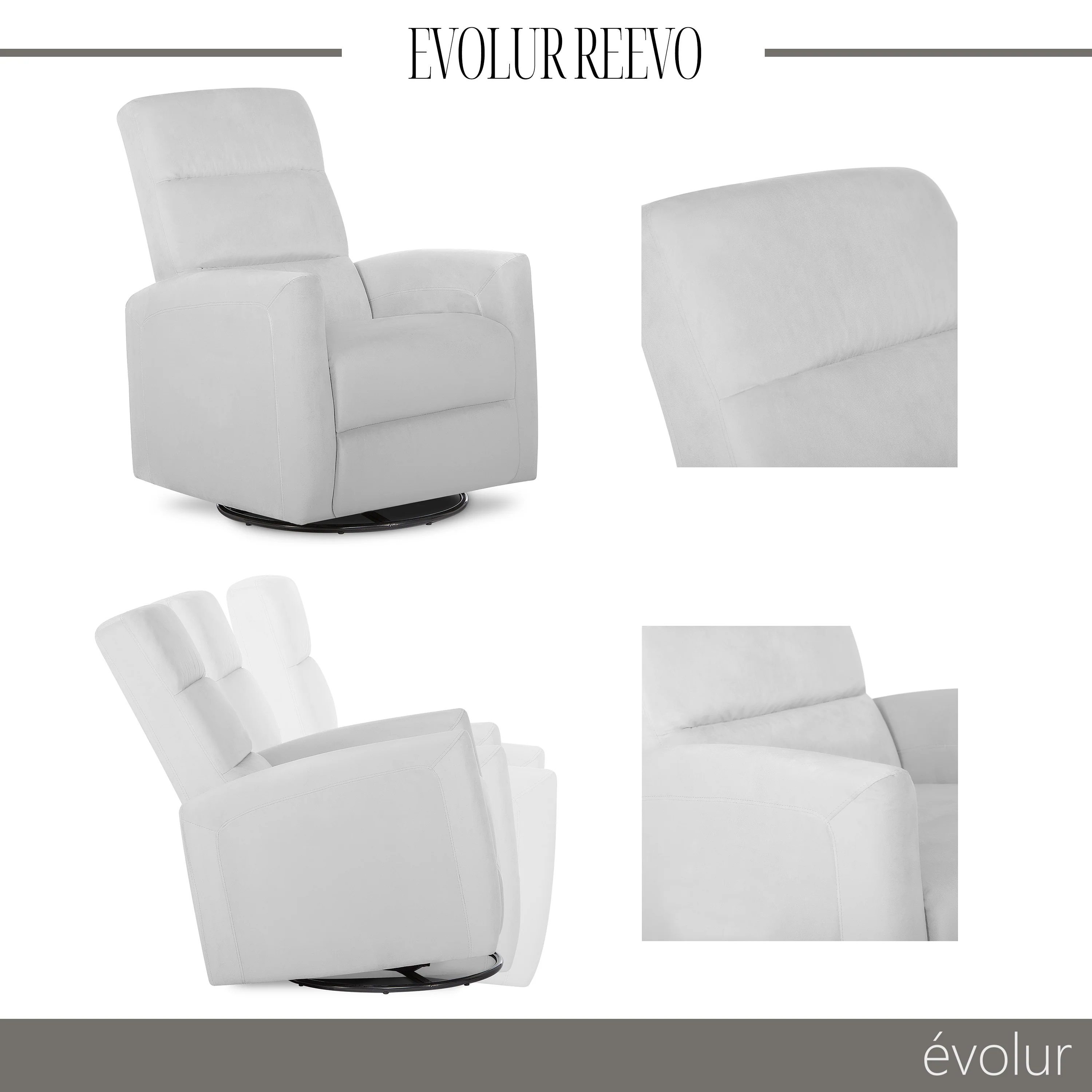 - With 360° swivel motions, the Reevo Glider is sure to be a favorite of new parents.