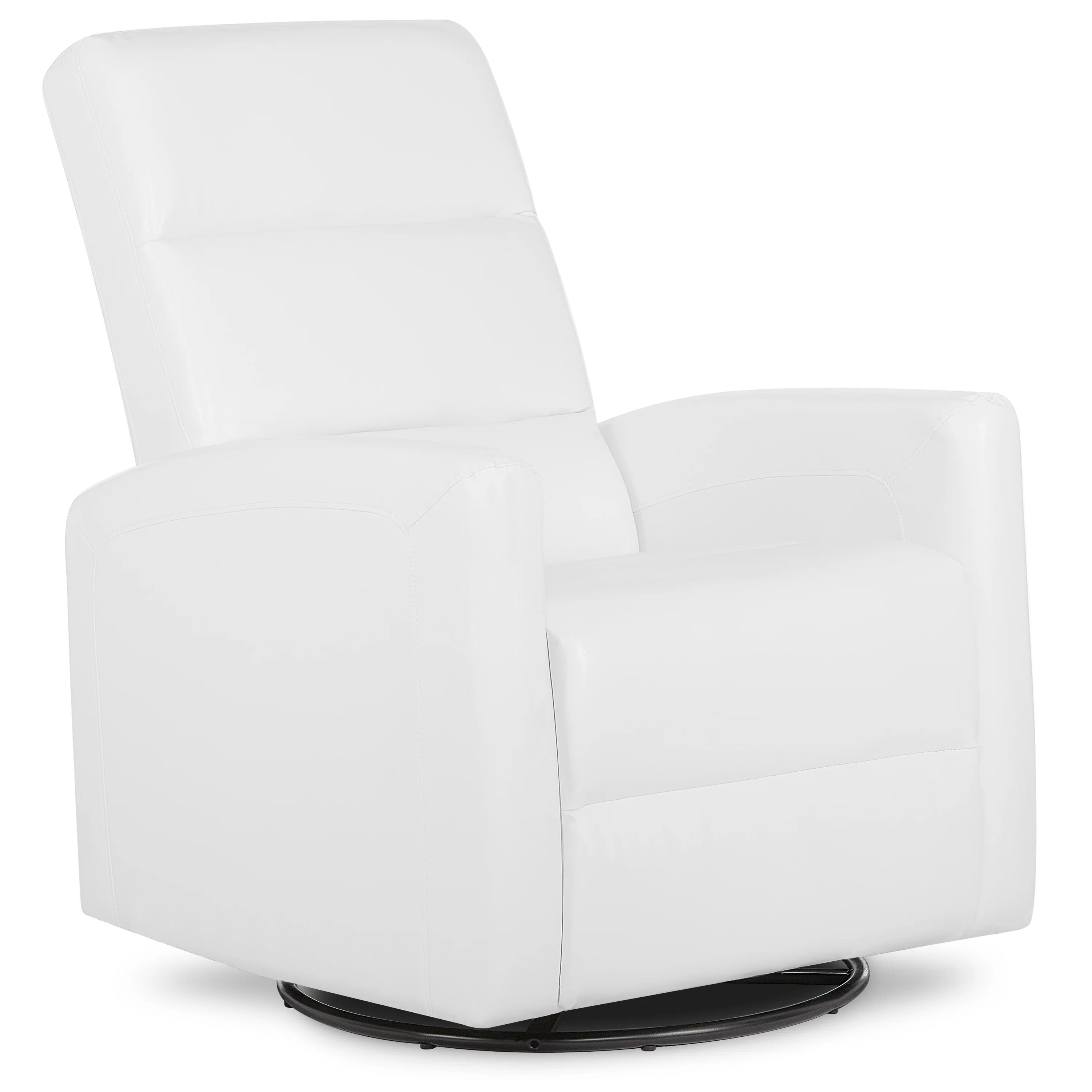 - This glider chair is designed with a solid frame and base with upholstered, pleather seating.