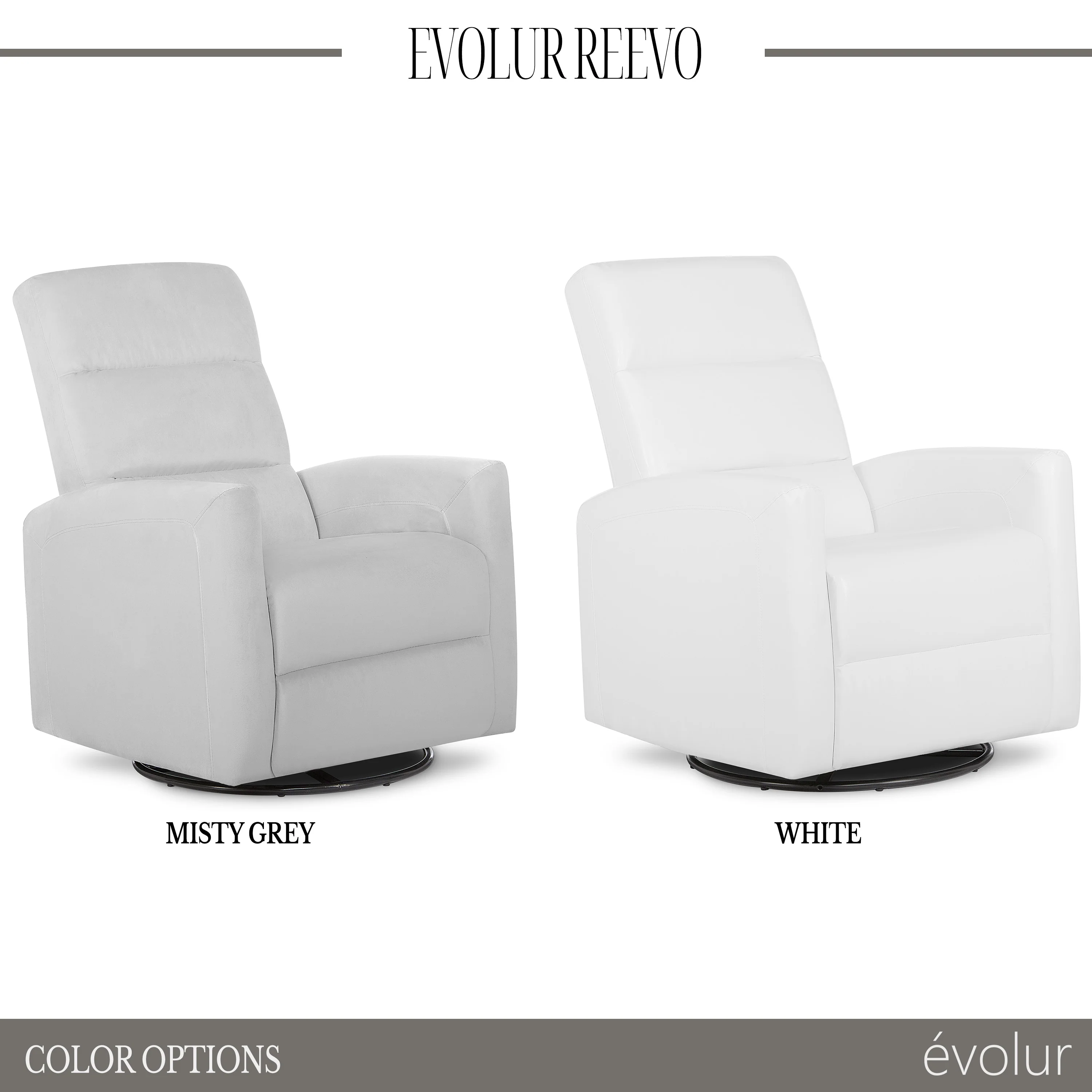 - The Reevo Glider is elegantly designed in 2 modern & minimalistic finishes – Grey and White.