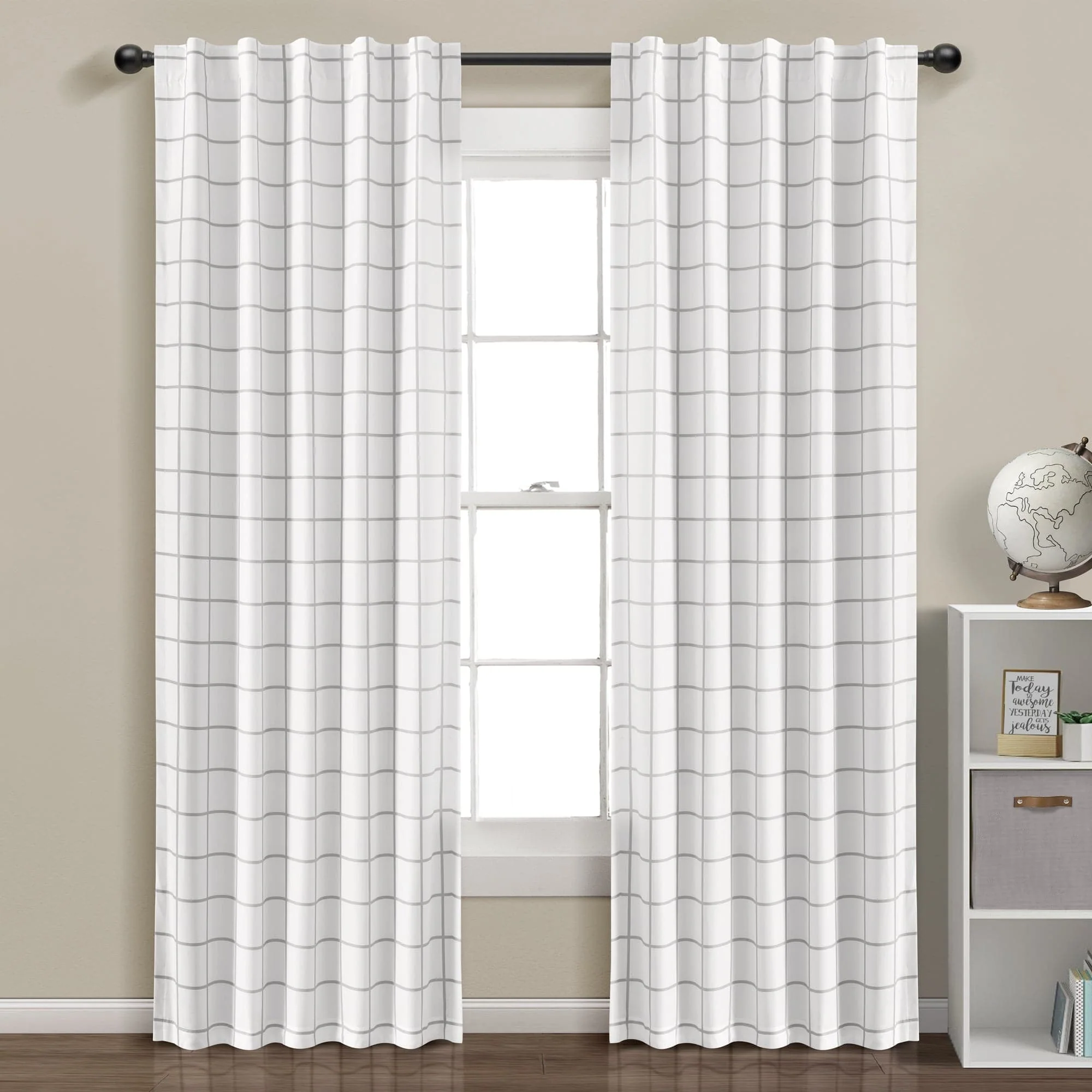 LushDecor Urban Square Grid Blackout Window Curtain Panel Set