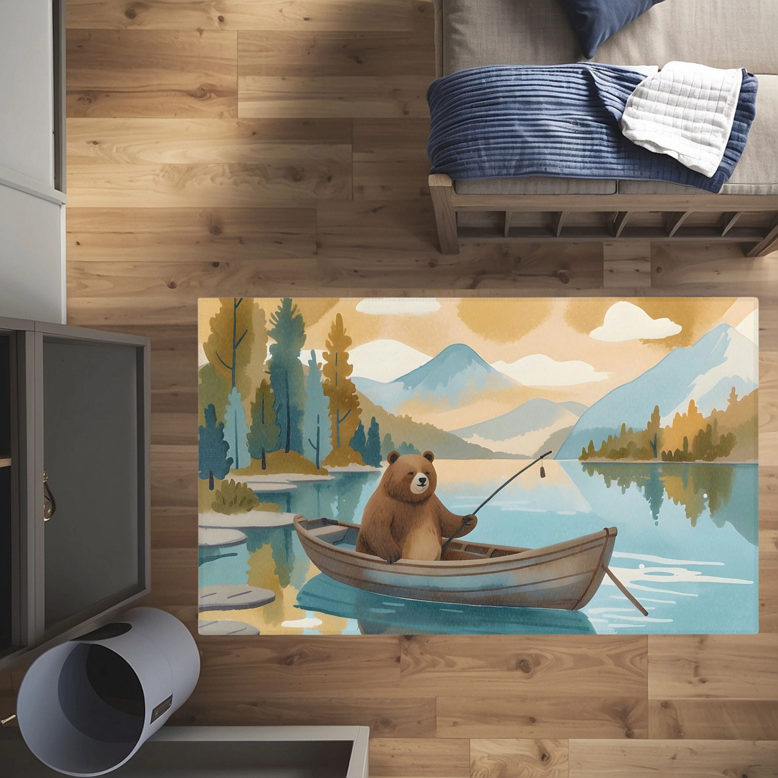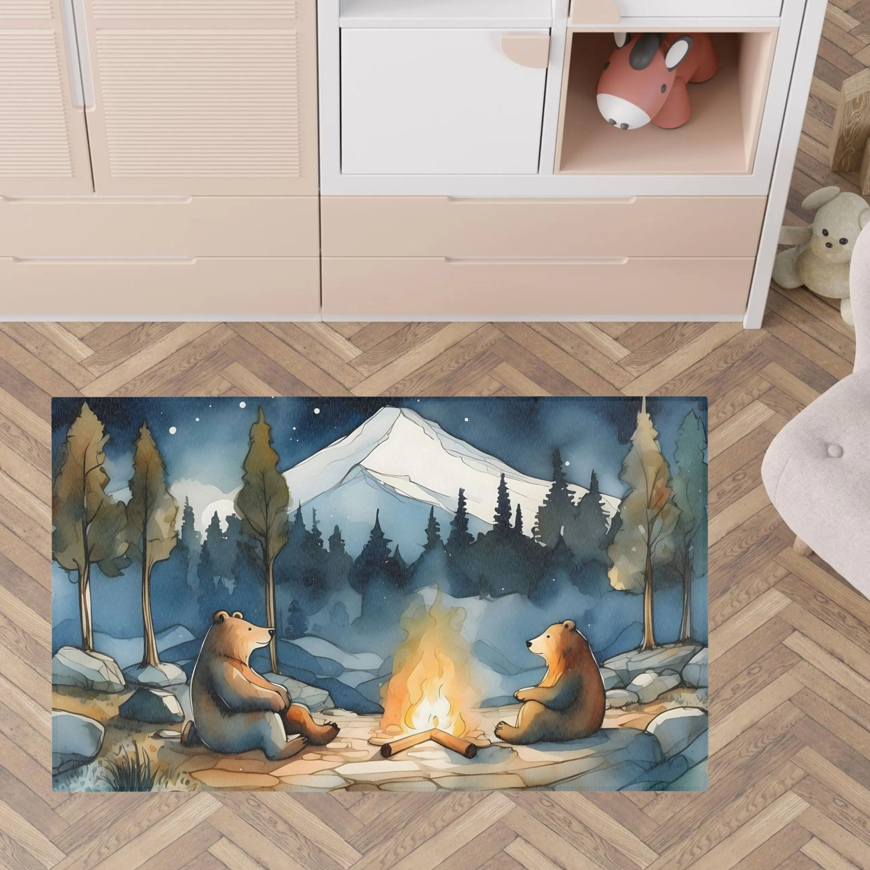 TeepeeJoy Bear Rug for Nursery and Kids Rooms - Bear Bonfire Bash