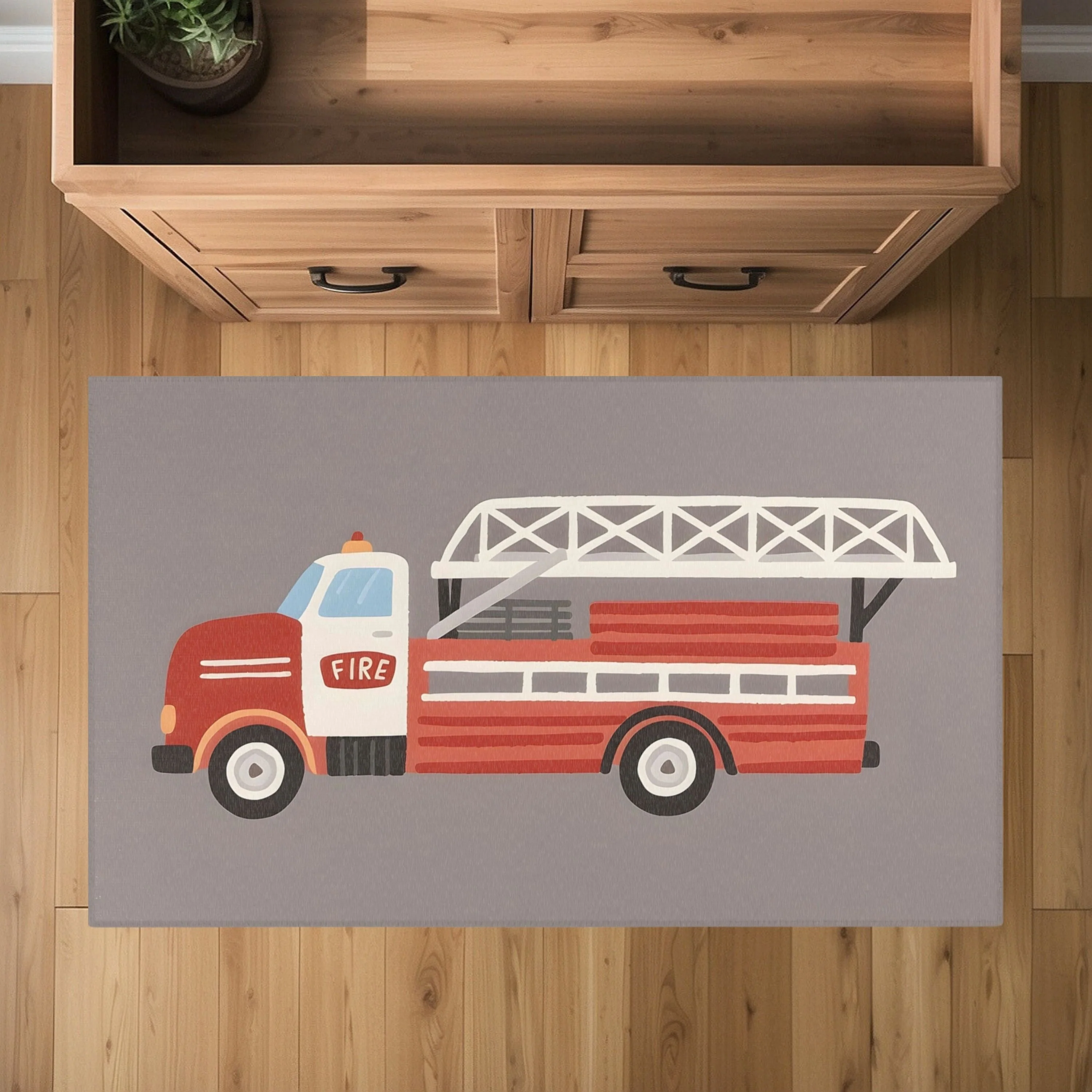 TeepeeJoy Firetruck Rug for Nursery and Kids Rooms - Rapid Red Rover