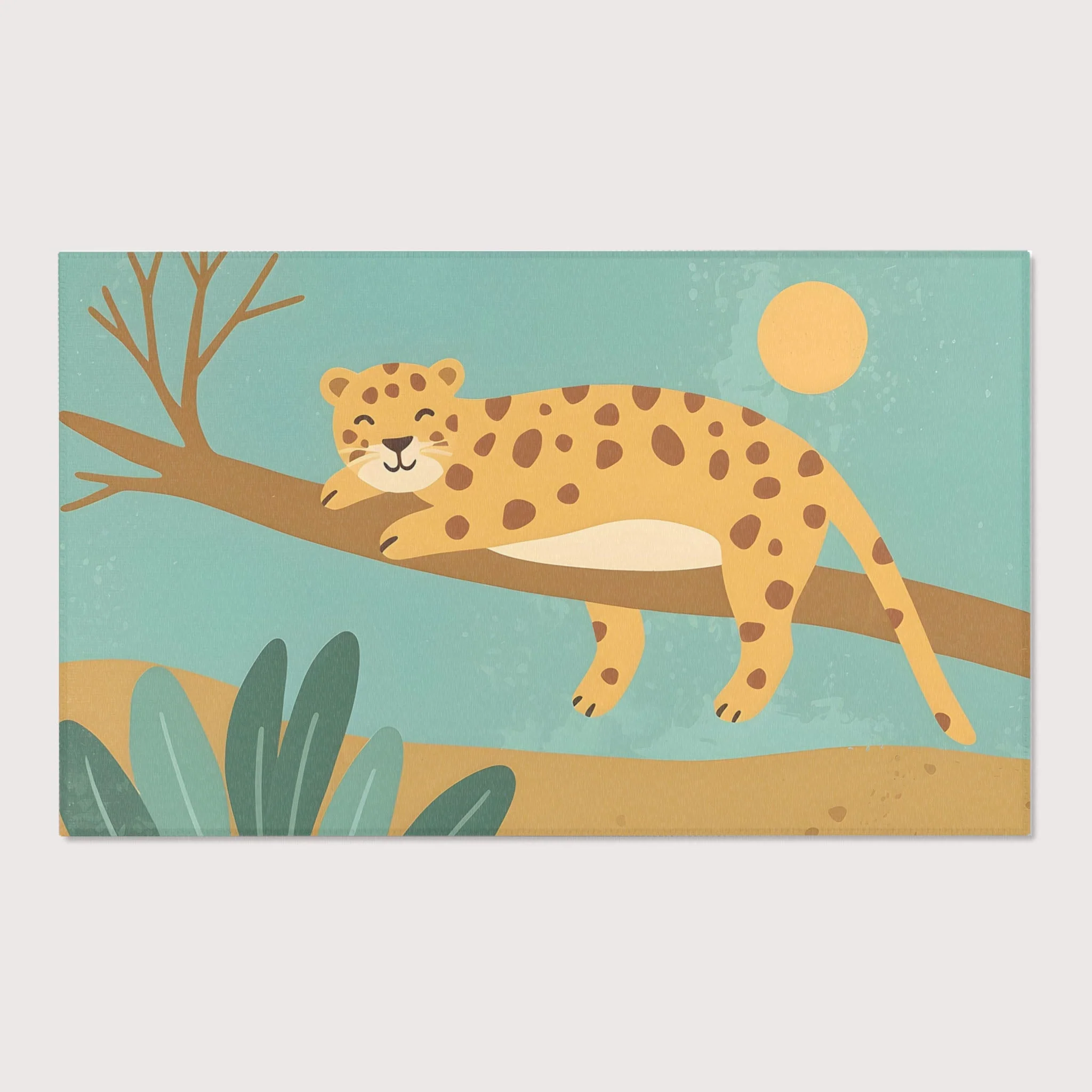 TeepeeJoy Leopard Area Rug for Nursery and Kids Rooms - Lazy Leopard Lounging
