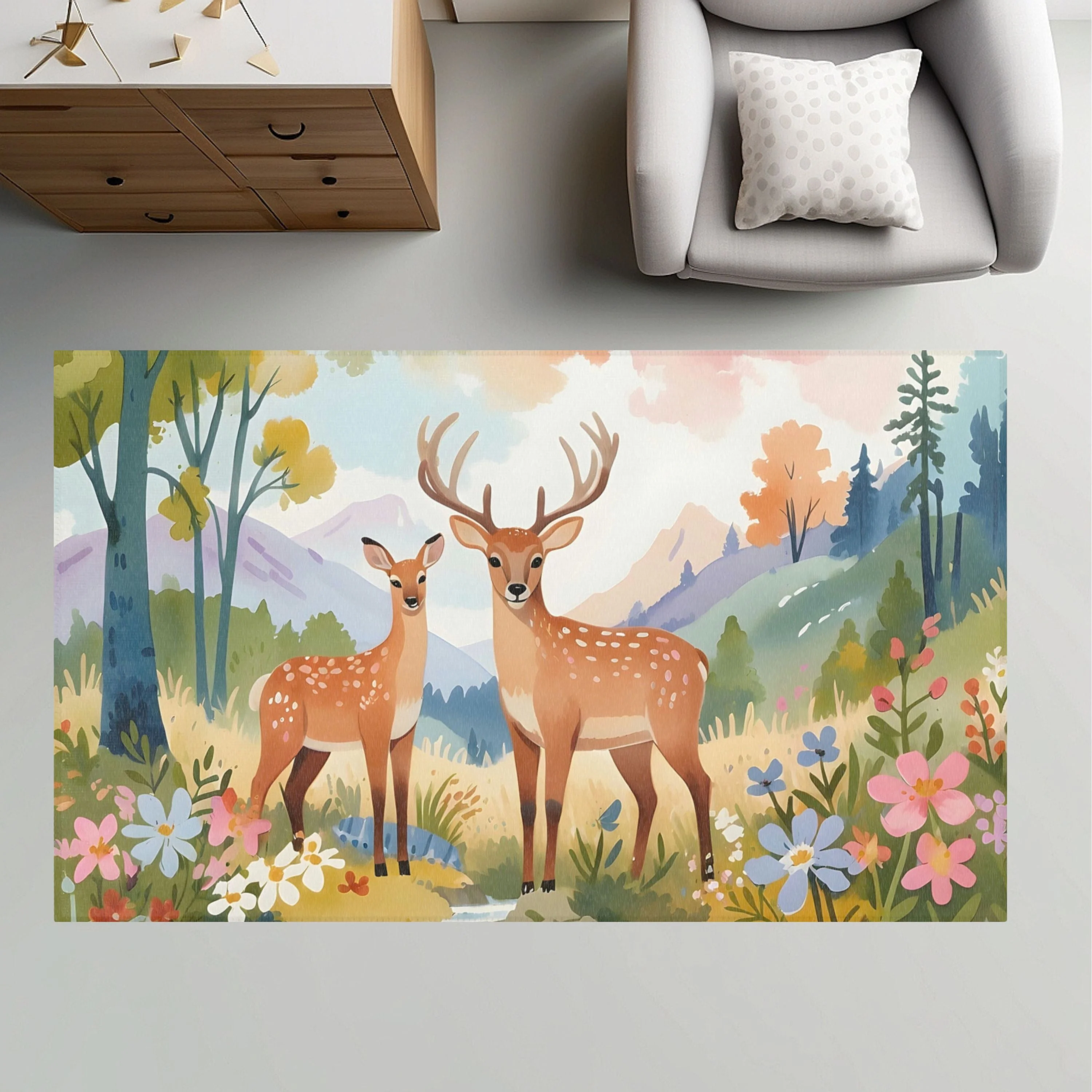 TeepeeJoy Deer Rug for Nursery and Kids Rooms - Fawn and Buck