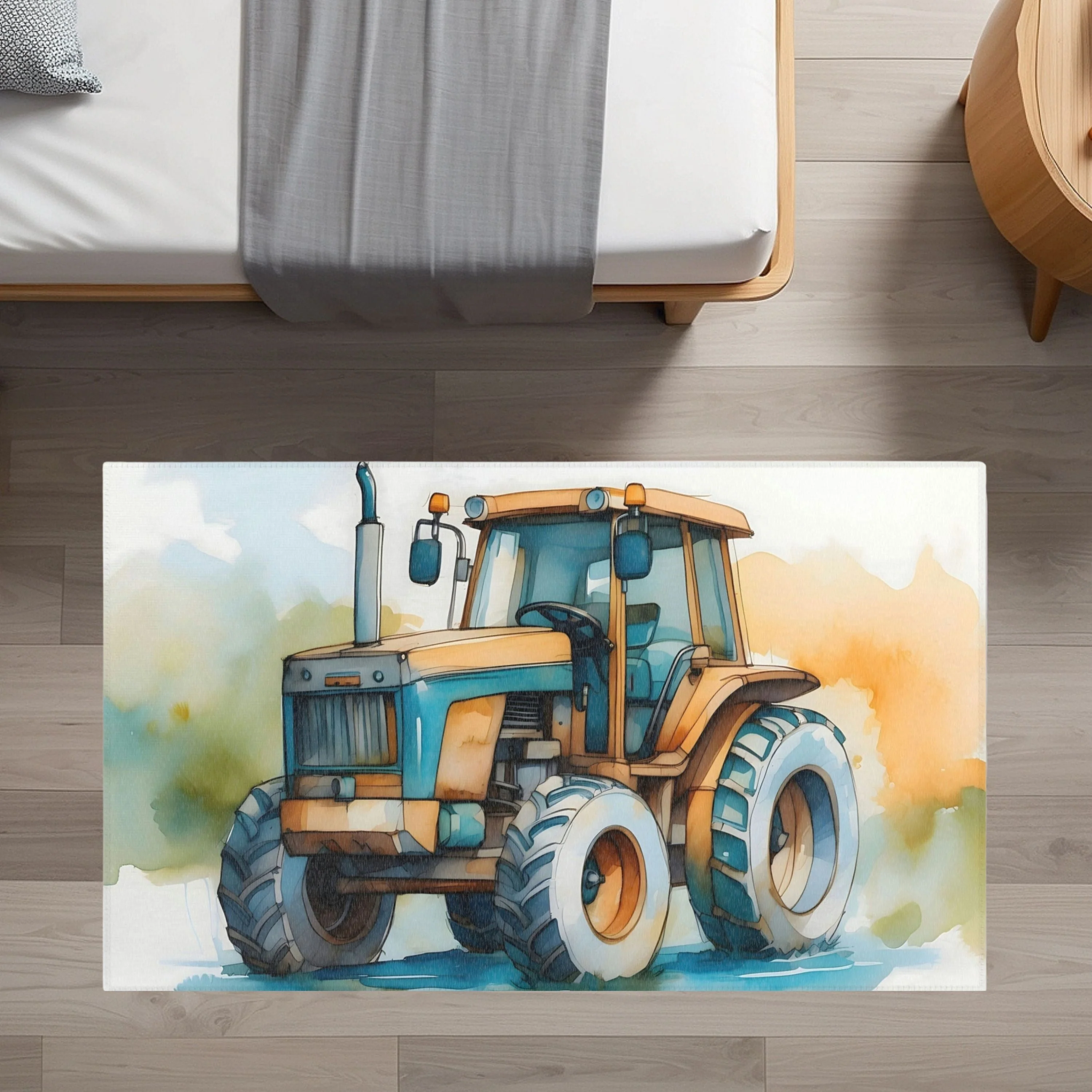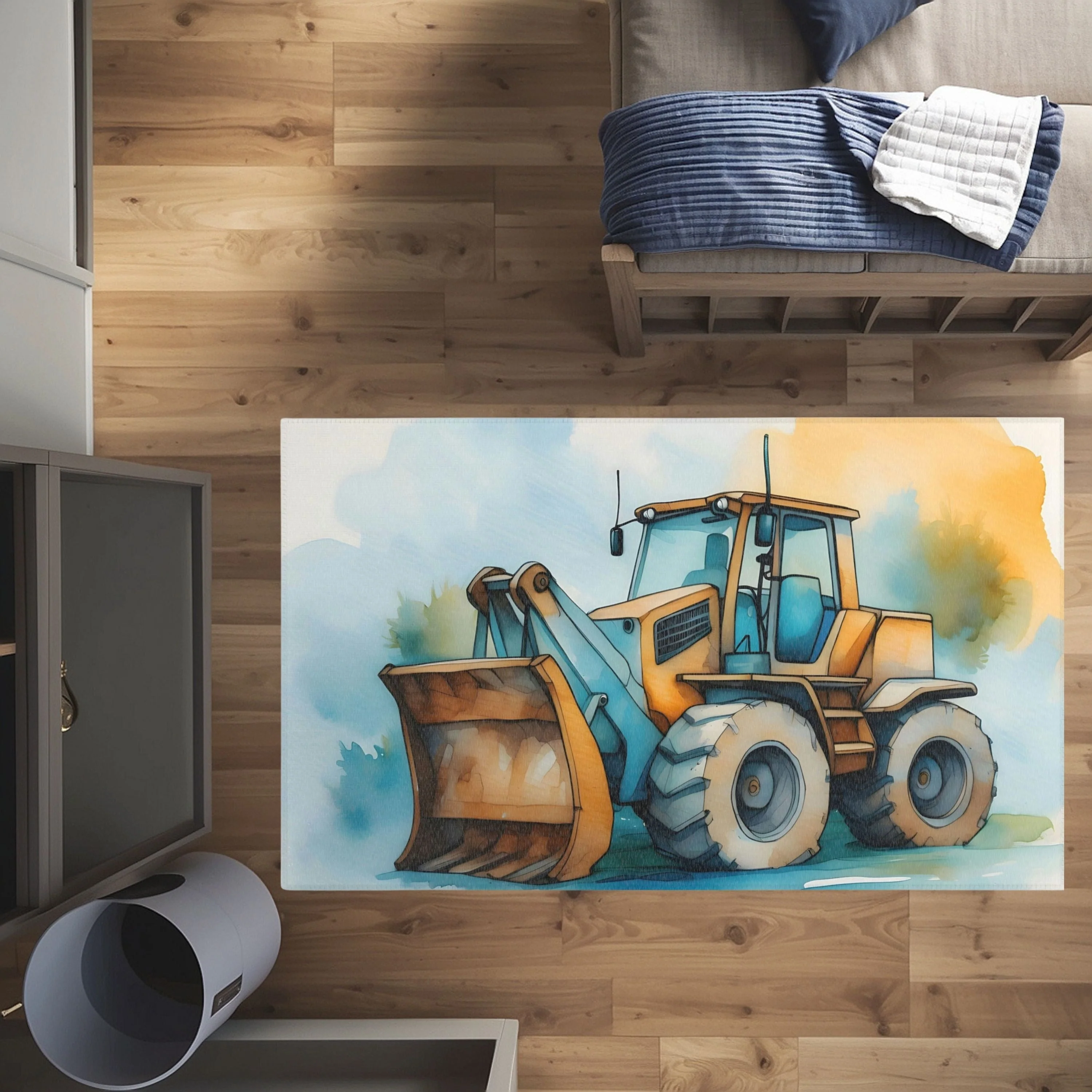 TeepeeJoy Construction Area Rug for Nursery and Kids Rooms - Sunny Side Tractor