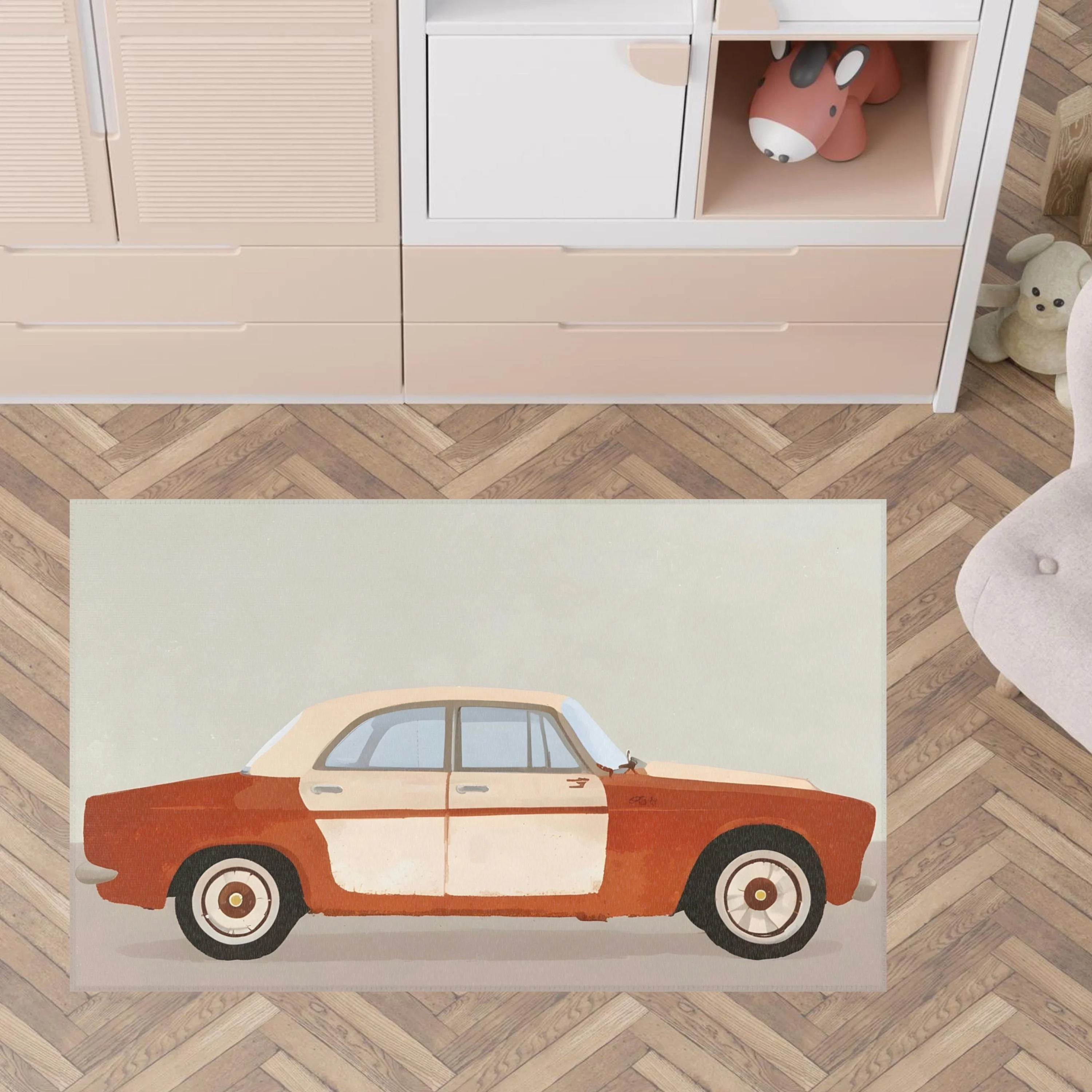 TeepeeJoy Car Rug for Nursery and Kids Rooms - Vintage Vroom