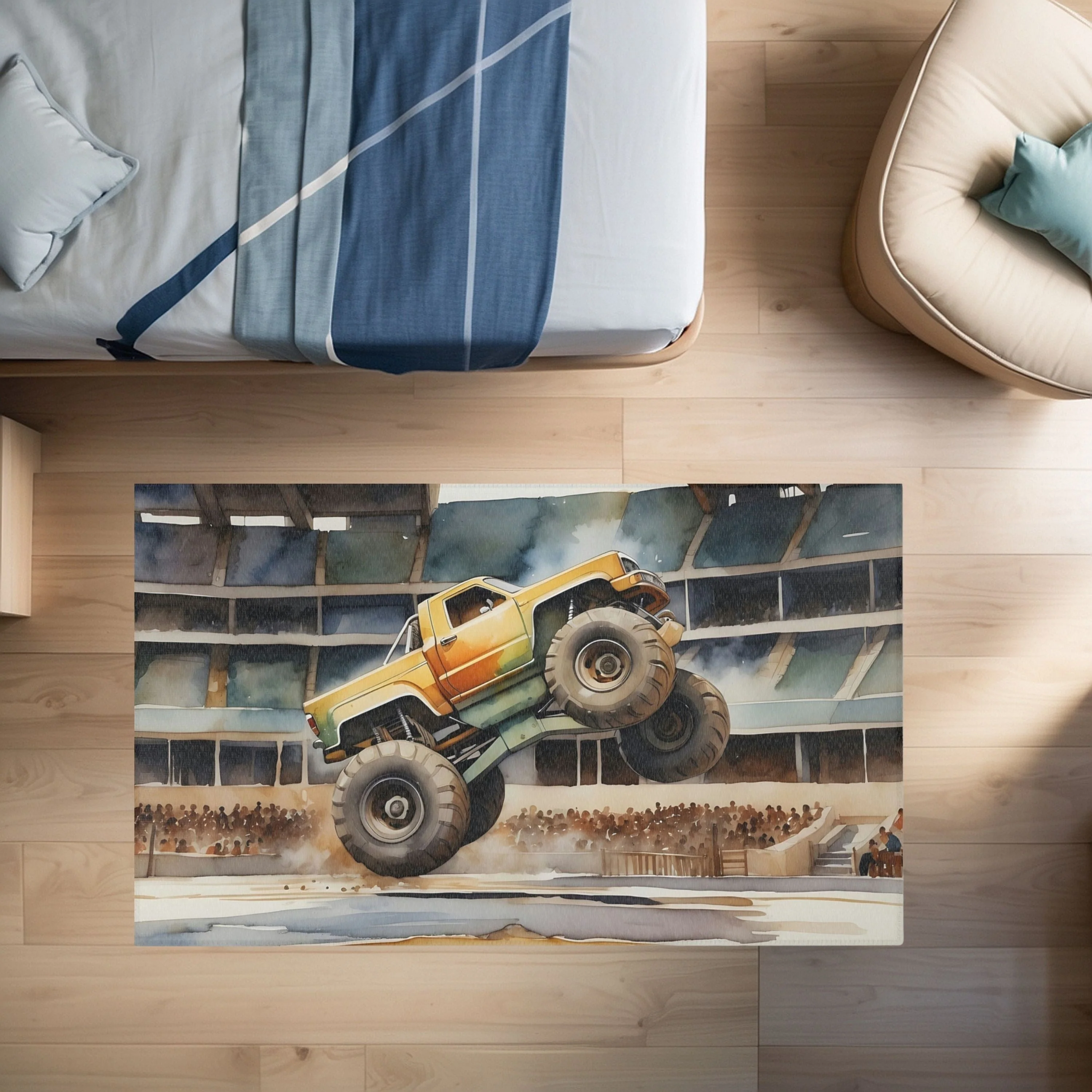 TeepeeJoy Monster Truck Area Rug for Nursery and Kids Rooms - Leapin' Legend