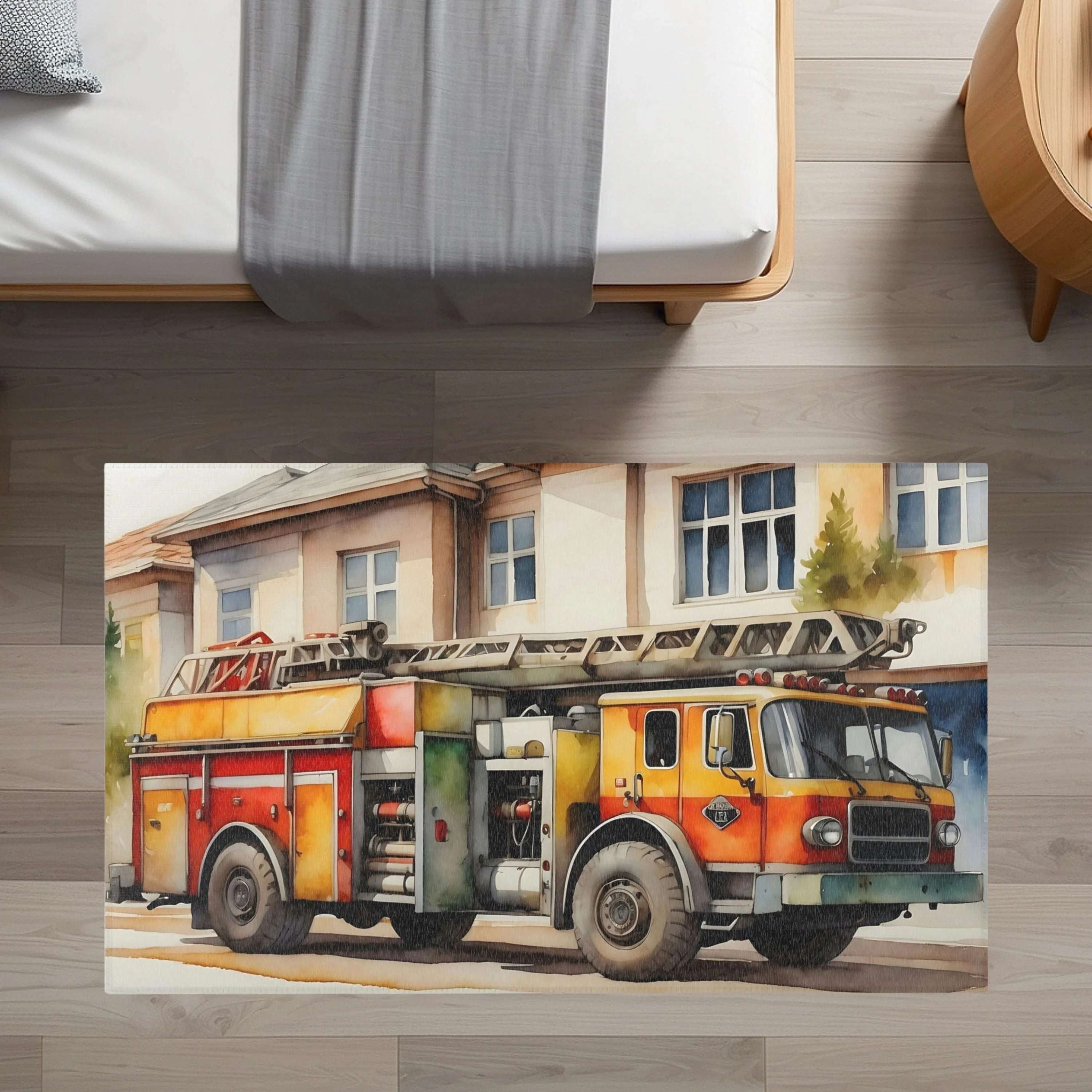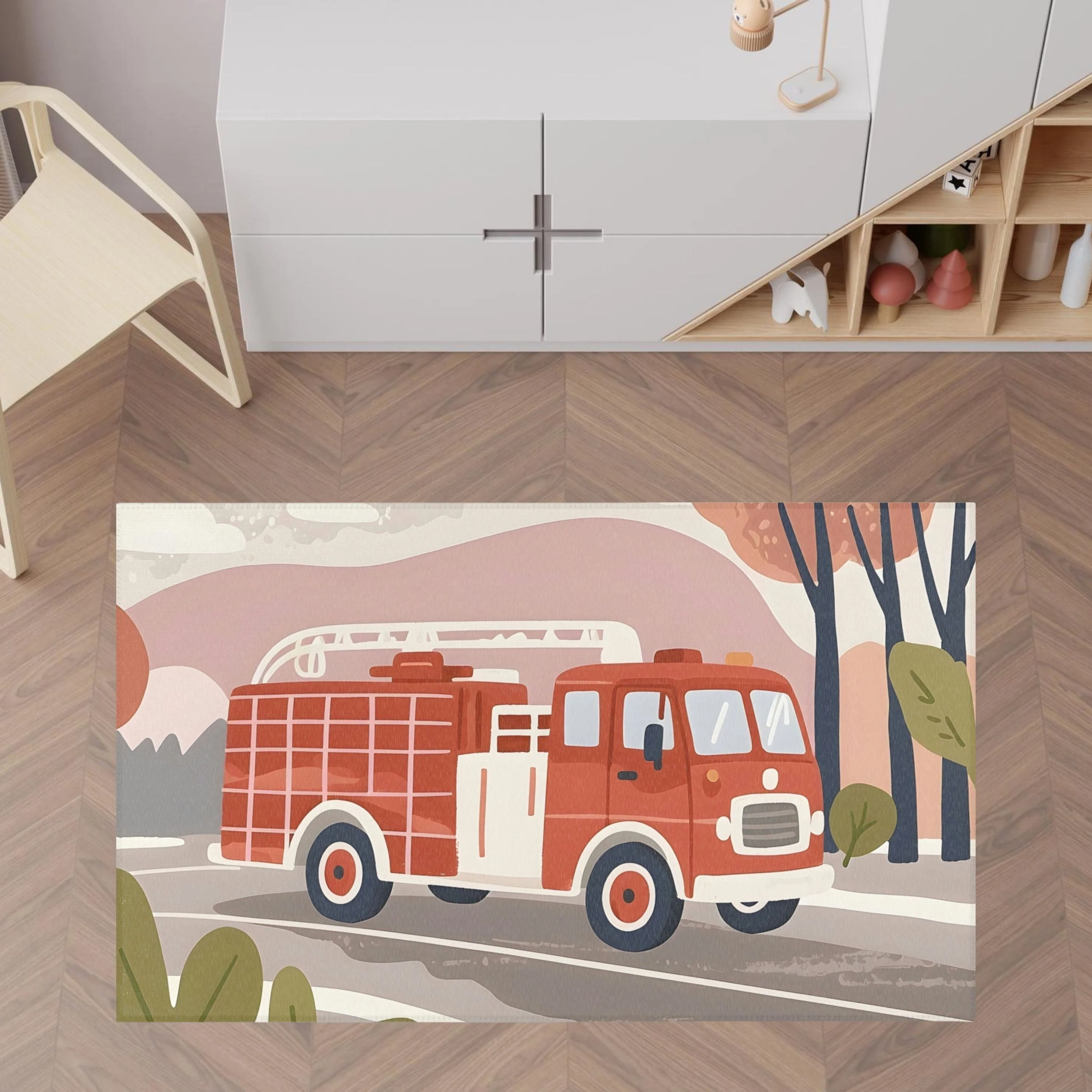 TeepeeJoy Nursery and Kids Firetruck Rug - Flame Fighter