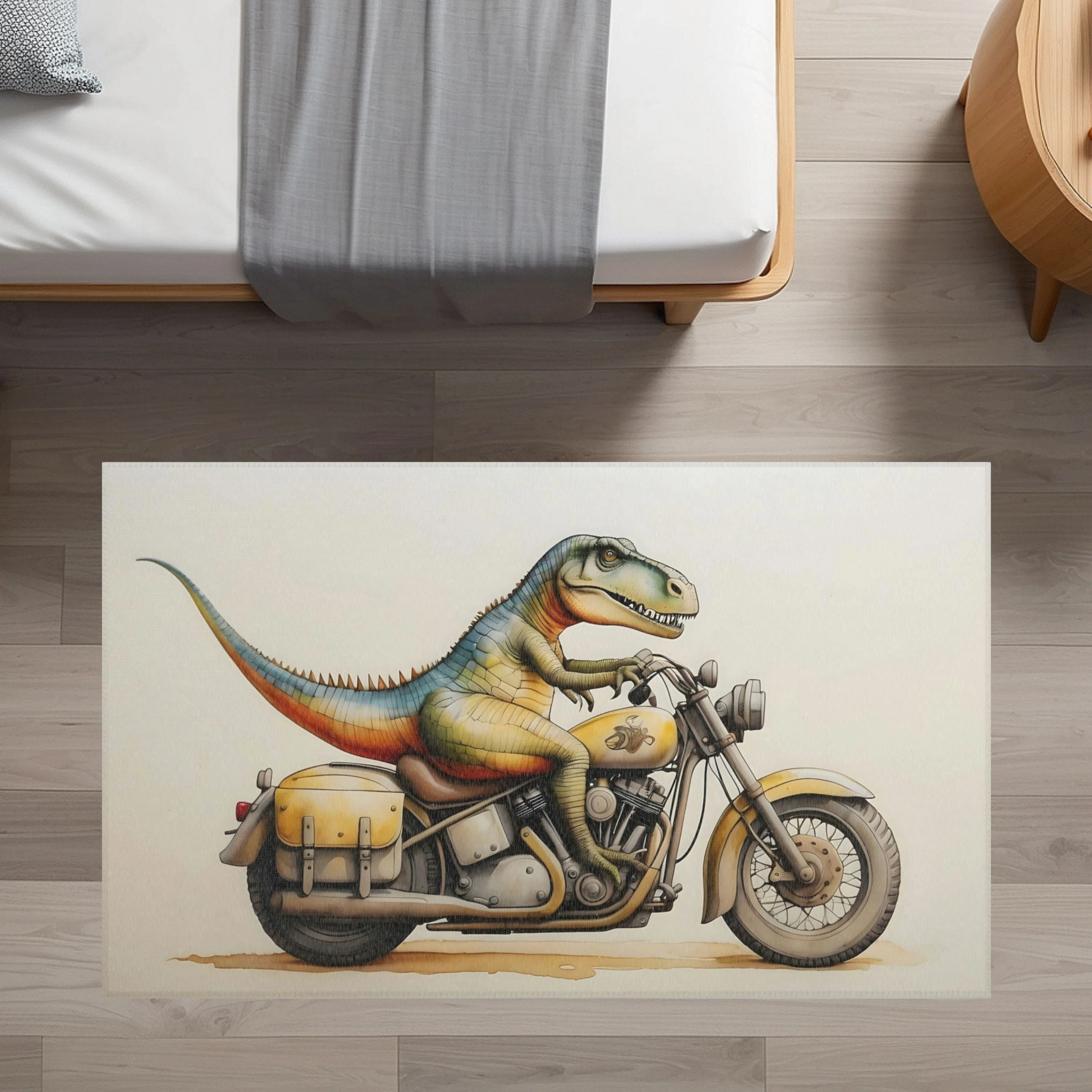 TeepeeJoy Dinosaur Rug for Kids and Nursery Rooms - Dino Moto Dash