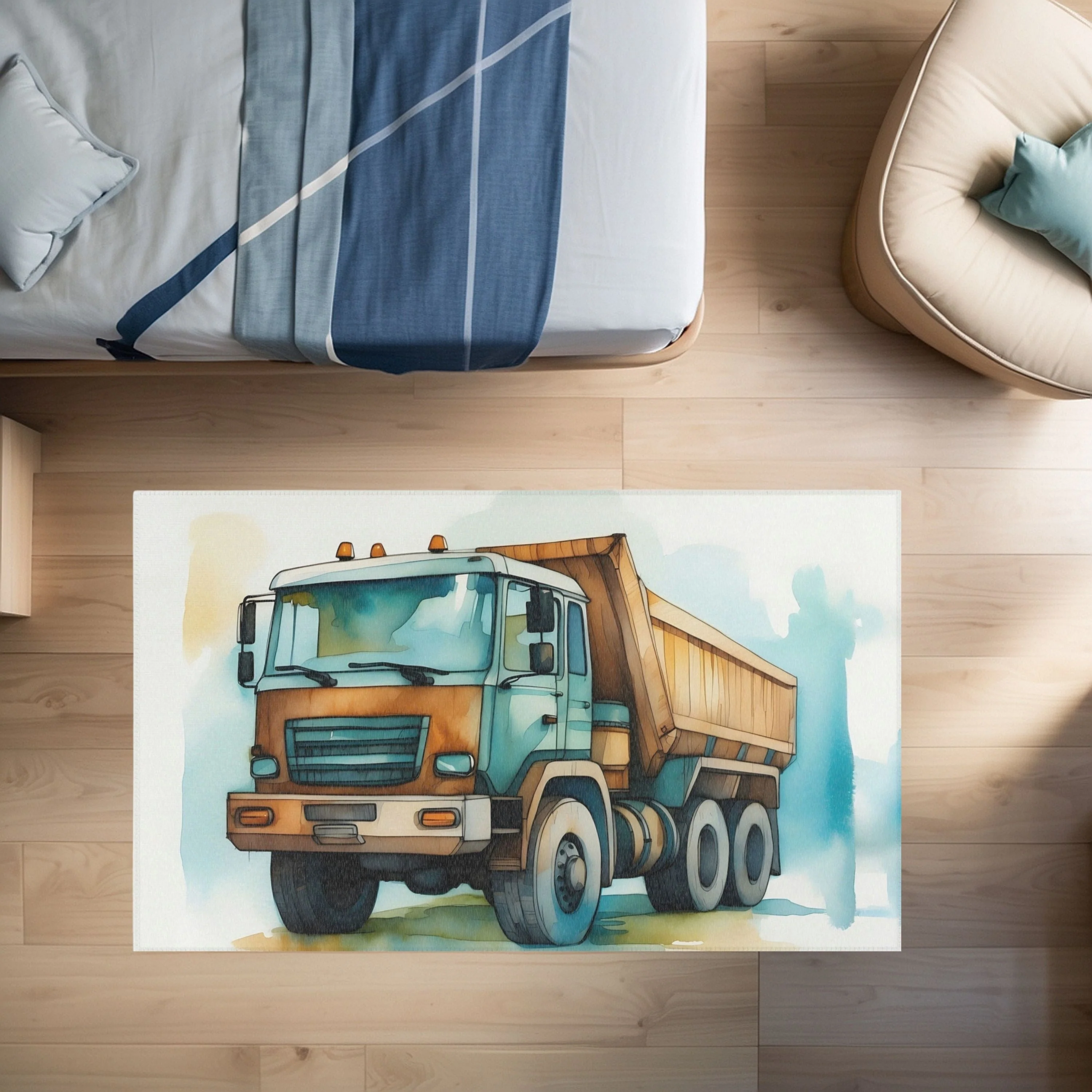 TeepeeJoy Construction Area Rug for Kids and Nursery Rooms - Dump Truck Delight