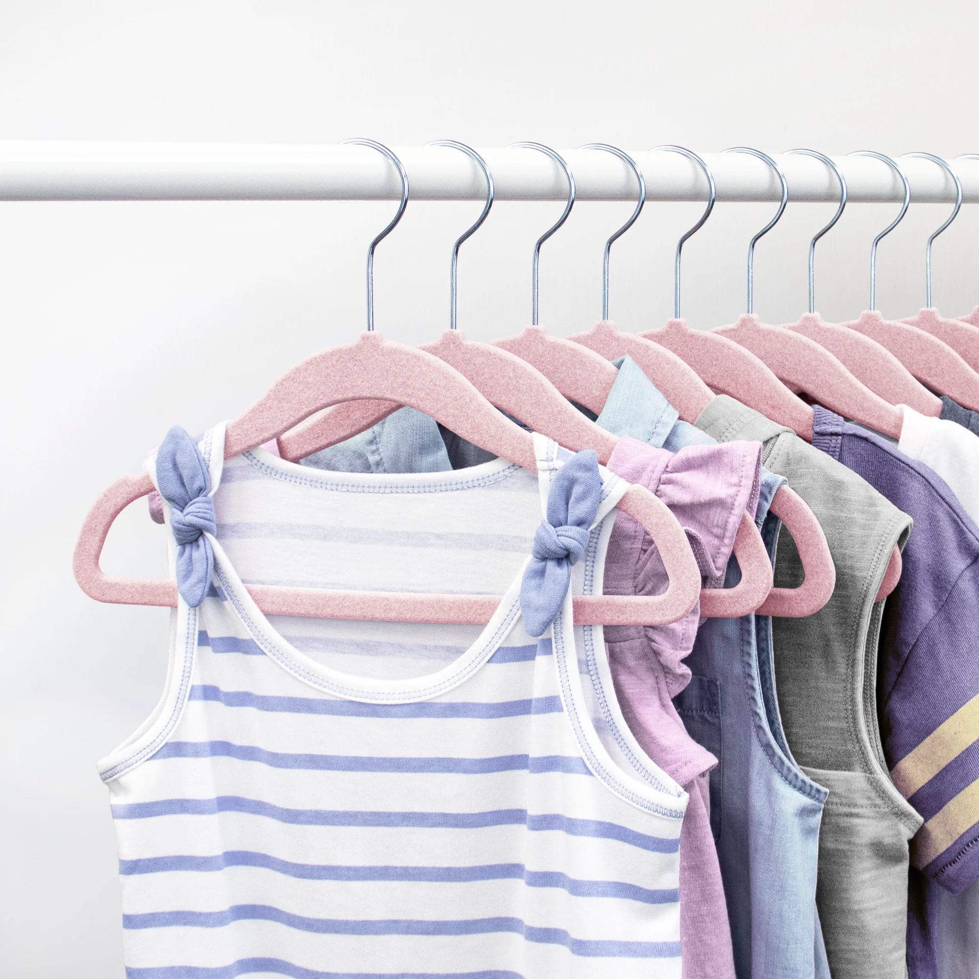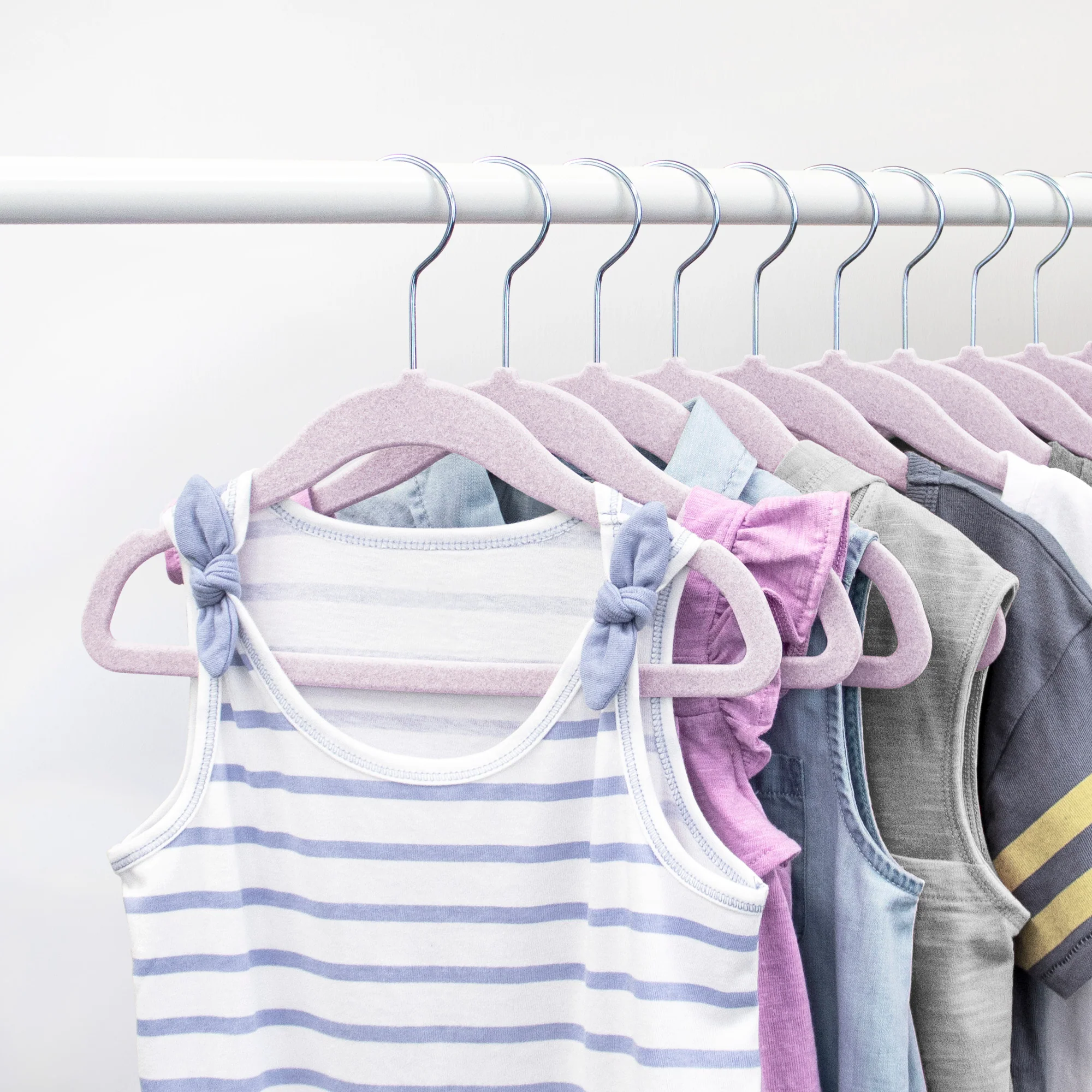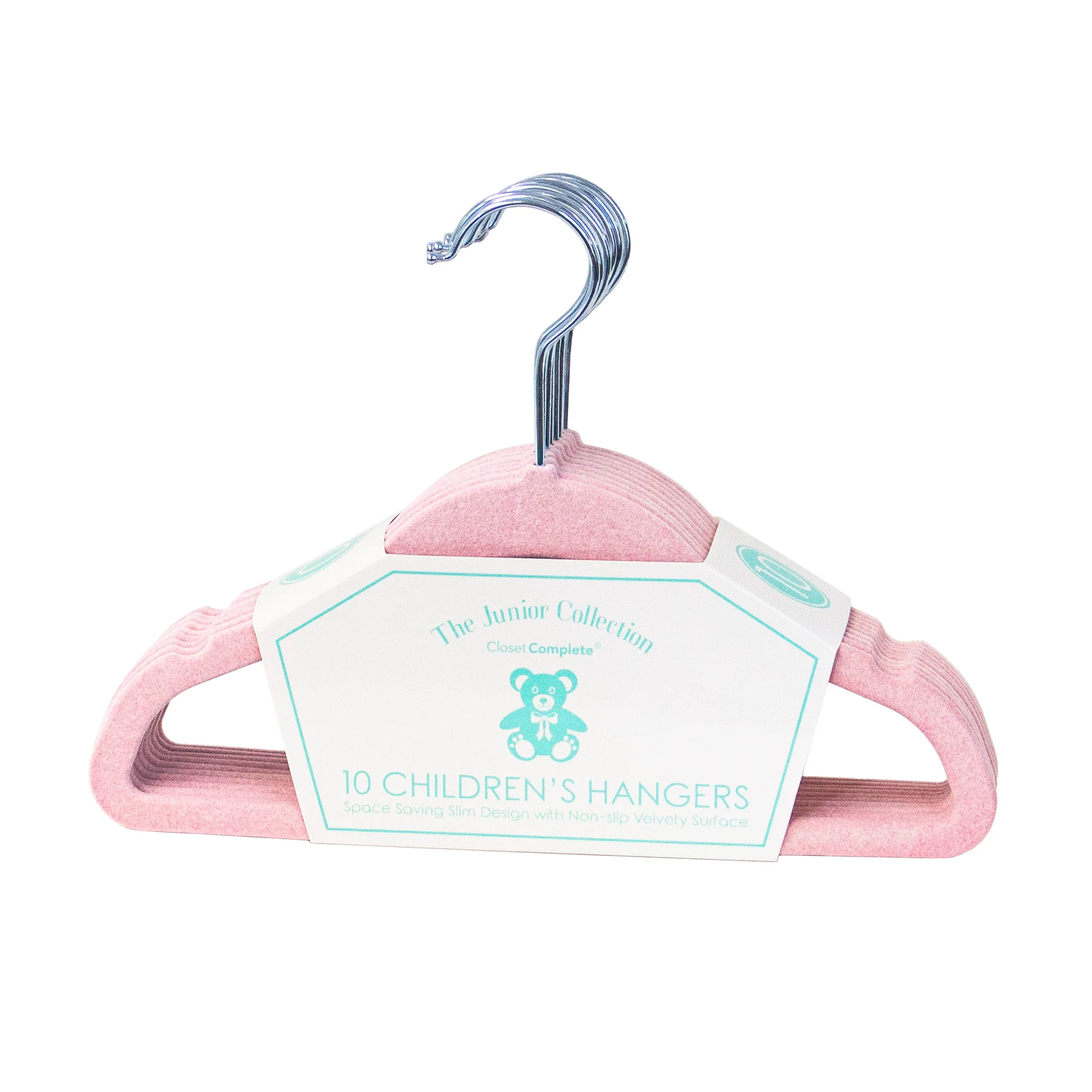 These Closet Complete Flocked Hangers for kids are perfectly sized for tiny garments. Featuring a non-slip coating to prevent clothes from slipping off and a sleek design for maximizing space, these are a necessary addition to any wardrobe.
