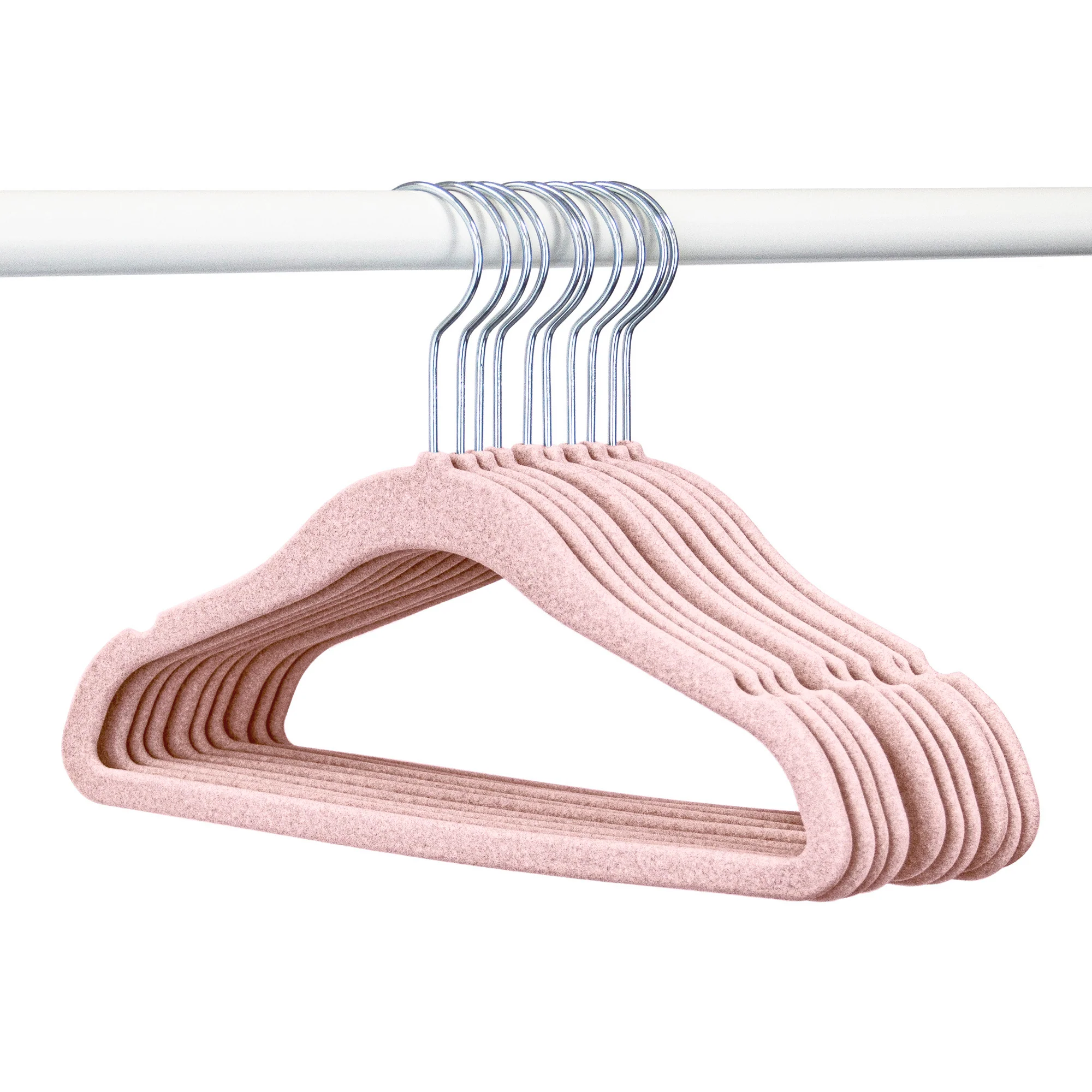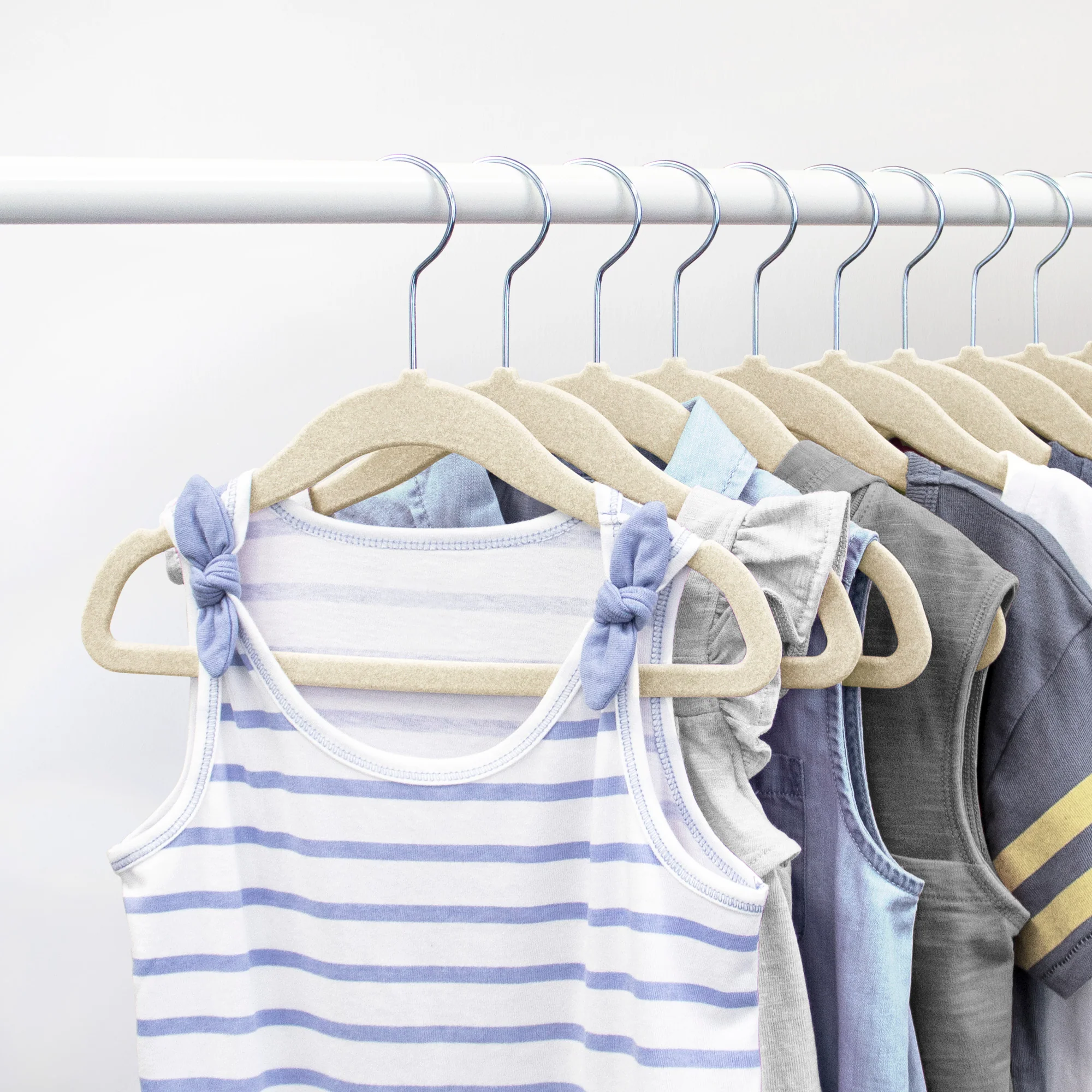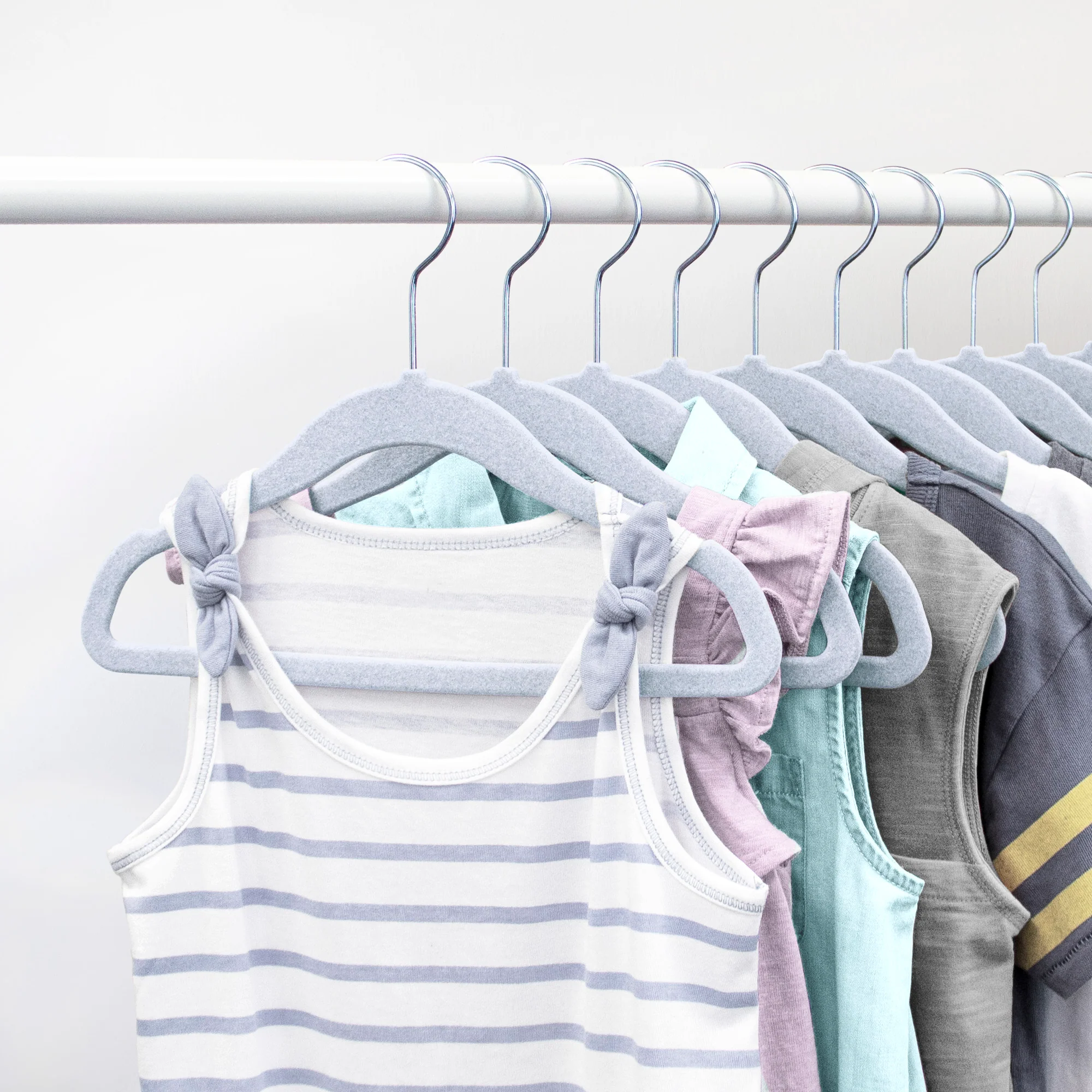 These Closet Complete Flocked Hangers for kids are perfectly sized for tiny garments. Featuring a non-slip coating to prevent clothes from slipping off and a sleek design for maximizing space, these are a necessary addition to any wardrobe.