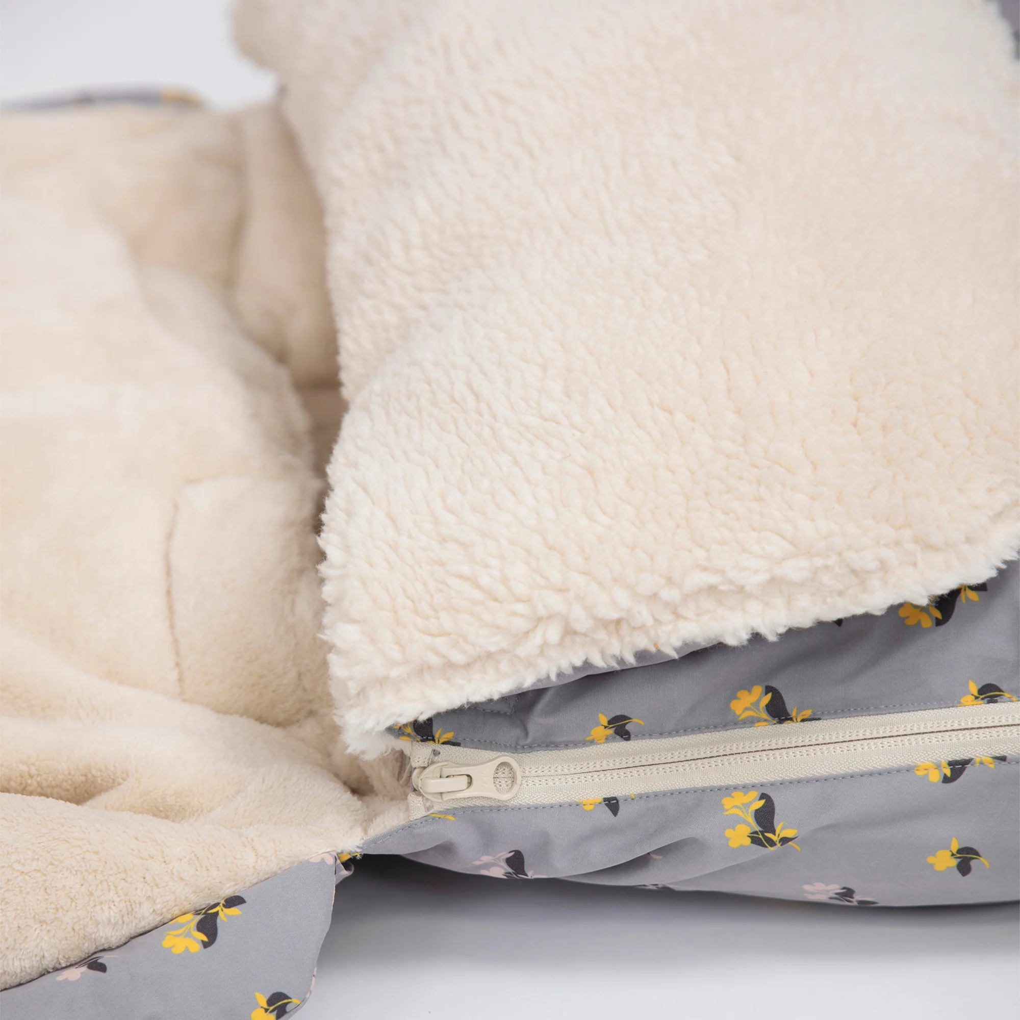 - Sherpa cover detaches to double as a standalone blanket.