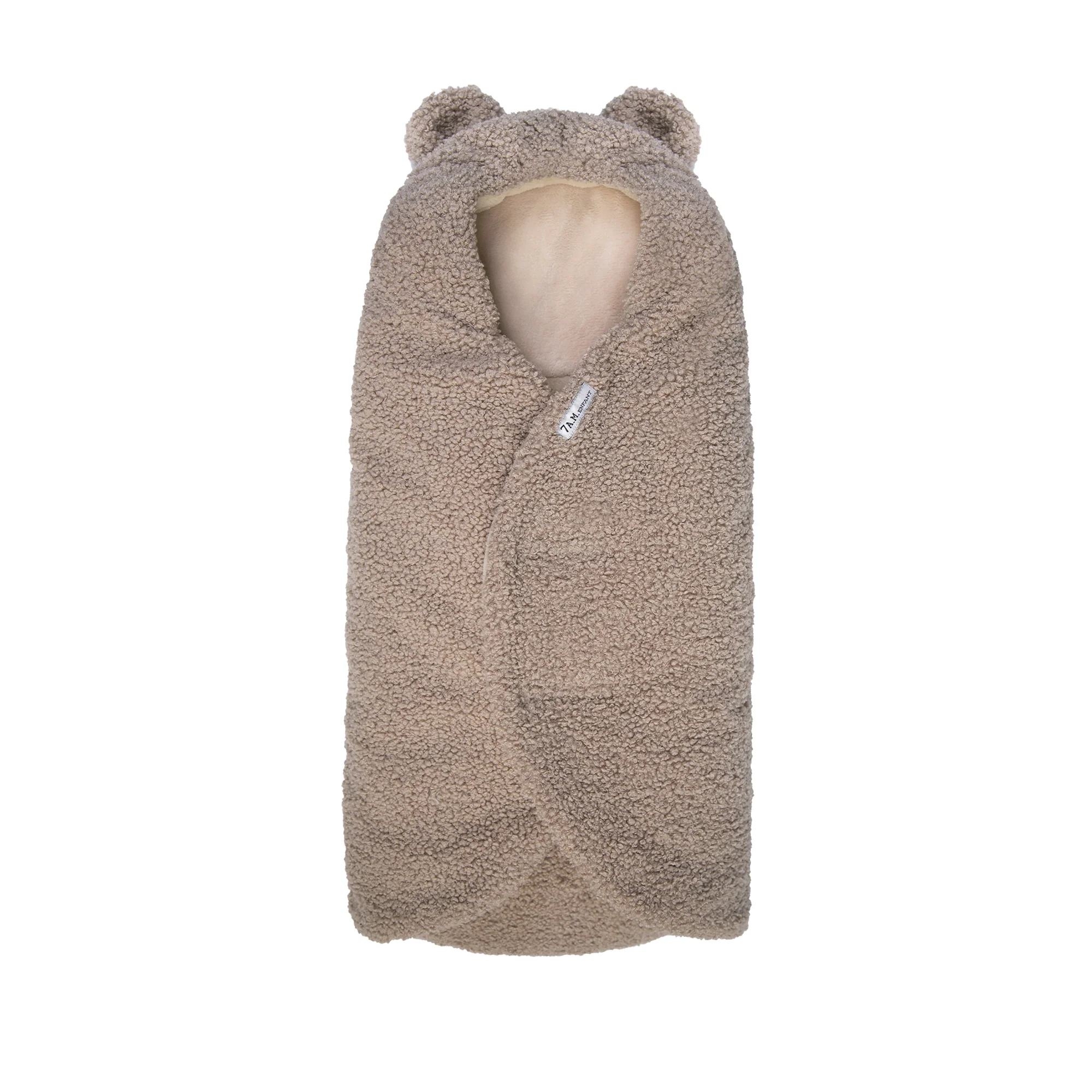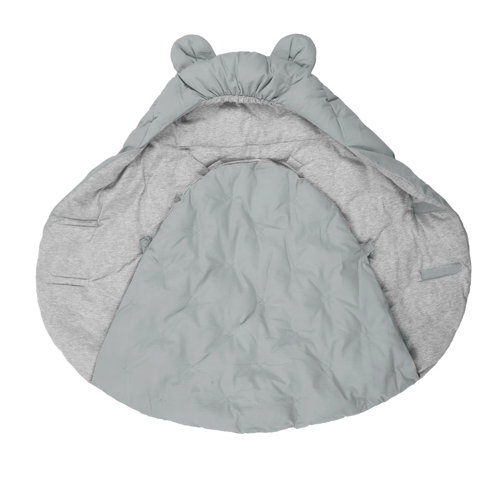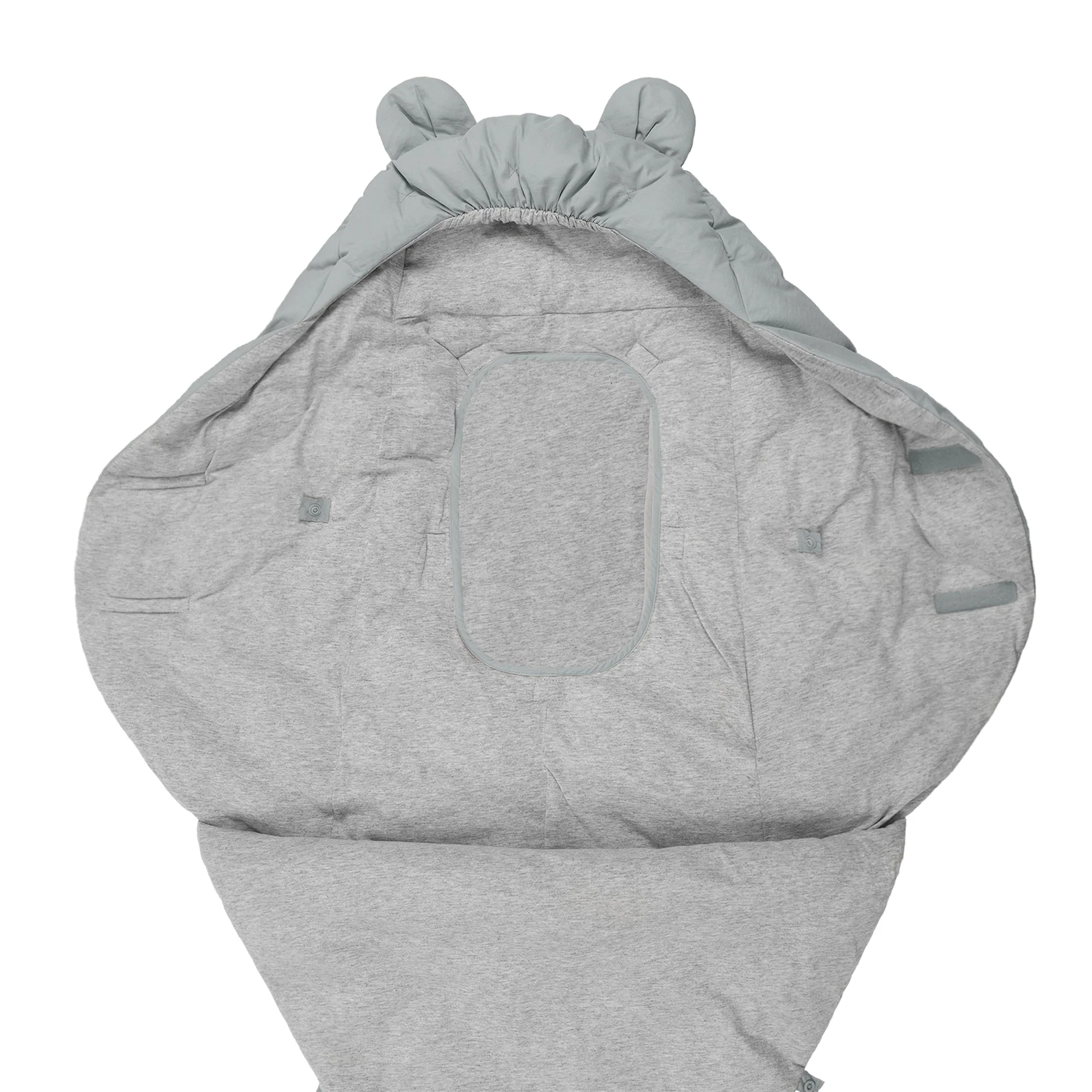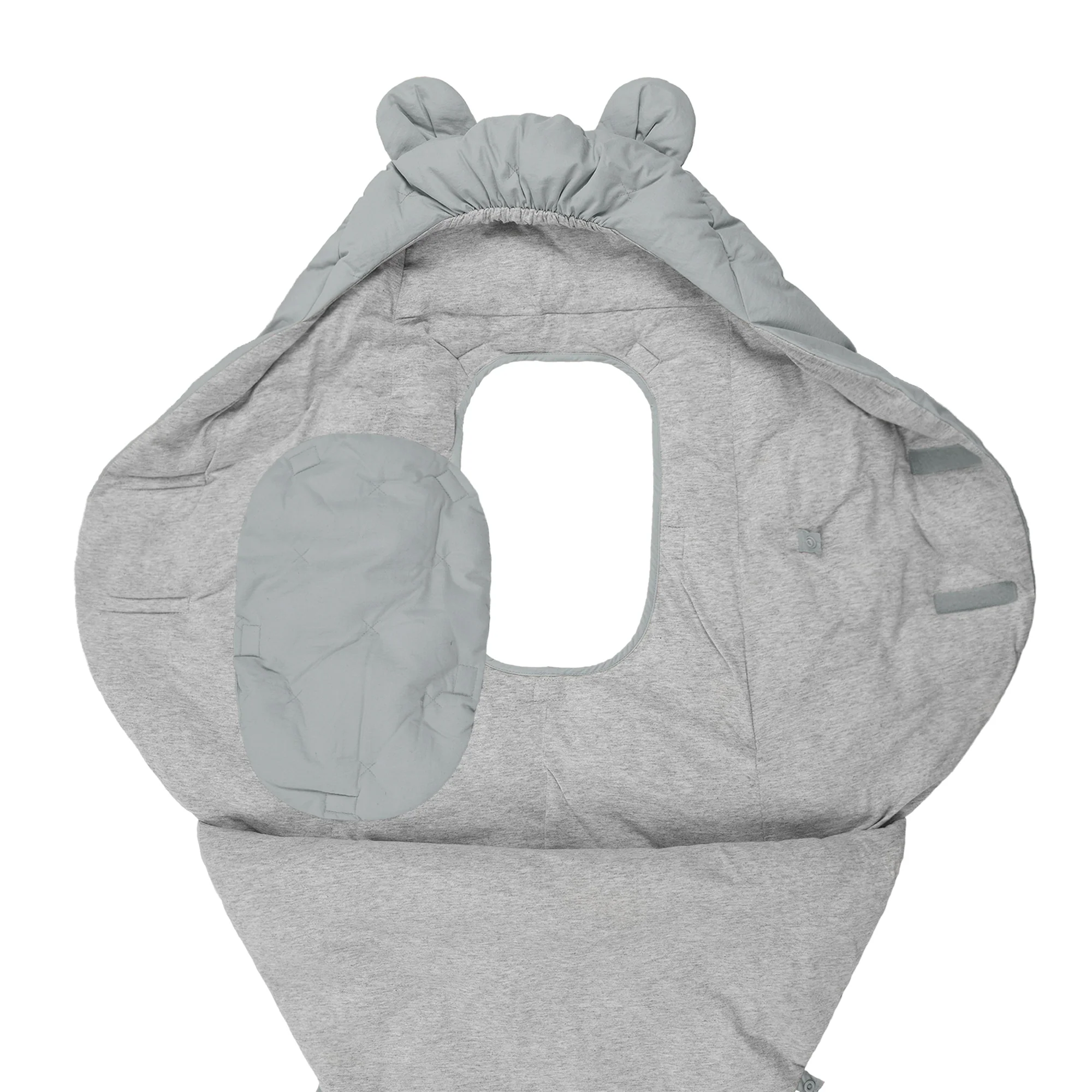 Like a nest, the 7AM Enfant Nido Bebe Infant Wrap is designed as an easy, safe, and cozy sweatshirt-like wrap for baby's first 6 months. The 3 folding flaps and uni-leg muff replace the need for over-bundling.