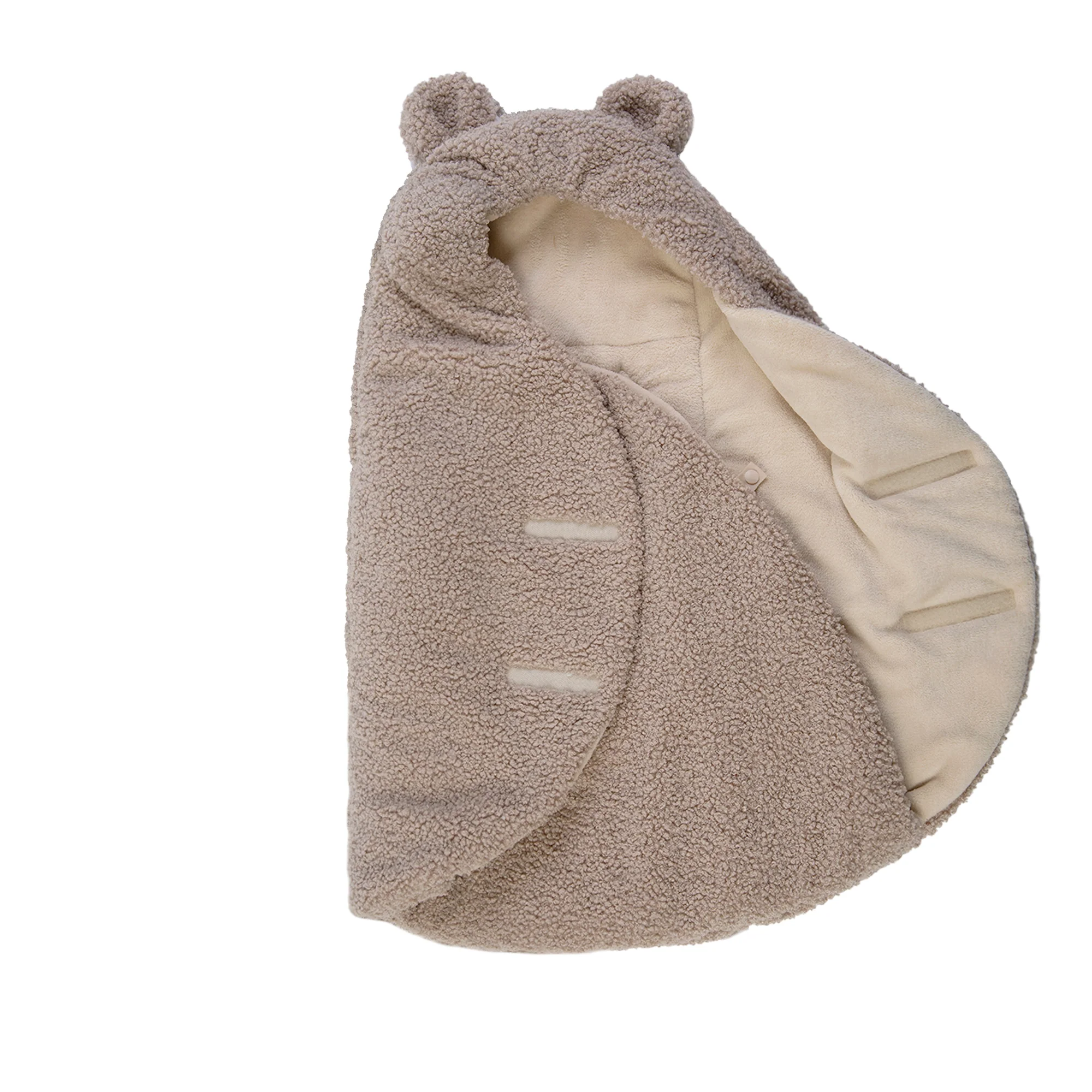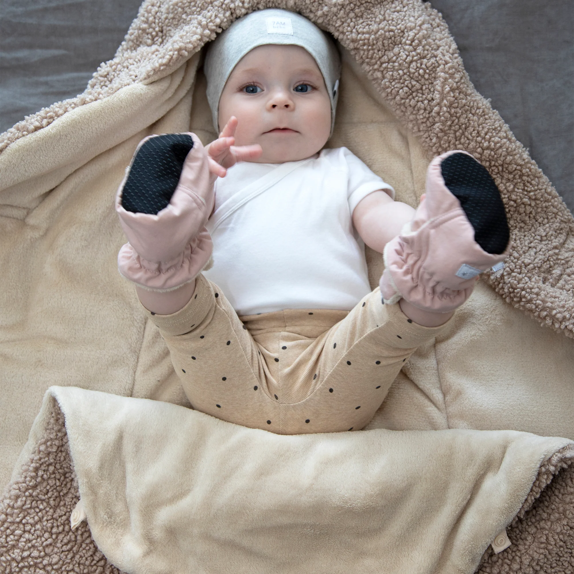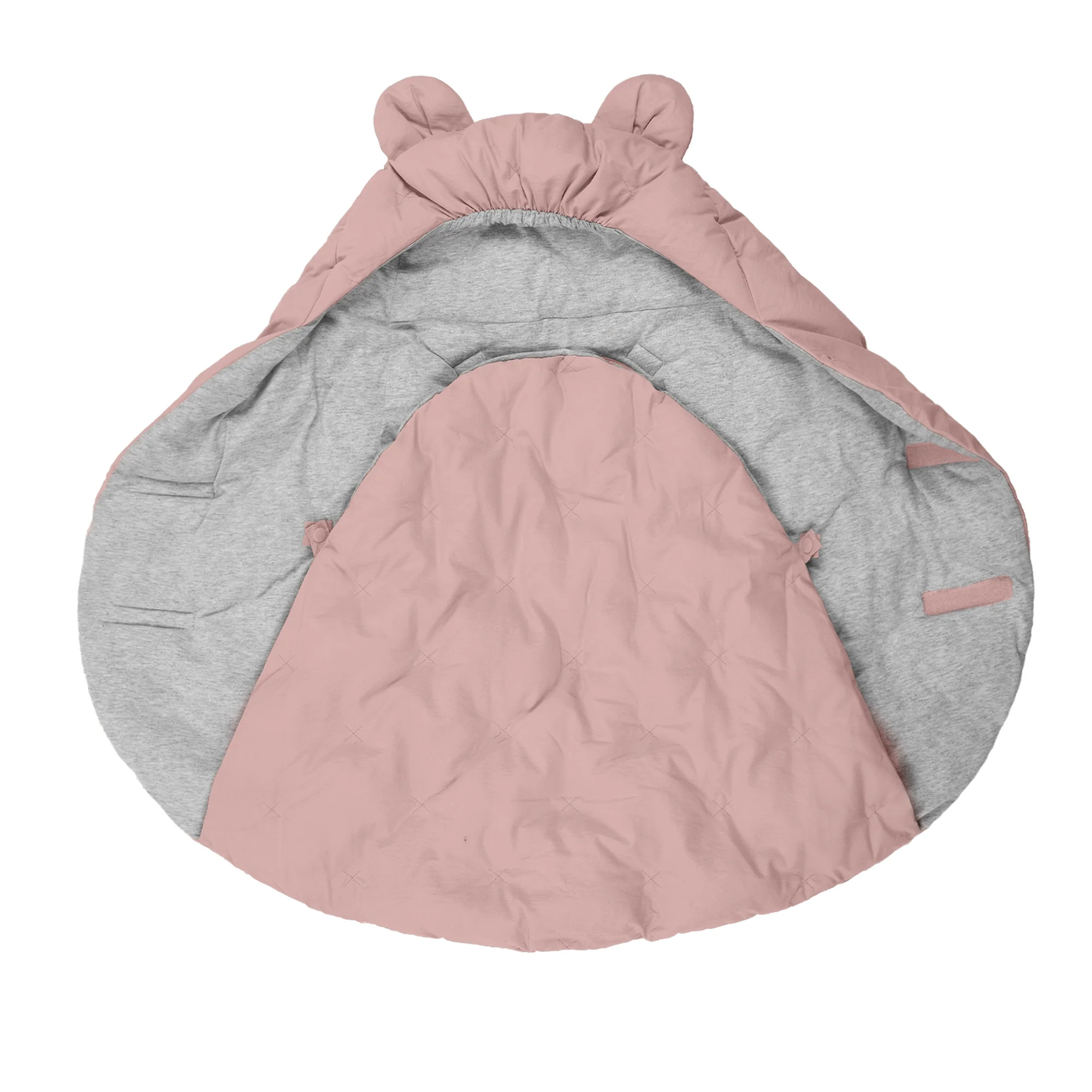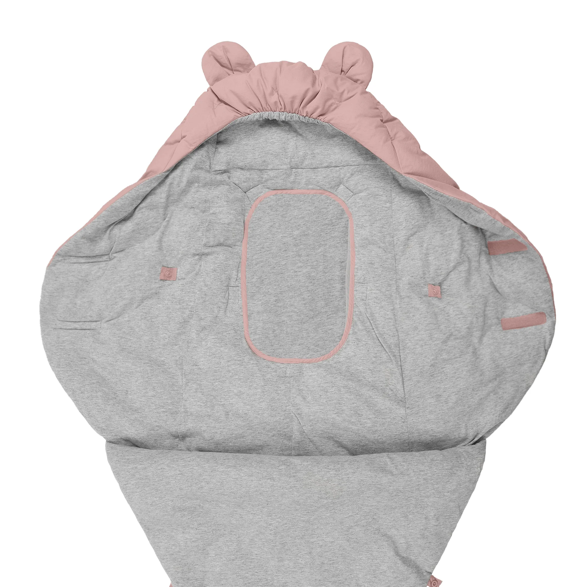 Like a nest, the 7AM Enfant Nido Bebe Infant Wrap is designed as an easy, safe, and cozy sweatshirt-like wrap for baby's first 6 months. The 3 folding flaps and uni-leg muff replace the need for over-bundling.