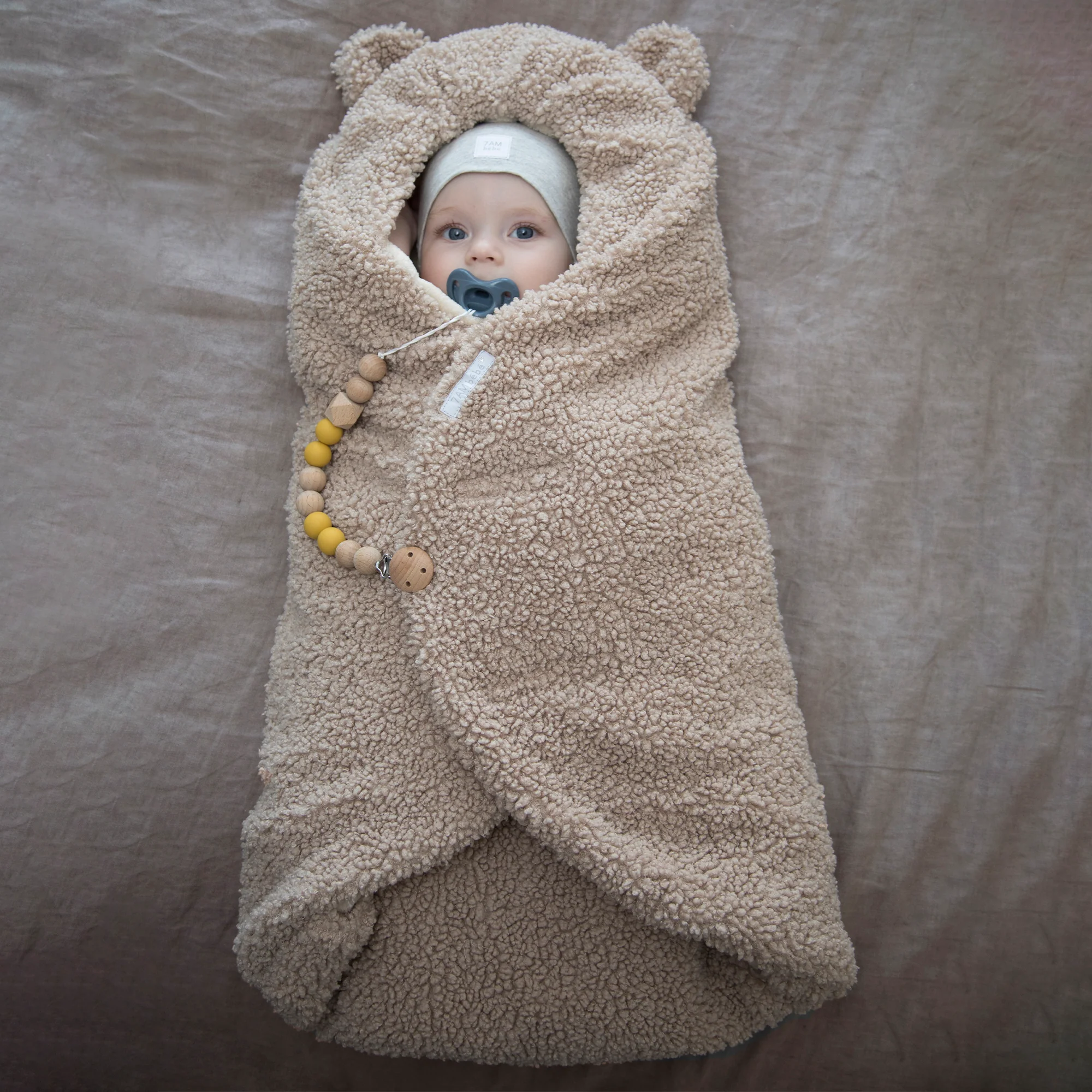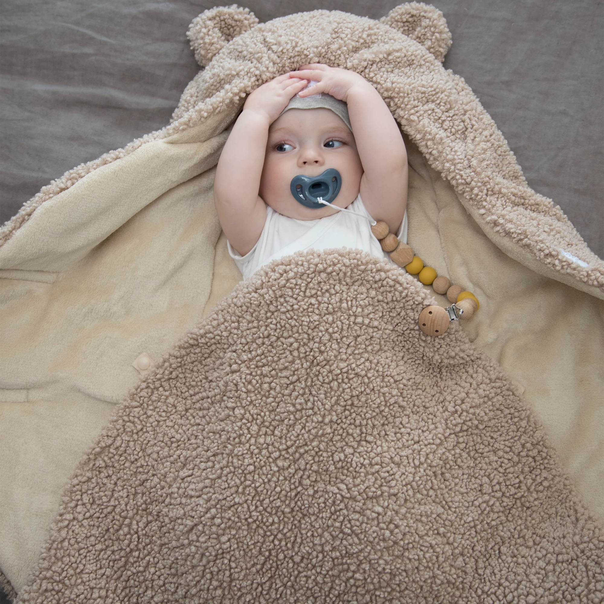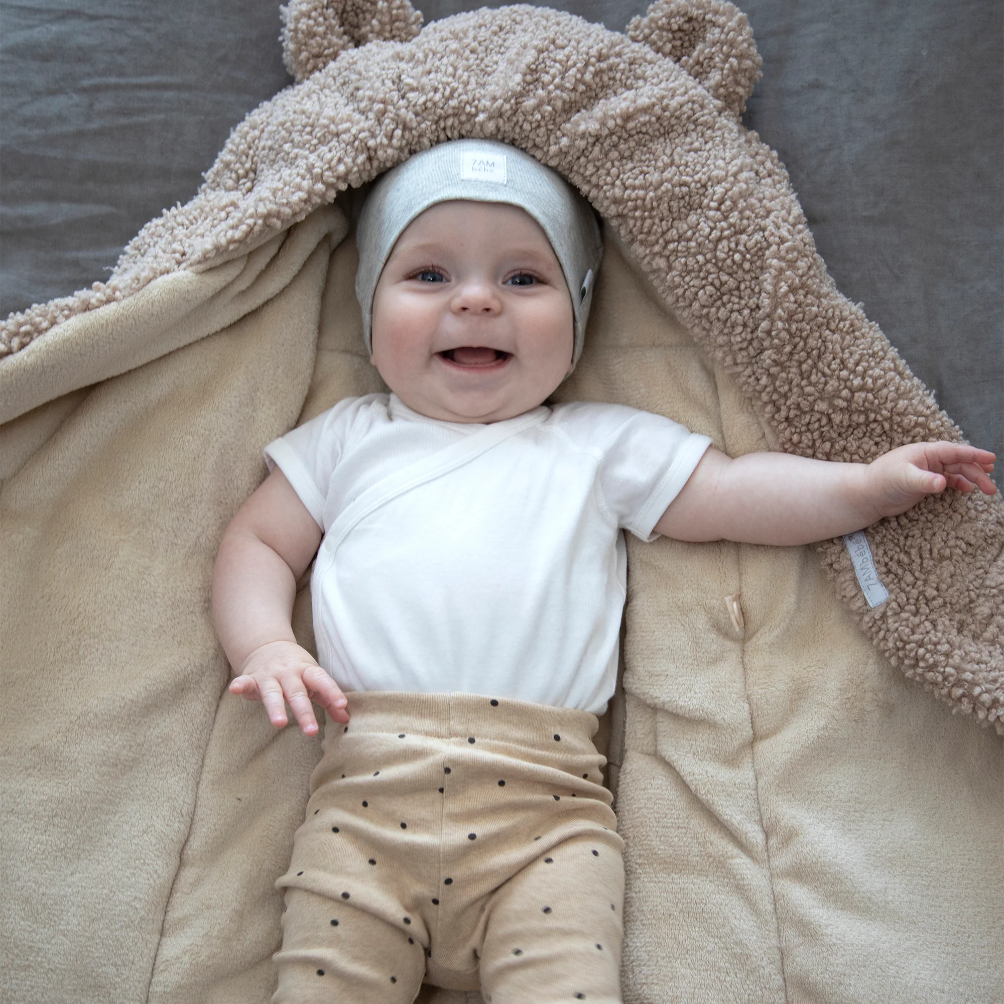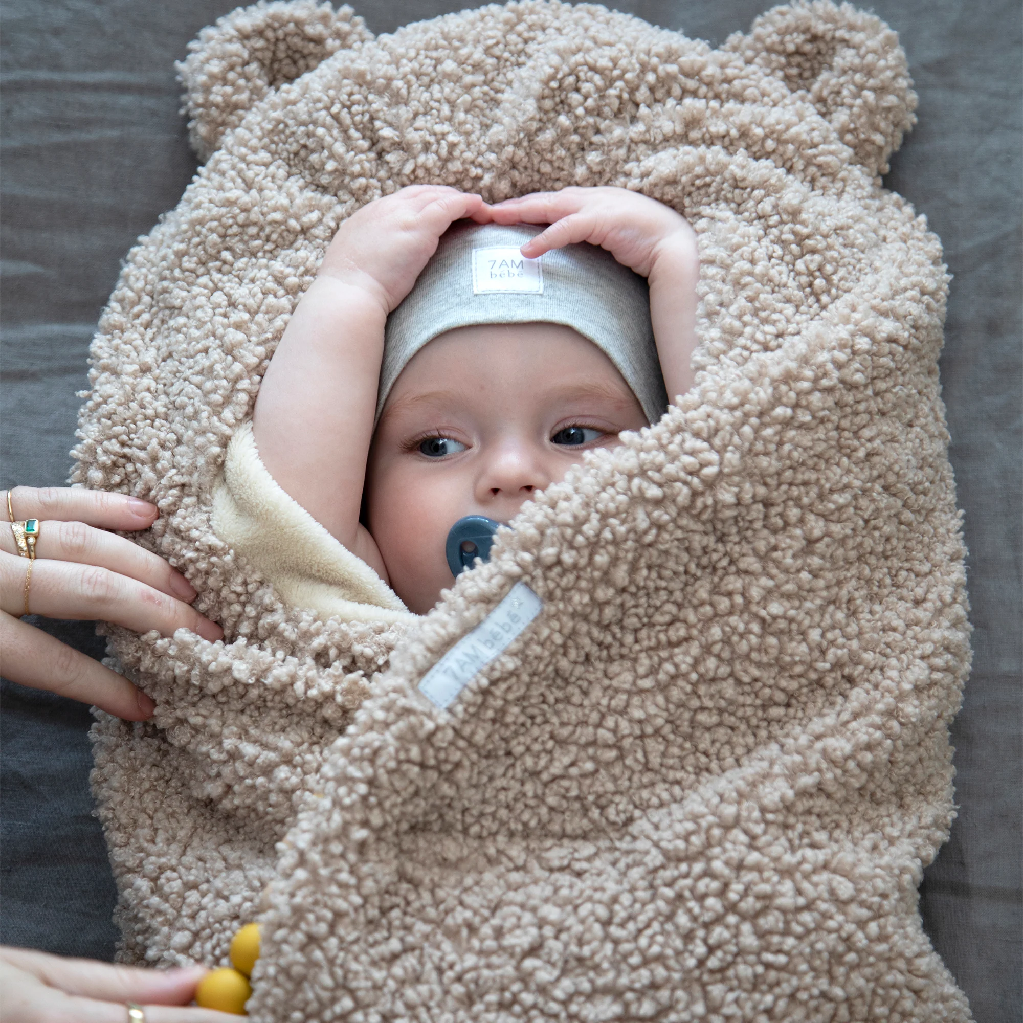Like a nest, the 7AM Enfant Nido Bebe Infant Wrap is designed as an easy, safe, and cozy sweatshirt-like wrap for baby's first 6 months. The 3 folding flaps and uni-leg muff replace the need for over-bundling.