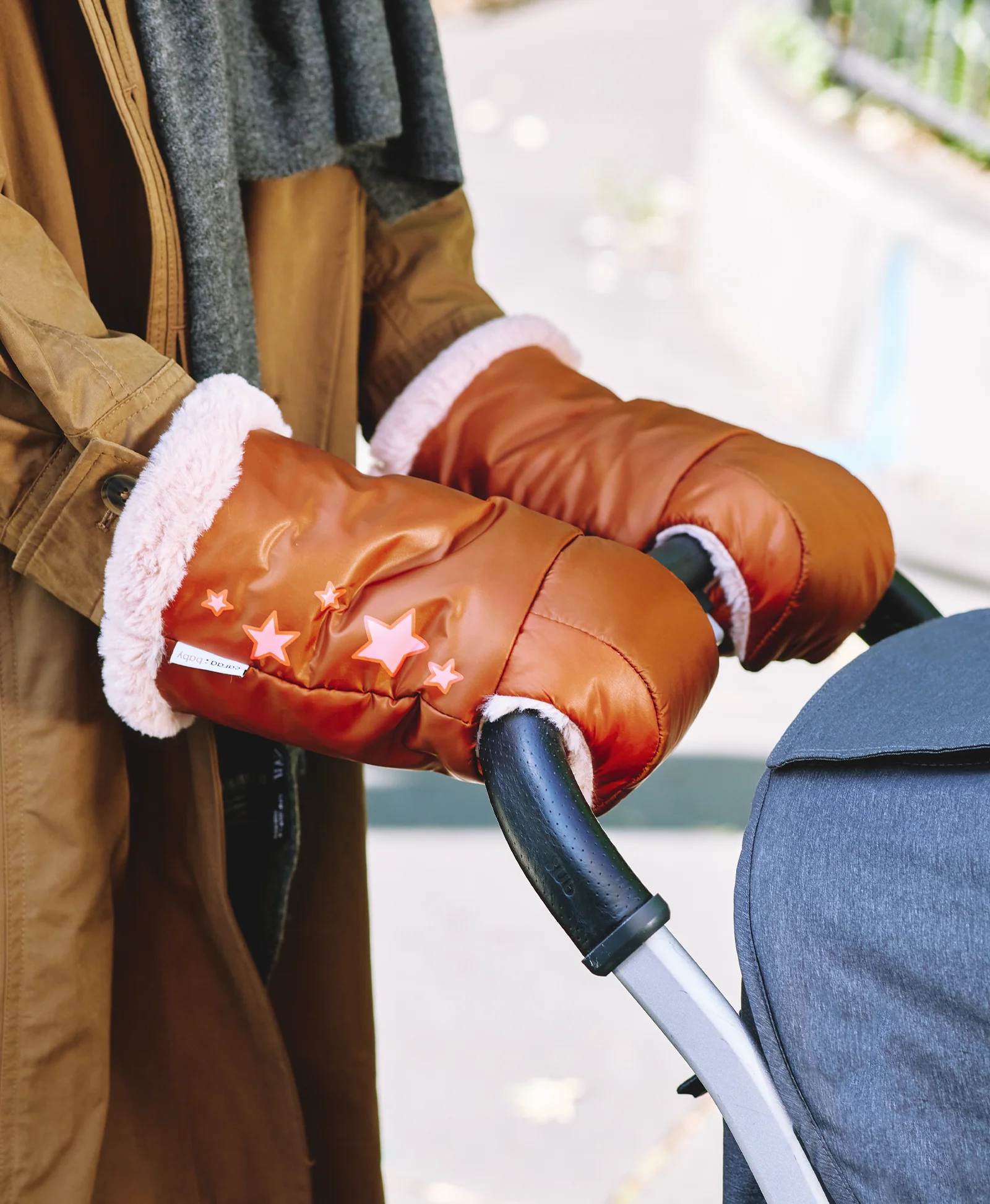 The Baby Stroller Gloves are ultra-light and water-repellent with adjustable snaps�clip and cozy sherpa lining, providing extra warmth for cold weather. Pair them with any Baby items or as a standalone.�Vegan friendly and made for everyone.