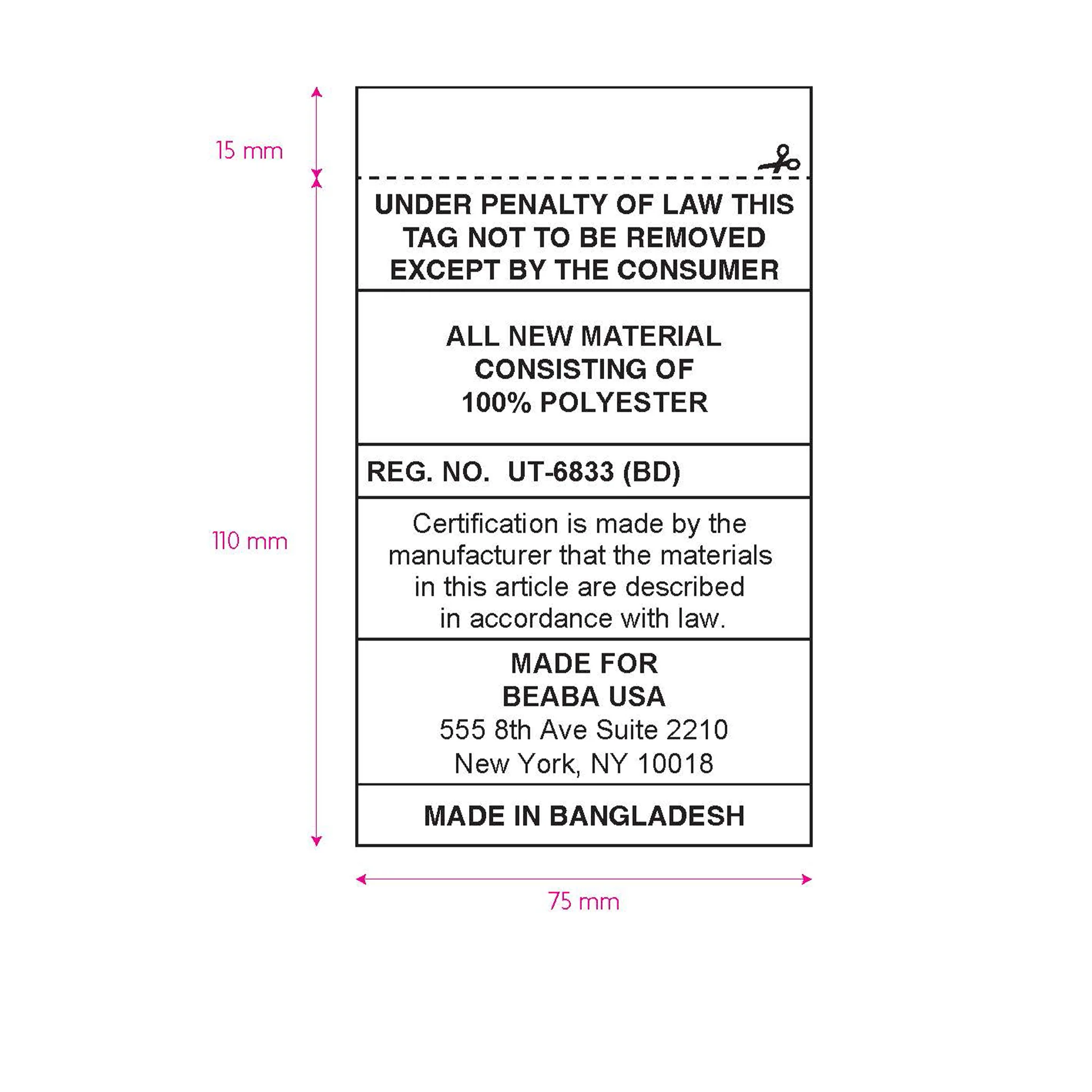 - Tab with press stud to fasten the flap in the open position