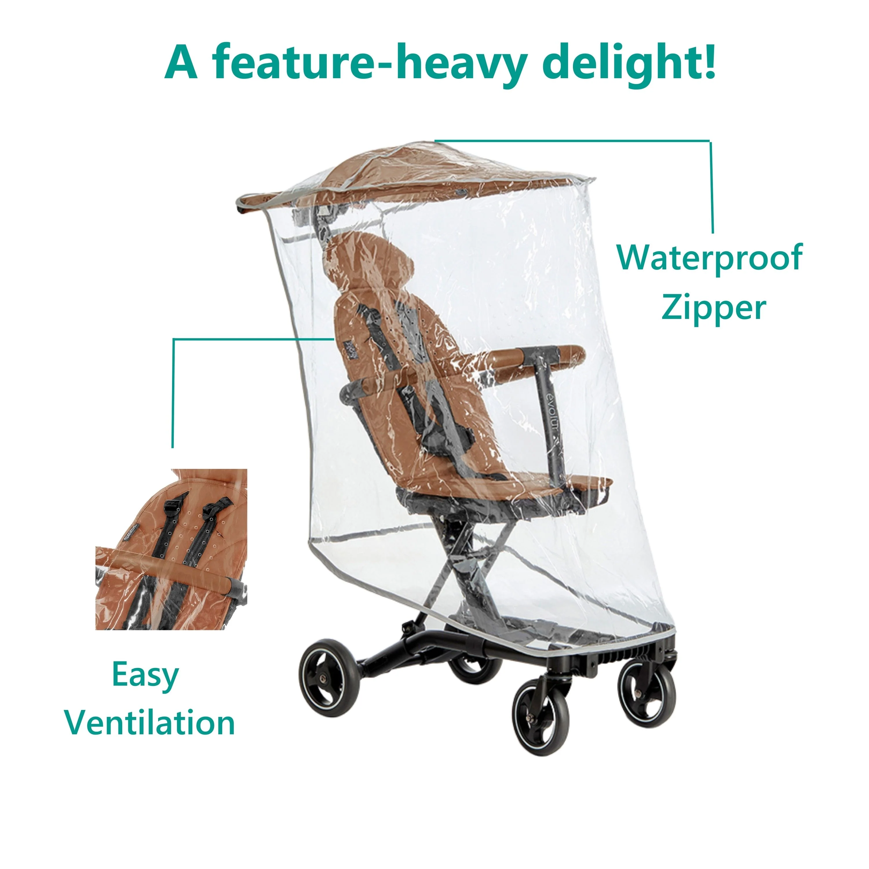 - Easily attach the rain cover to an Evolur Cruise Rider Stroller with Canopy and go on a stroll with your little one anytime, anywhere.