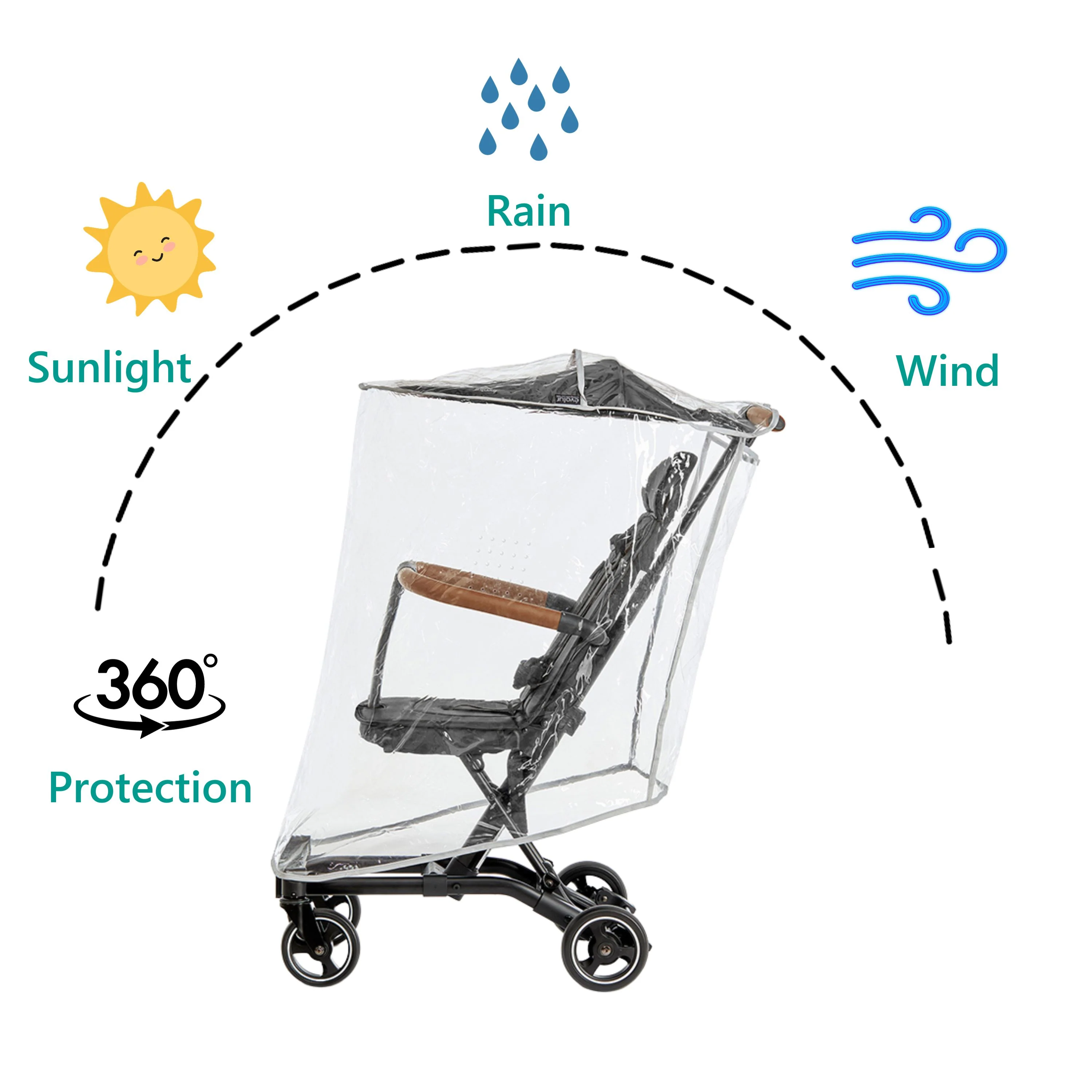 - Protect your little one from rain, snow and any unfavorable weather conditions with the Evolur Cruise Rider Stroller Rain Cover. This transparent rain cover allows you to keep an eye on your child.