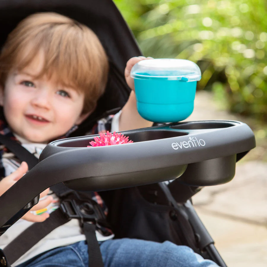 - SNACK & GO: The Evenflo庐 Stroller Child Snack Tray includes a bonus removable snack cup that can be used with or without the tray for convenient on-the-go snacking