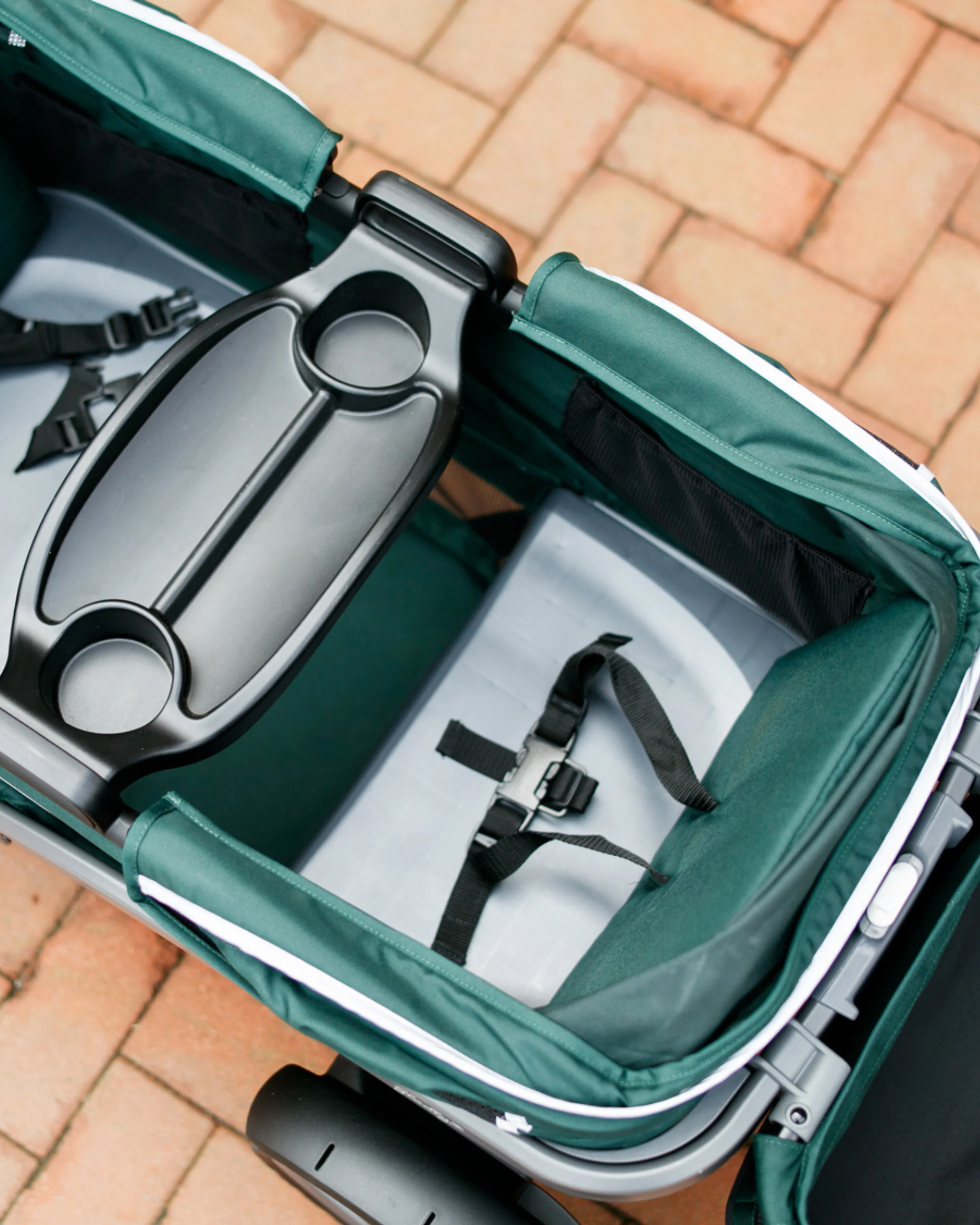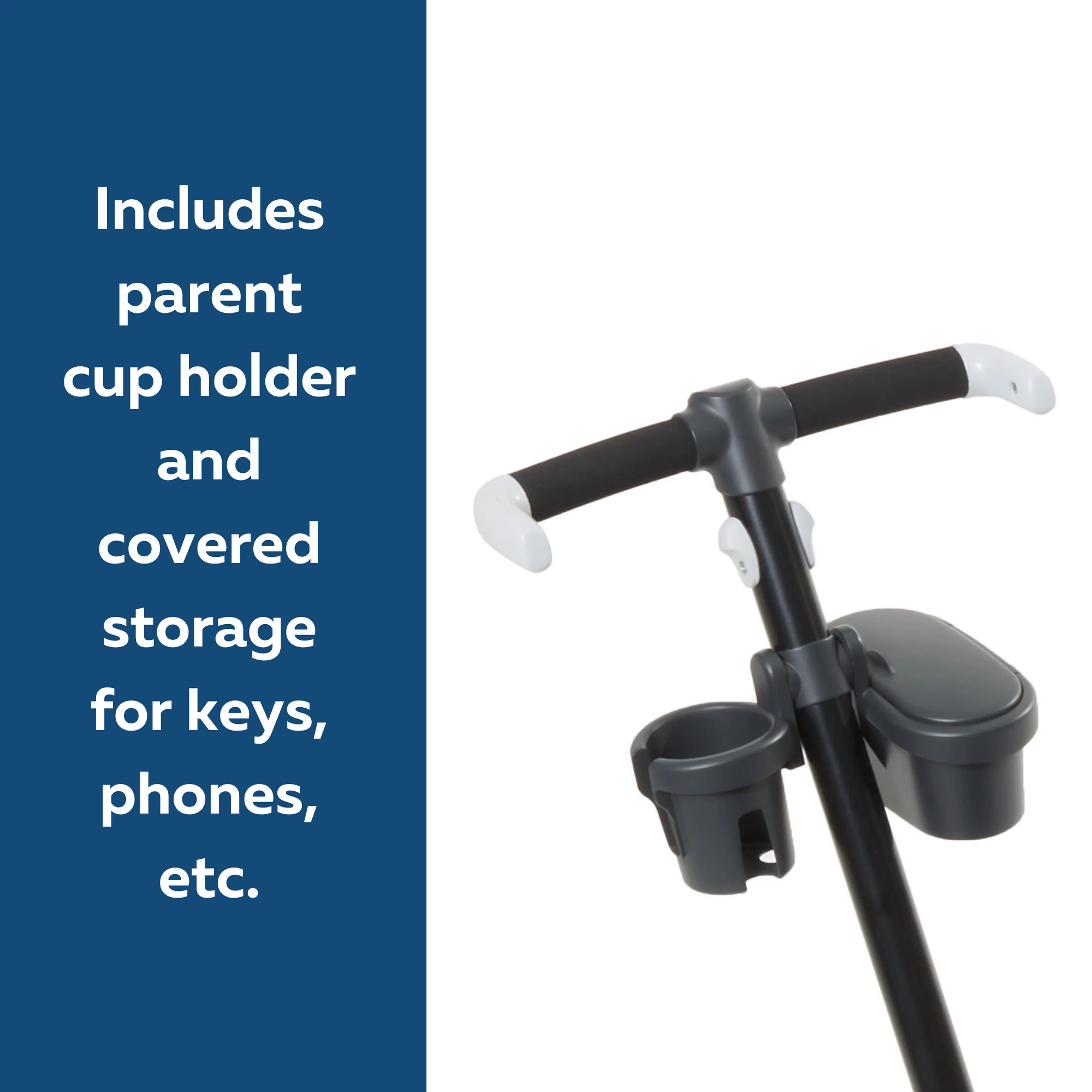 - Rugged all-terrain wheels & suspension for a smooth push & comfy ride