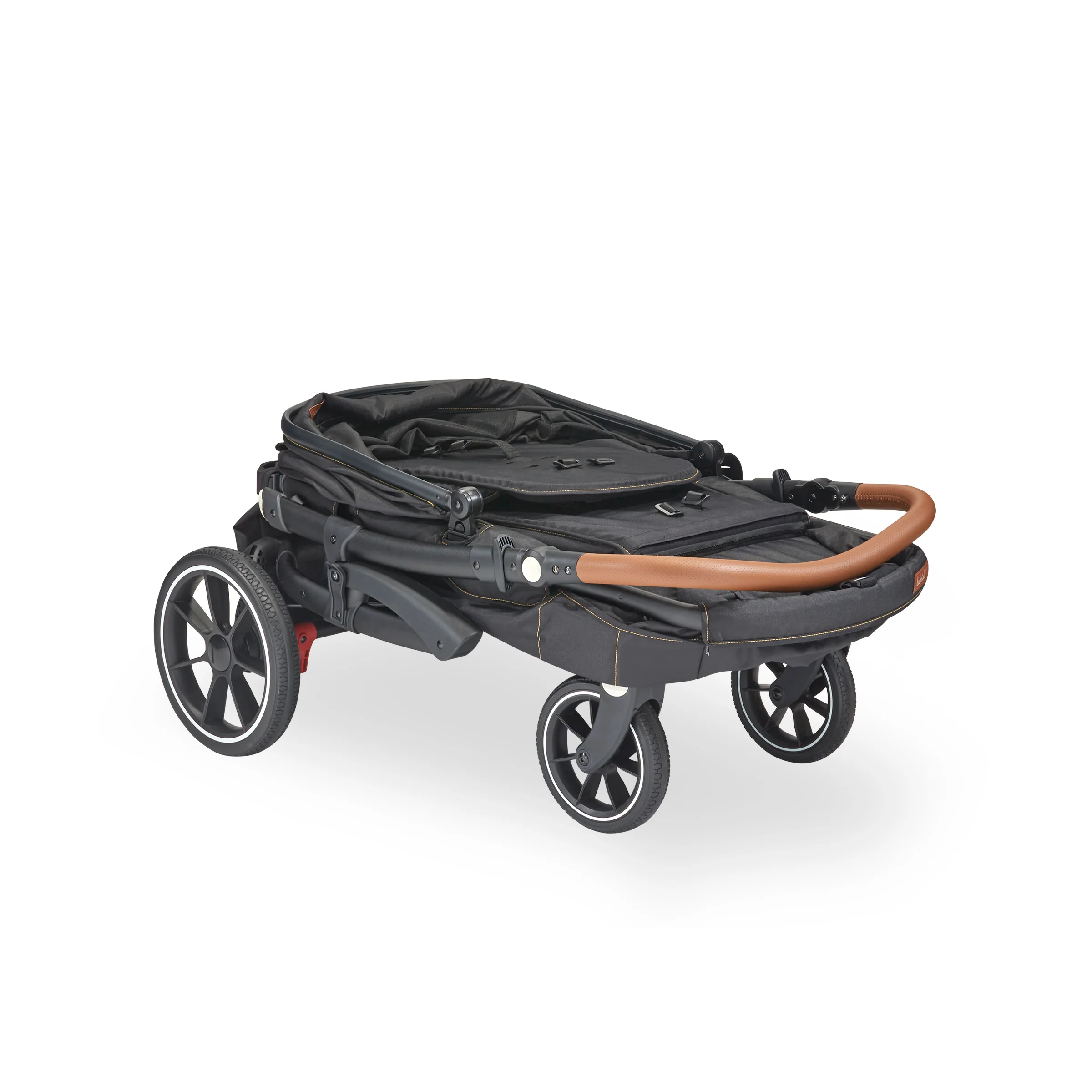 - Handlebar stroller console with multiple storage compartments for drinks and personal items.