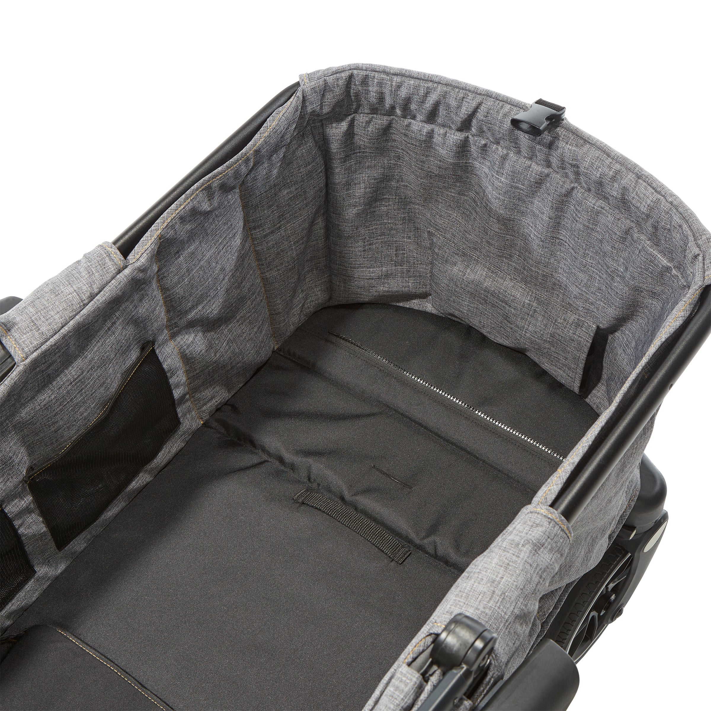 - Mesh cargo divider included to section off and hold groceries, bags, and other loose items when only one child is seated in the double wagon. Stows away on the sprout stroller/wagon when not in use.