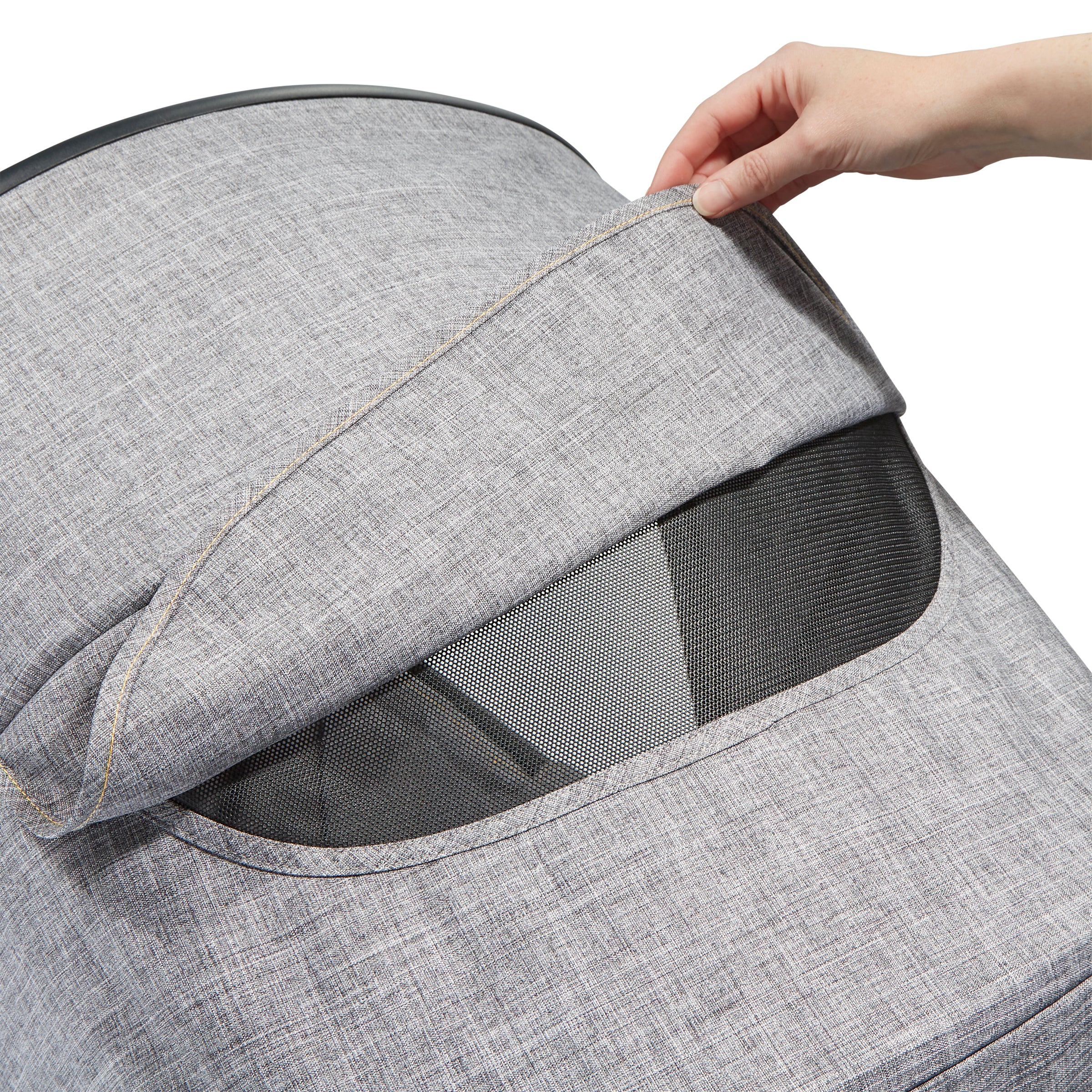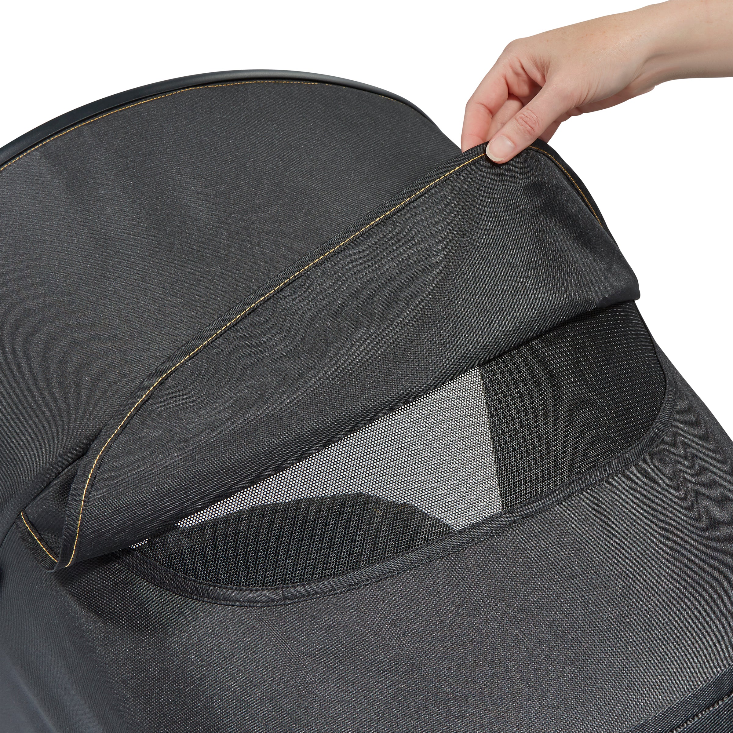 - Large multi-position sun canopy with pop-out visor, zippered canopy extension with airflow panel, and a peek-a-boo window. Comfortably shades both seats when fully expanded in double wagon mode.